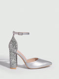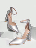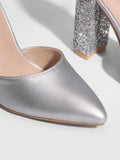 Chic Silver Colorblock Chunky Heel Pumps - Perfect for Graduations, Parties, and Summer Nights