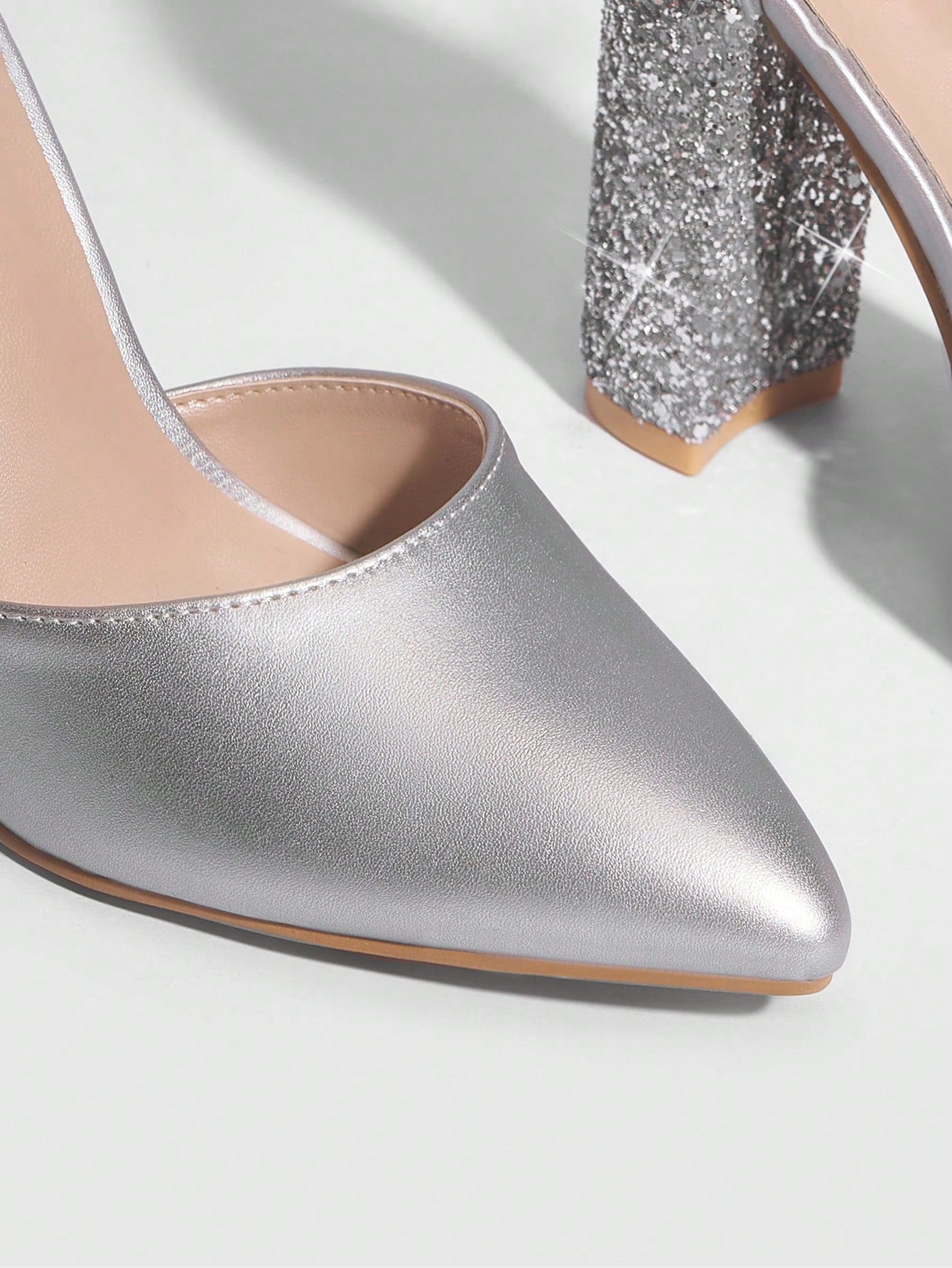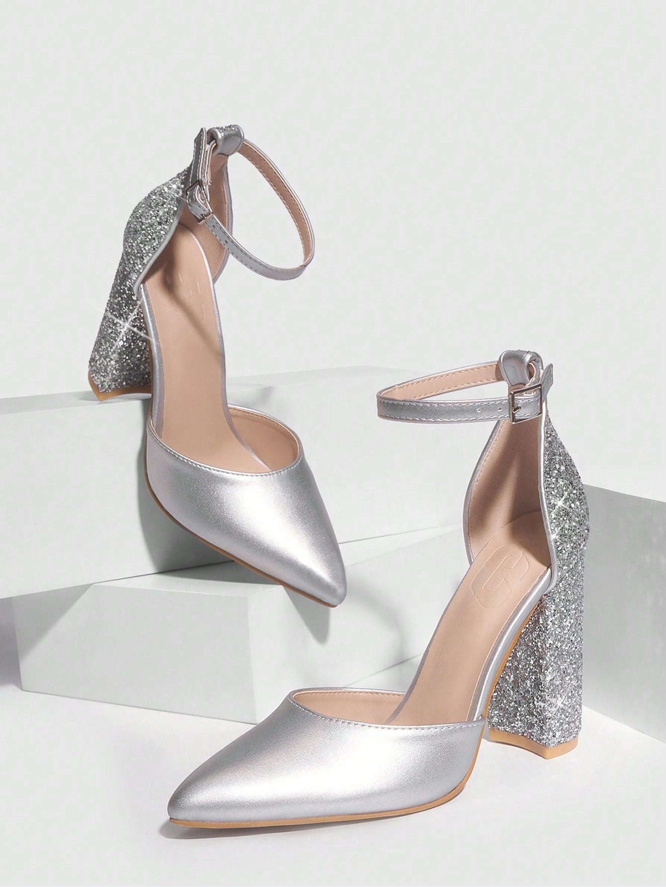 Elevate your style with our Chic Silver Colorblock Chunky Heel Pumps that are perfect for graduations, parties, and summer nights. The colorblock design and chunky heel give a trendy touch while providing comfort for extended wear. Make a statement and stand out in these versatile pumps.