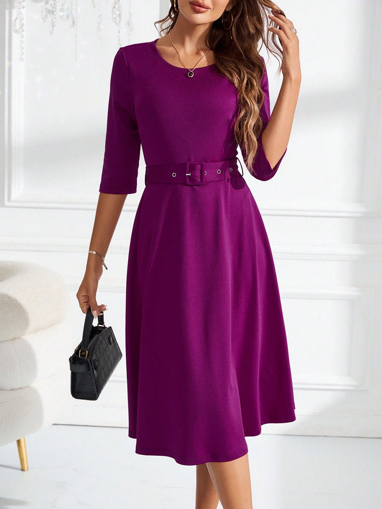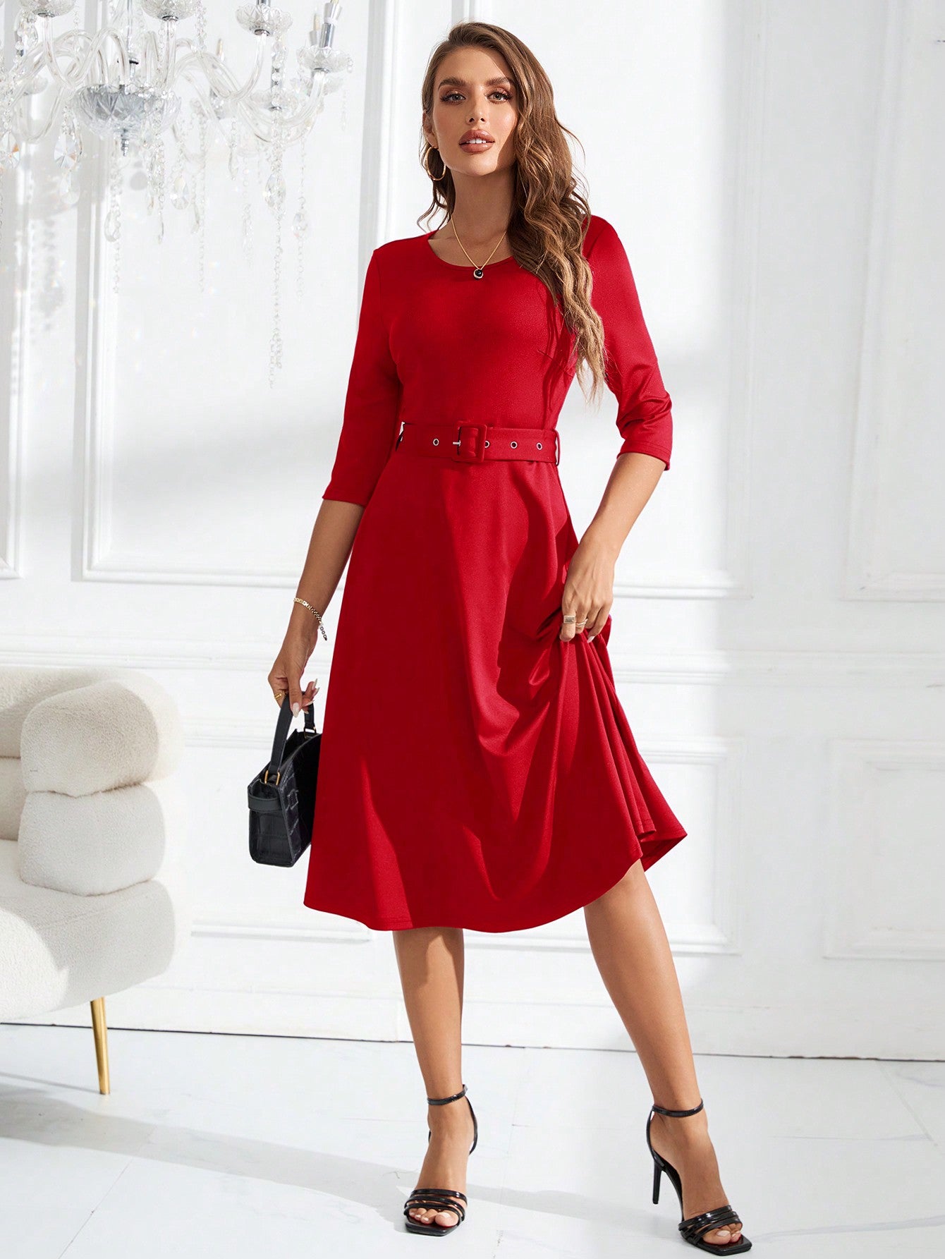Get ready to turn heads and be the envy of the fashion crowd with our Chic Solid Color Half-Sleeve Casual Dress. This dress features a trendy waist tie, adding effortless style to your look. Comfortable, versatile, and chic, this dress is perfect for any occasion. Upgrade your wardrobe with this must-have piece!