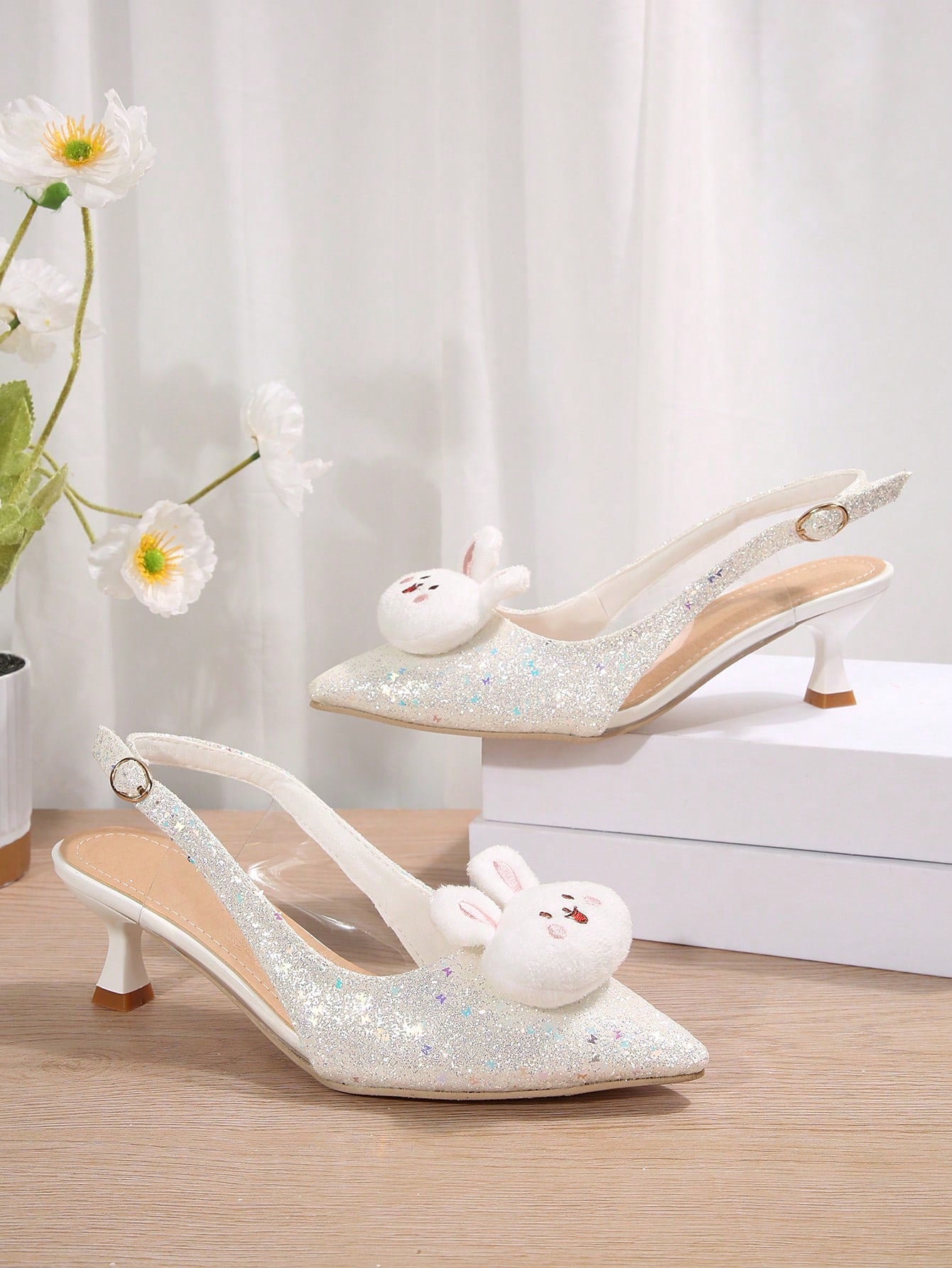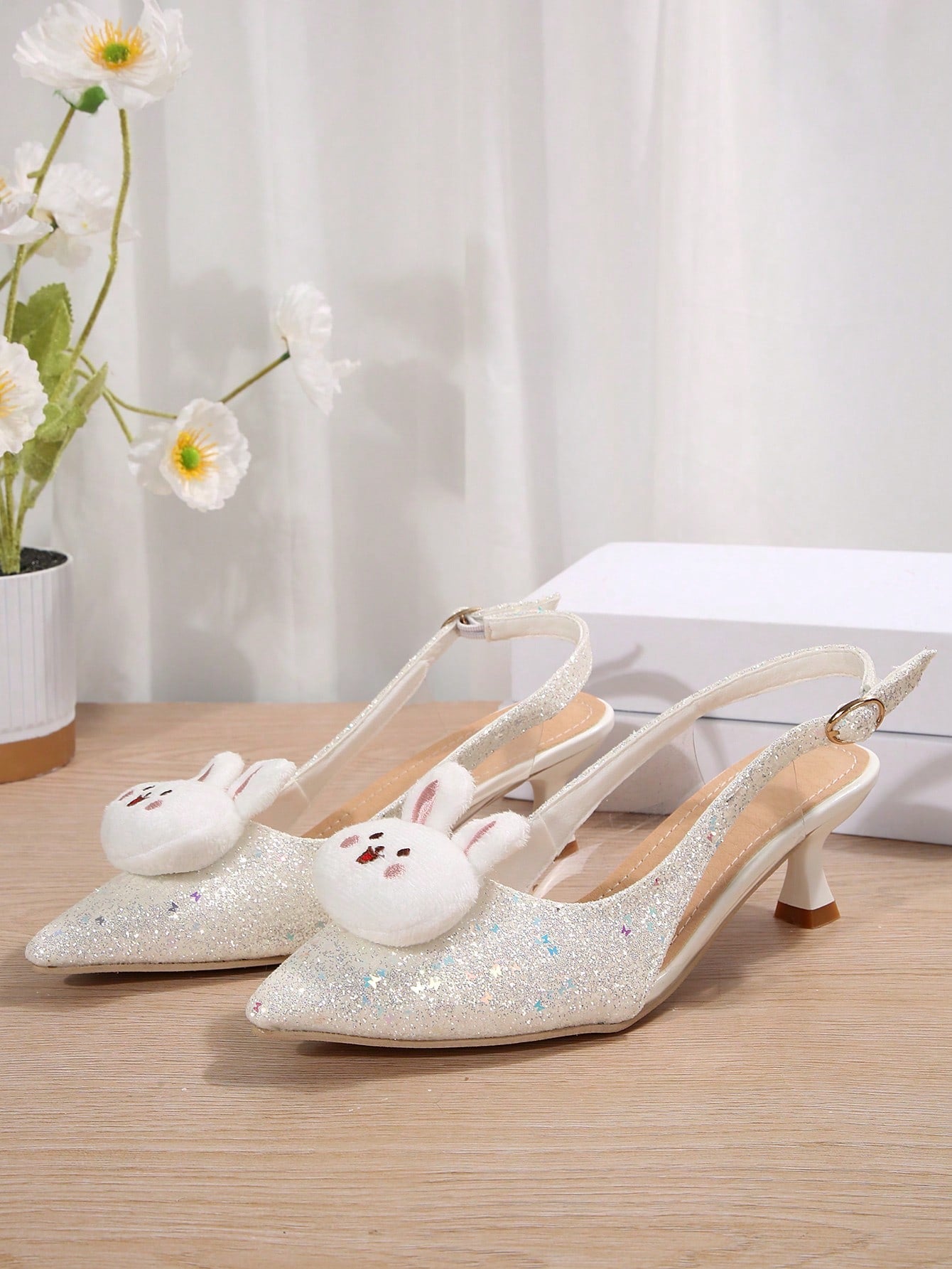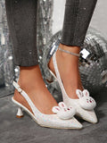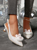 Chic Sparkle: Trendy Pointed Toe High Heel Sandals with Adorable Rabbit Decor