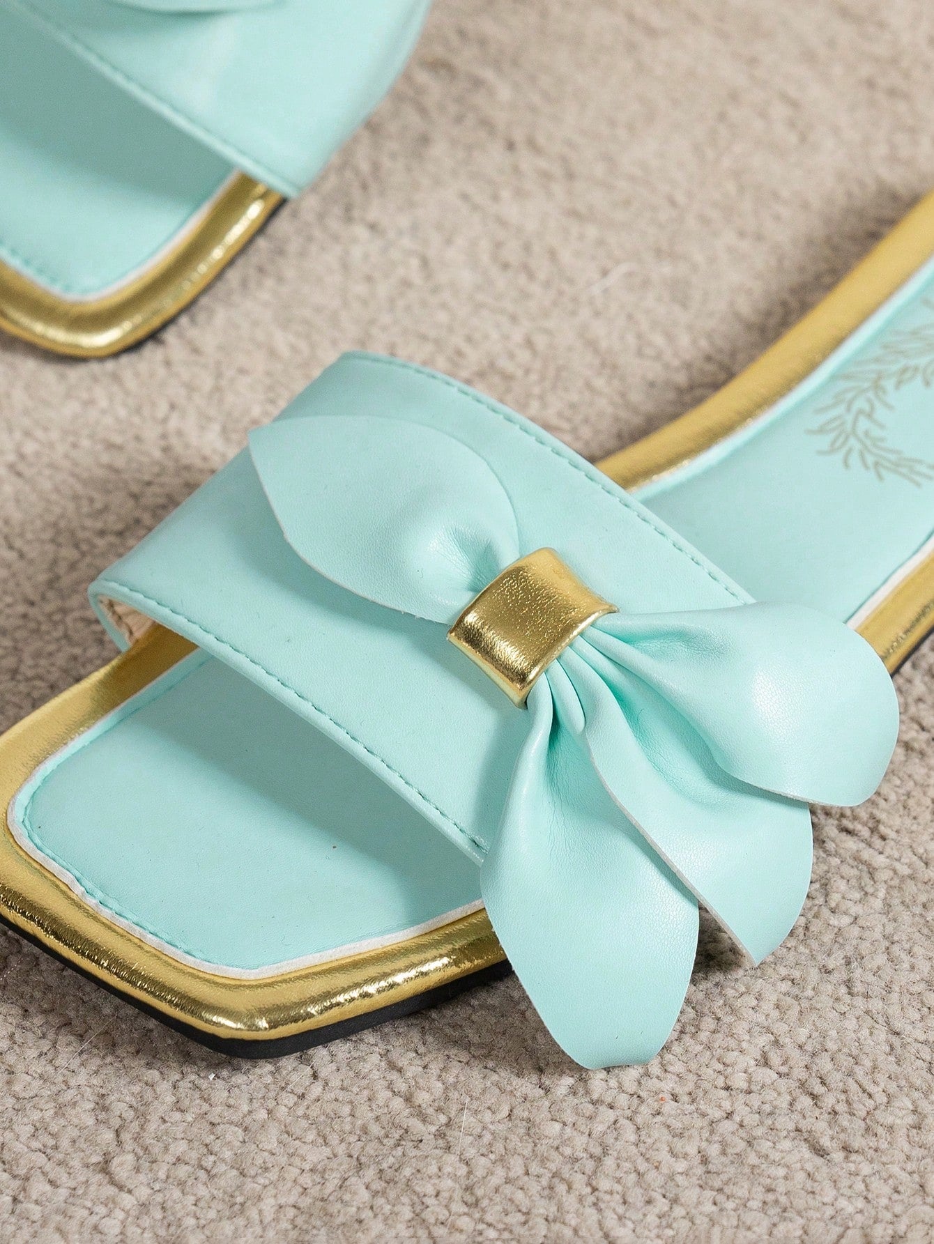 Chic Square Toe Flat Bowknot Beach Slippers for Women - Non-Slip & Wear Resistant Casual Footwear