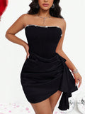 Chic Strapless A-Line Dress with Diamond Accents and Ruffled Hem