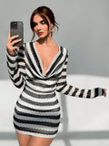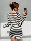 Chic Striped Fuzzy Mock Neck Mini Dress for Women
