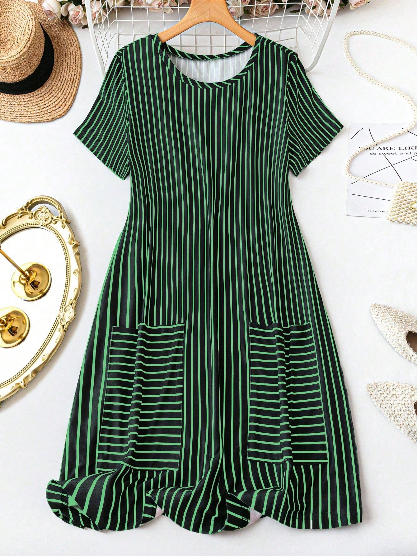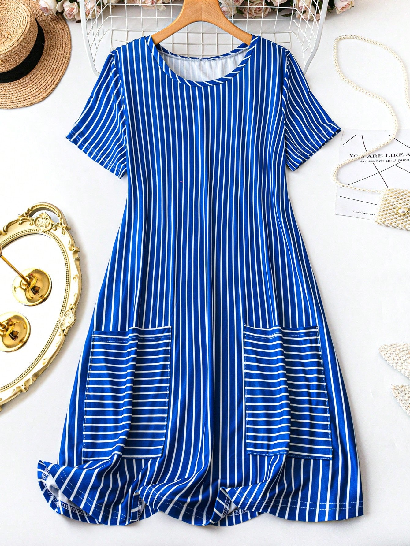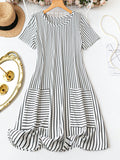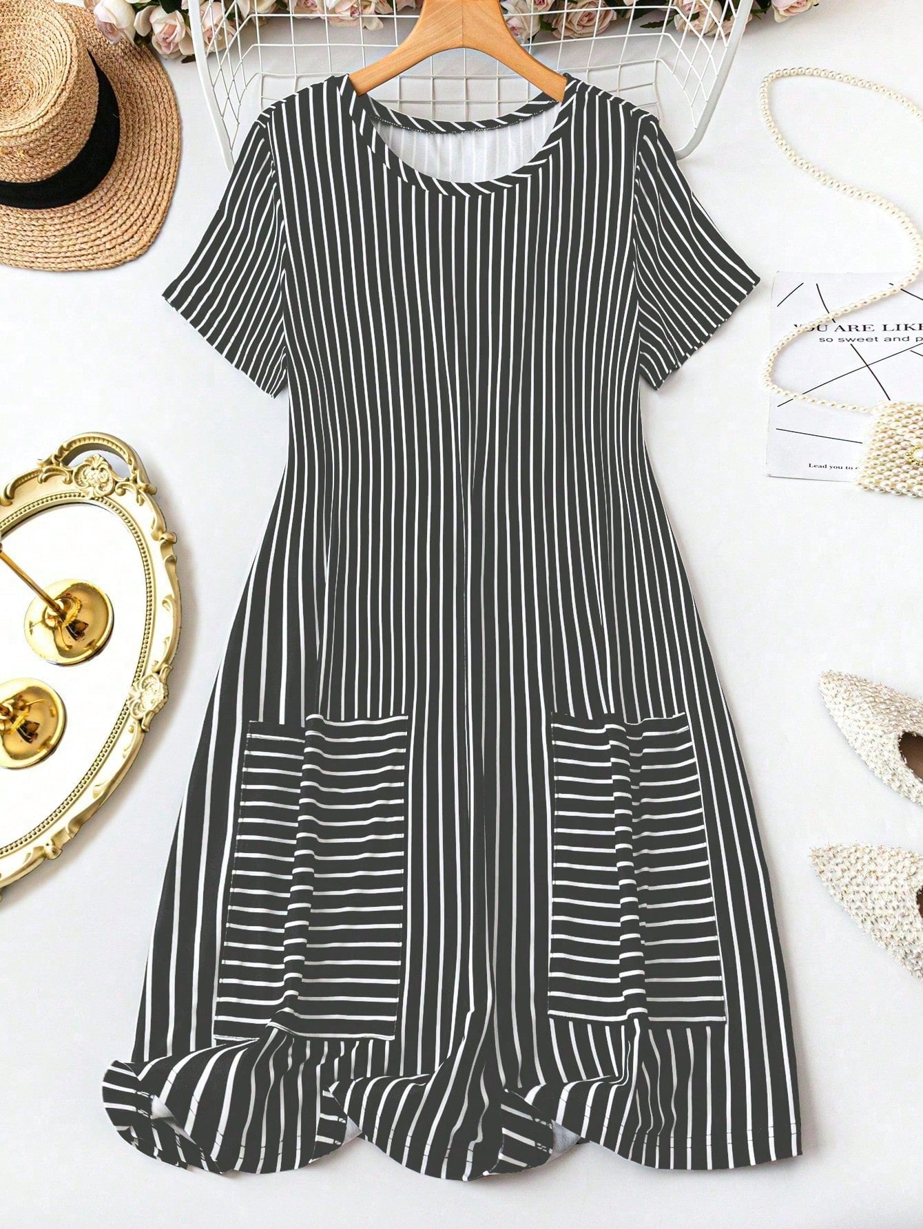 Chic Striped Plus Size Casual Dress with Double Pockets - Perfect for Winter!