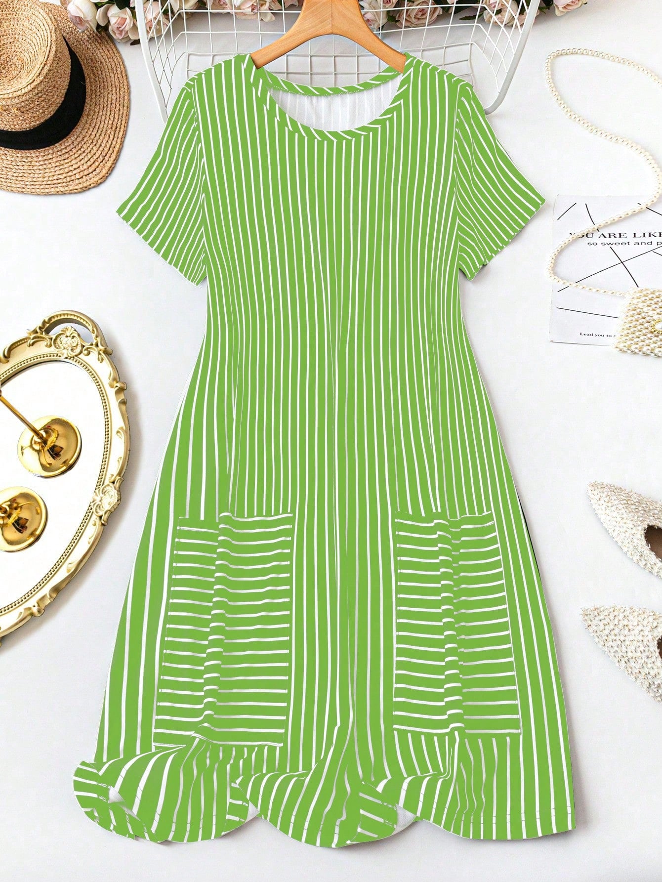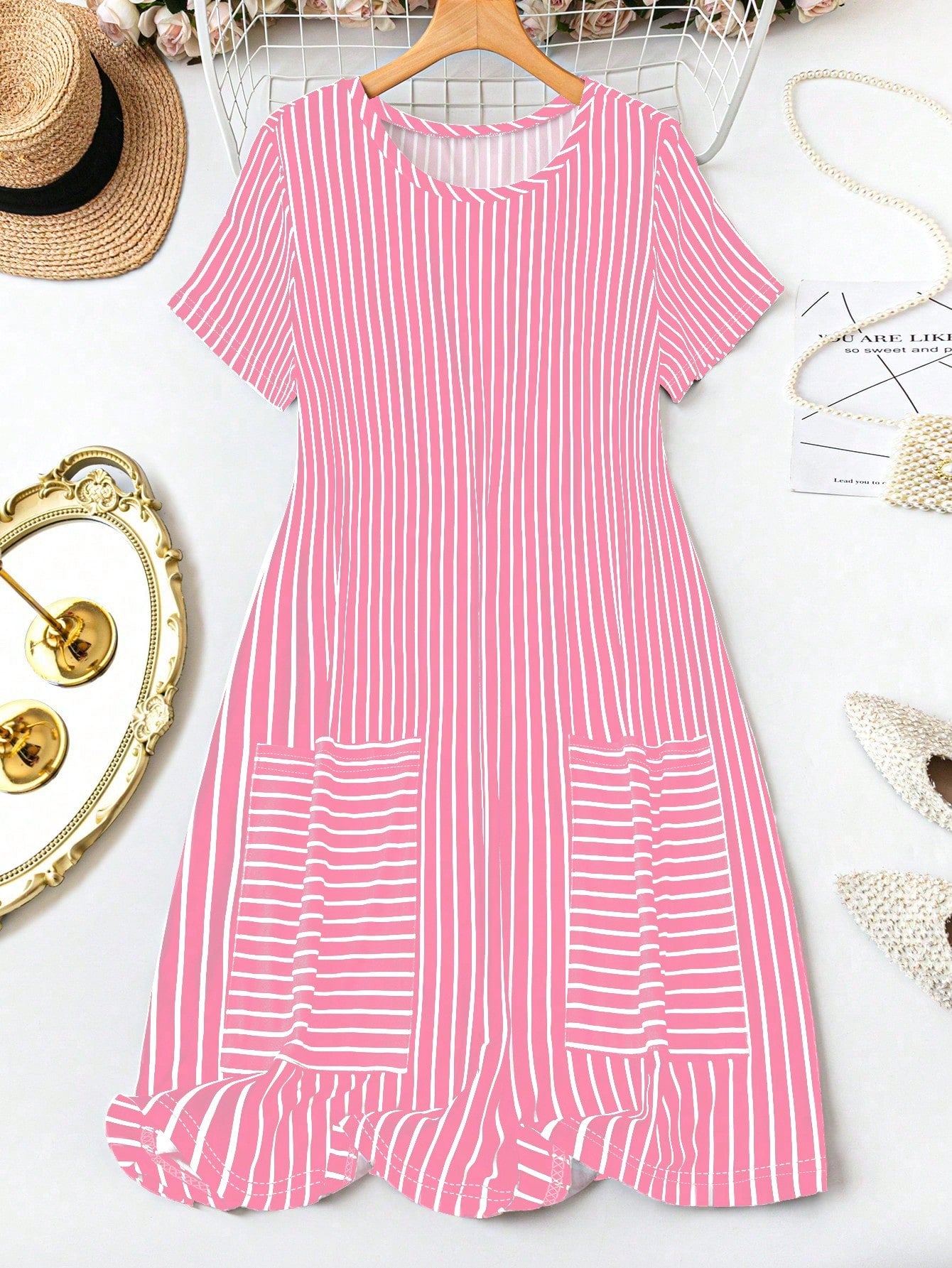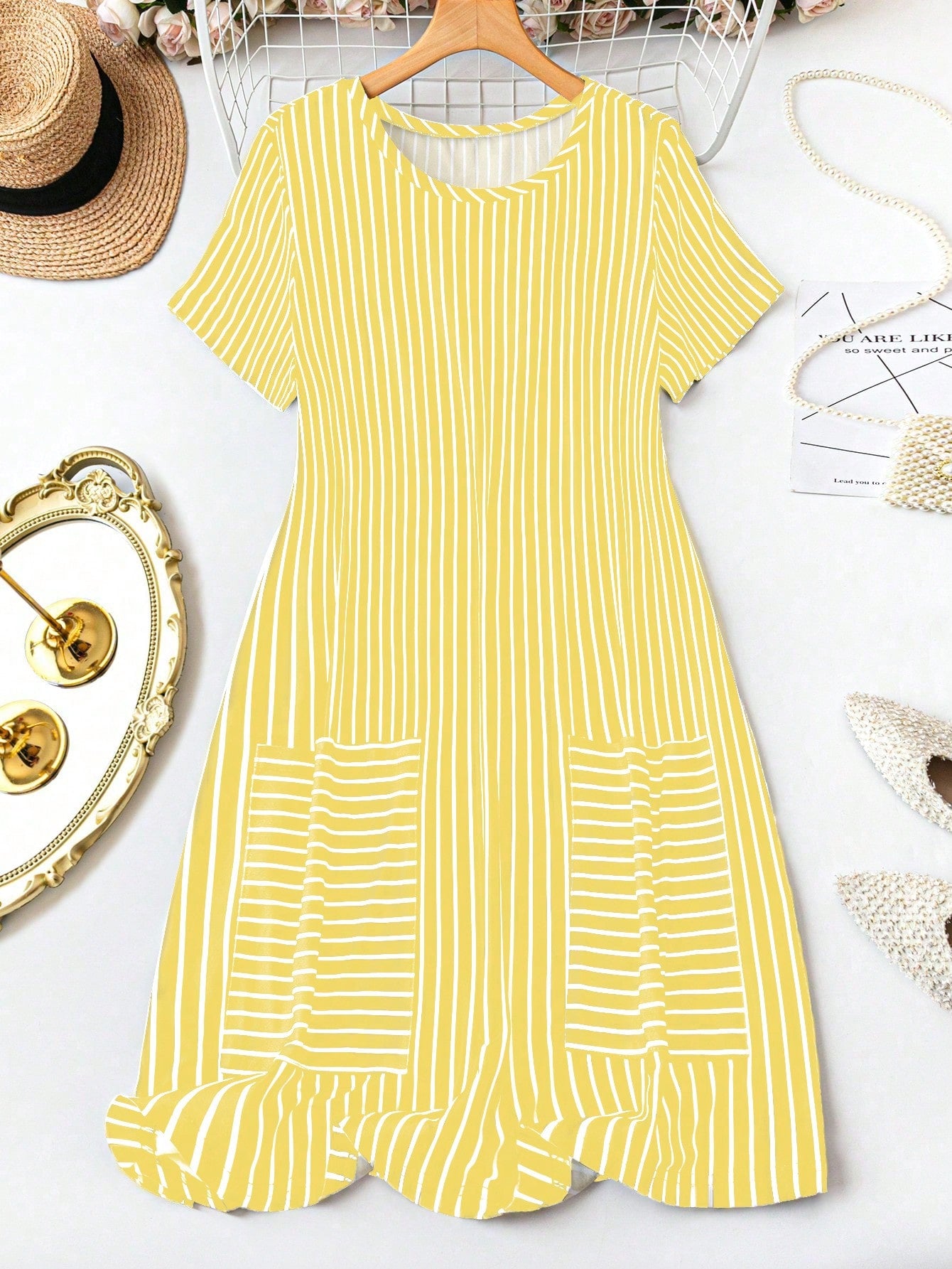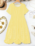 Chic Striped Plus Size Casual Dress with Double Pockets - Perfect for Winter!