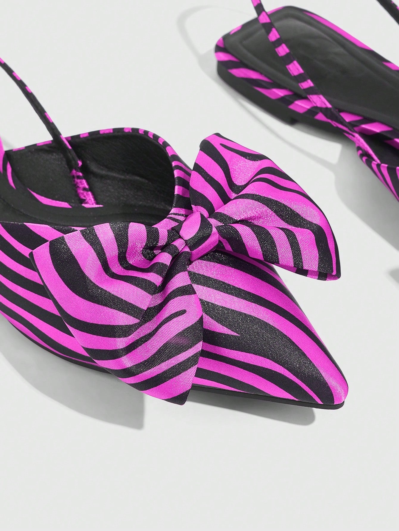 Experience the perfect blend of style and comfort with our Chic Striped Pointy Toe Bow Tie Flats. Designed for the fashion-forward and busy individuals, these flats effortlessly elevate any outfit for any occasion. The chic striped design and pointy toe add a touch of elegance, while the bow tie detail adds a feminine touch. Perfect for a day at work or a night out on the town, these flats are a versatile and stylish choice.
