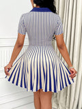 Chic Striped Polo Collar Short Sleeve Dress for Effortless Elegance
