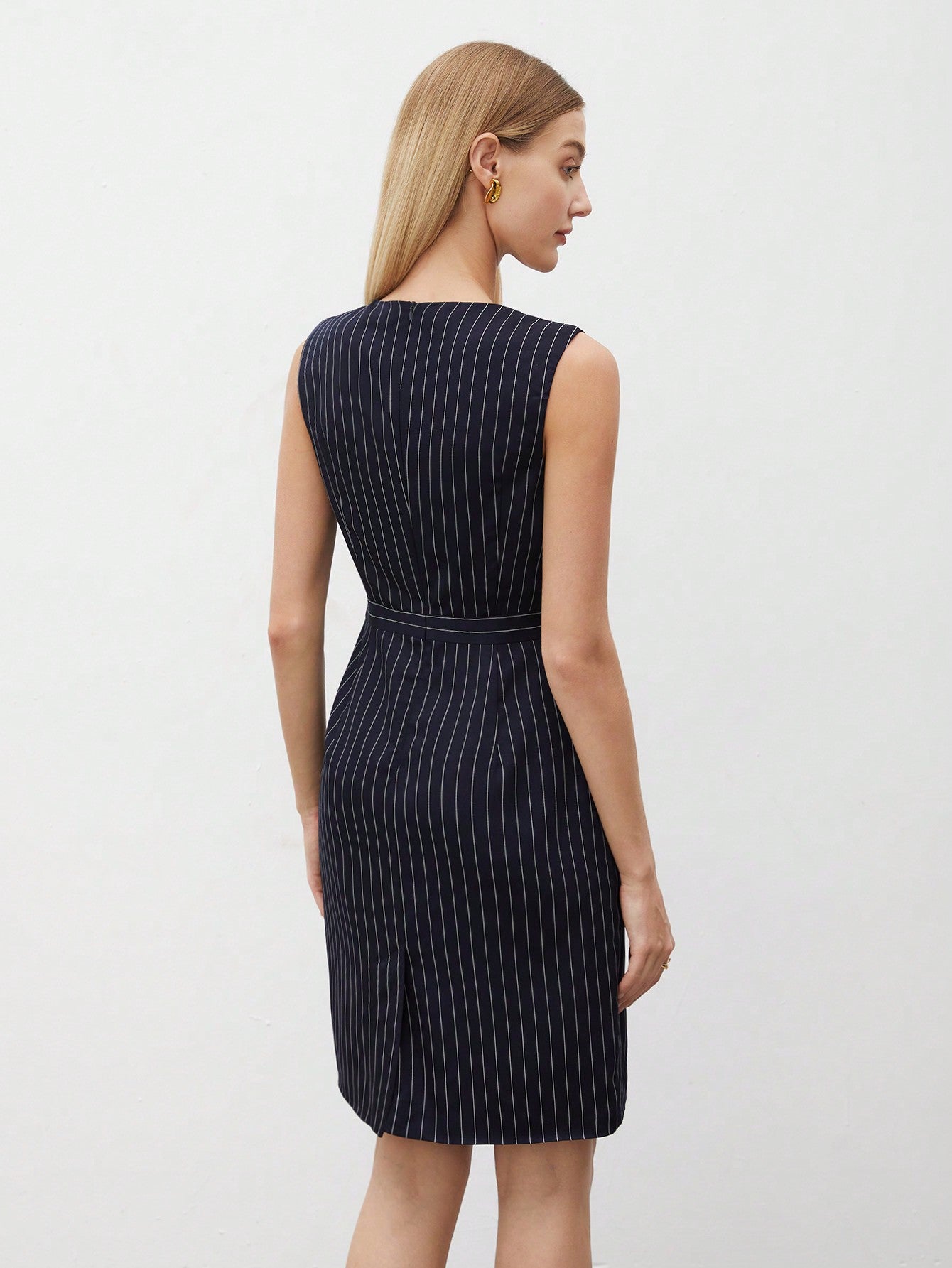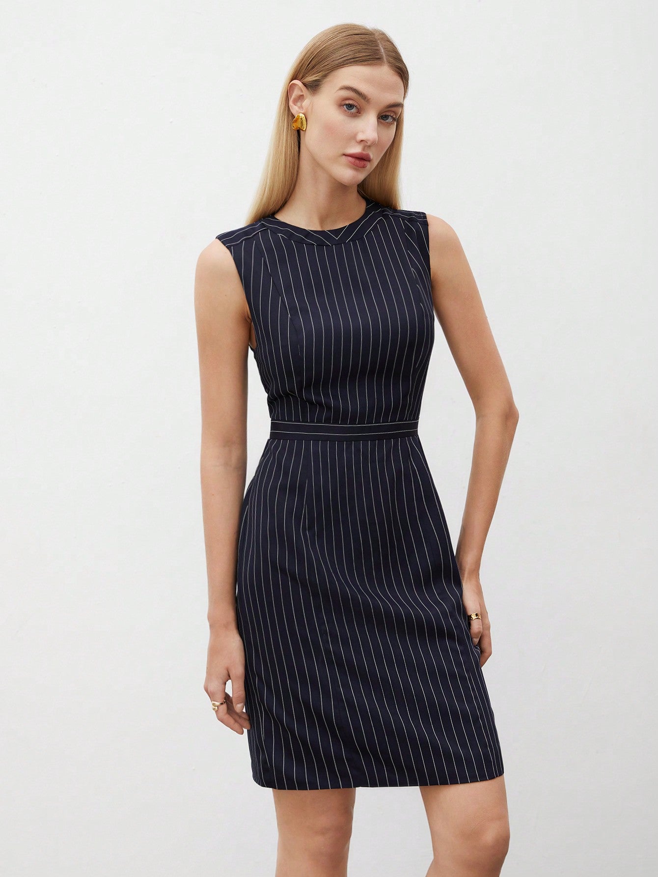 Chic Striped Sleeveless Work Dress for Effortless Office Elegance