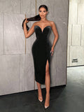 Chic & Stunning Solid Color High-Slit Bandeau Dress for Women