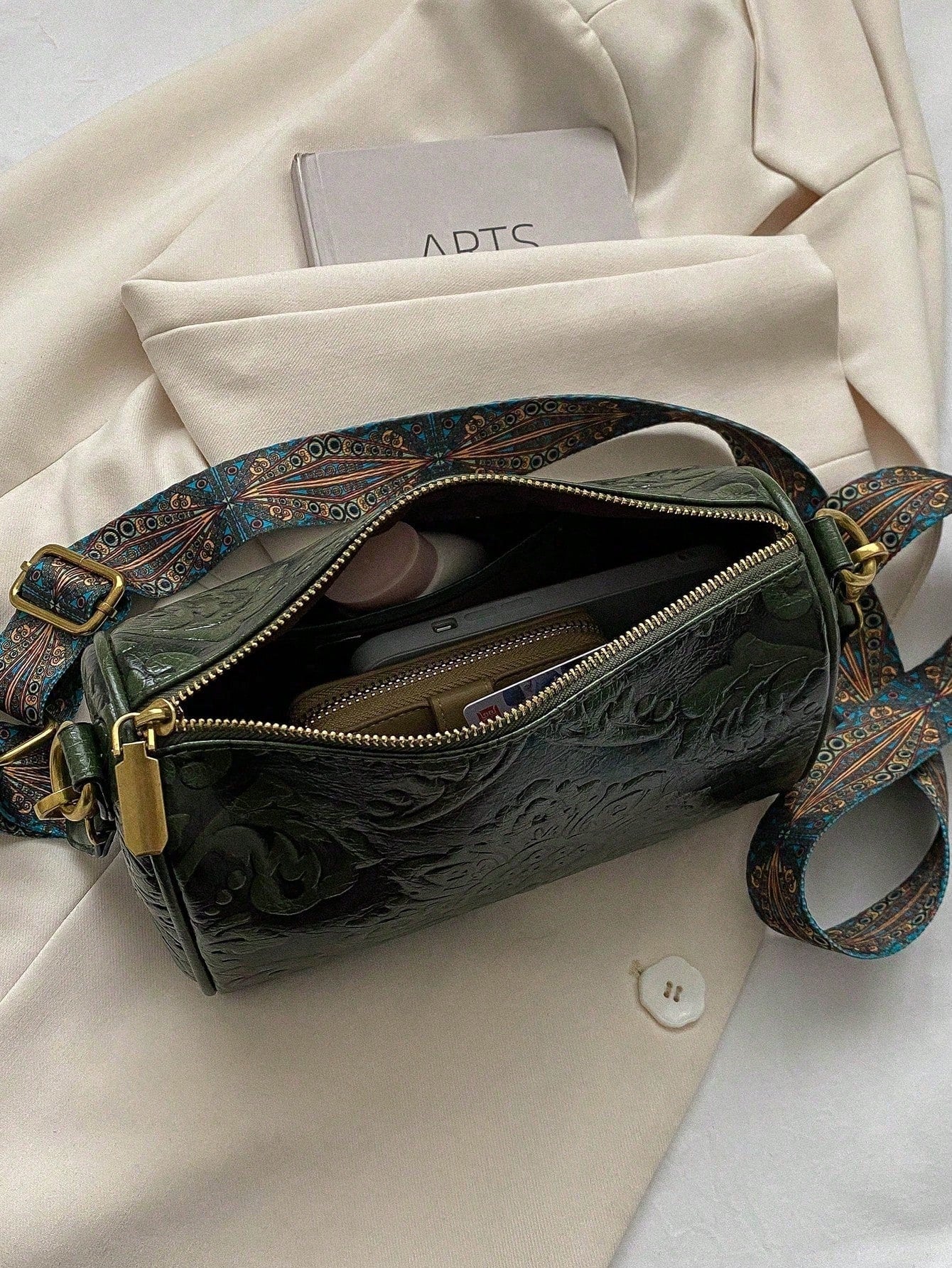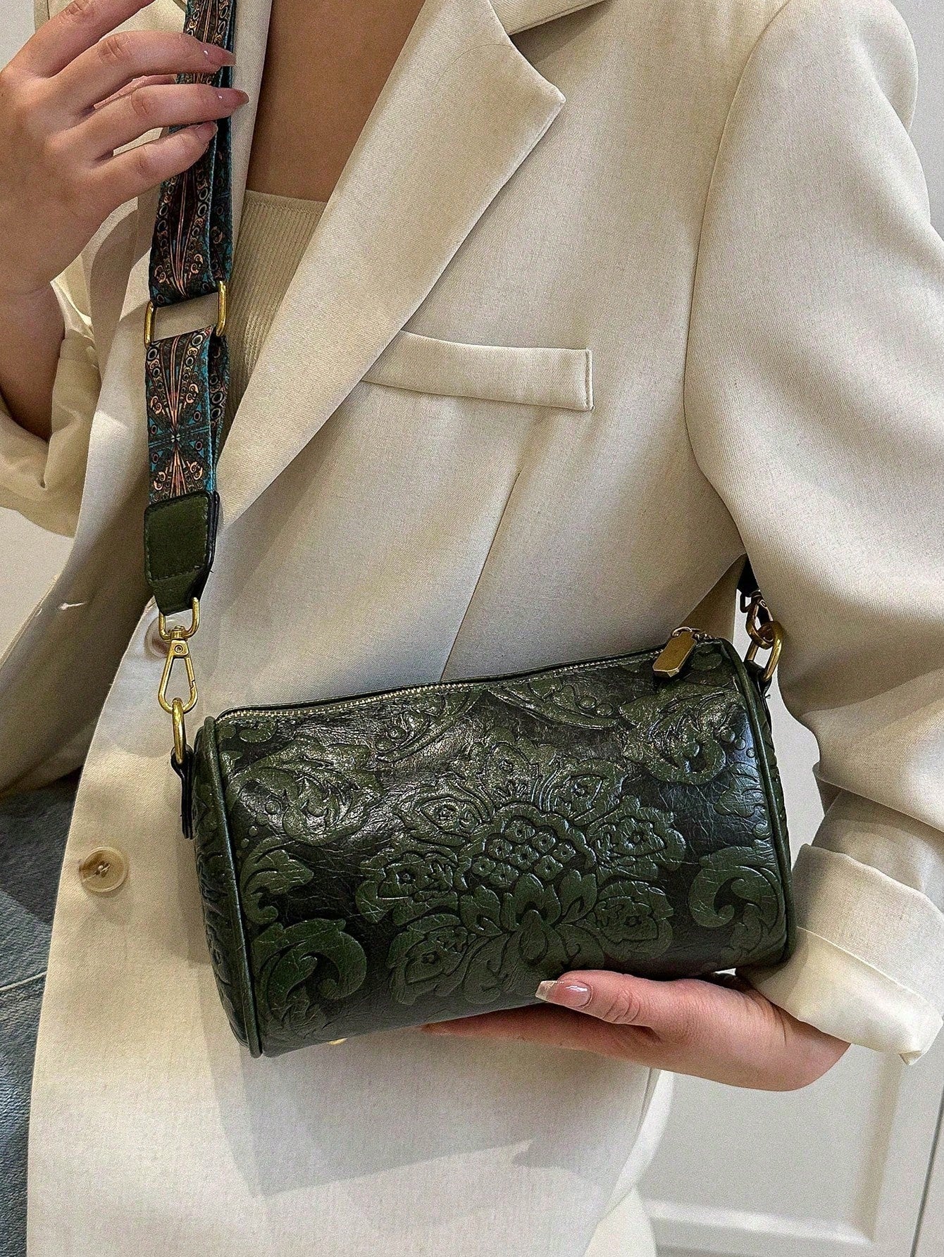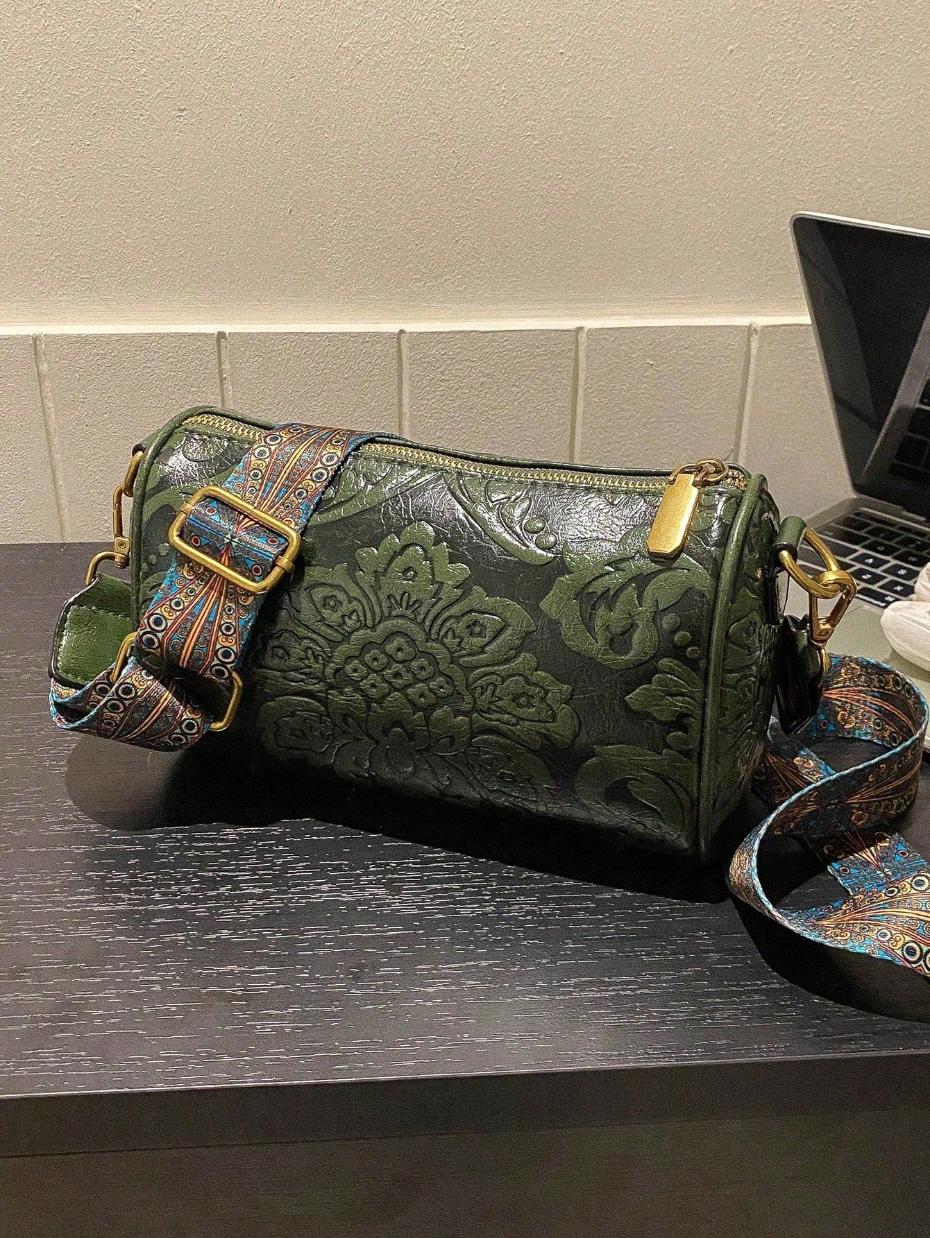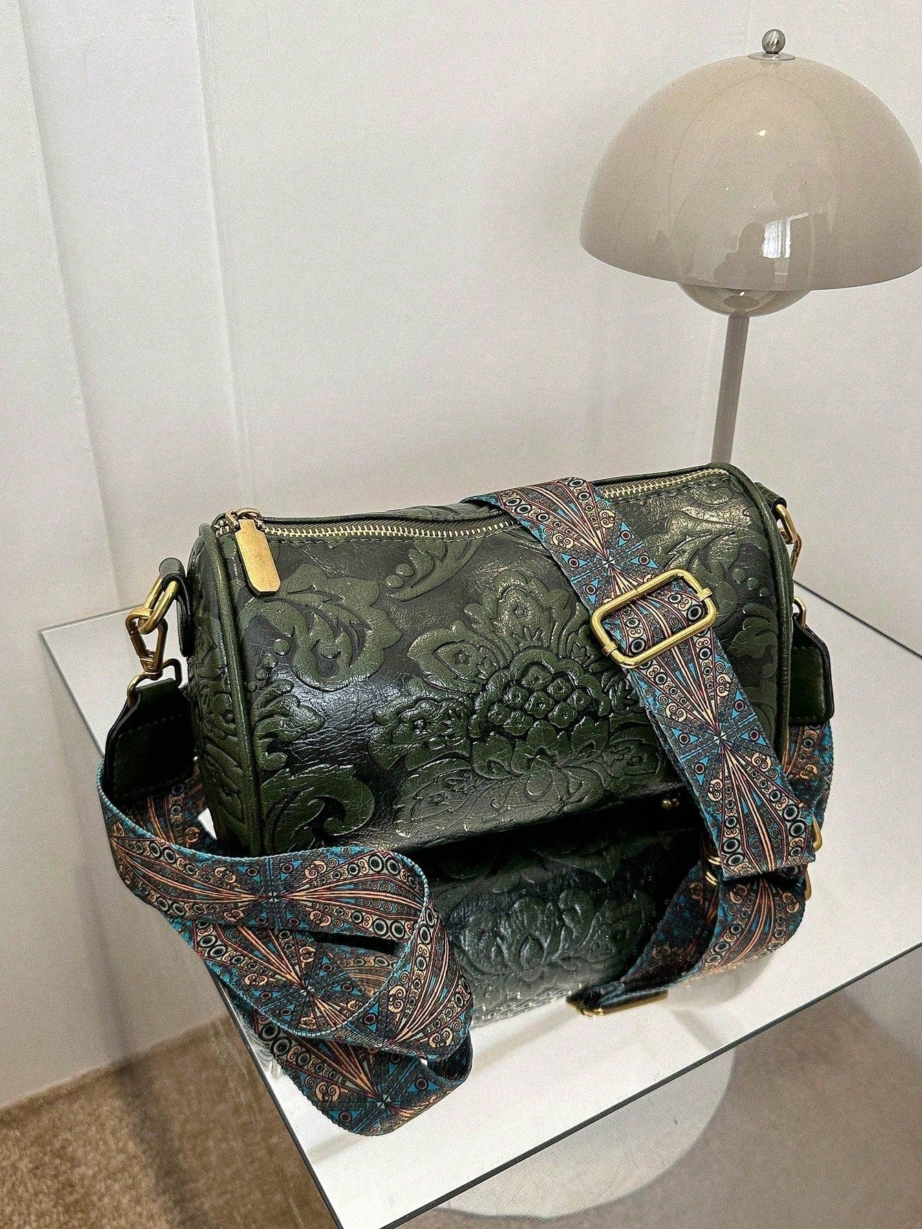 This crossbody bag for middle-aged women features a chic and stylish design with embossed flower details. It is perfect for adding a touch of elegance and sophistication to any outfit. With its functional crossbody strap, it allows for hands-free convenience while carrying essentials. Elevate your style with this timeless piece.