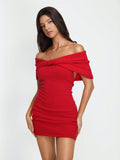 Chic & Stylish Off-Shoulder Pleated Sweater Dress for Women