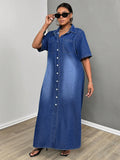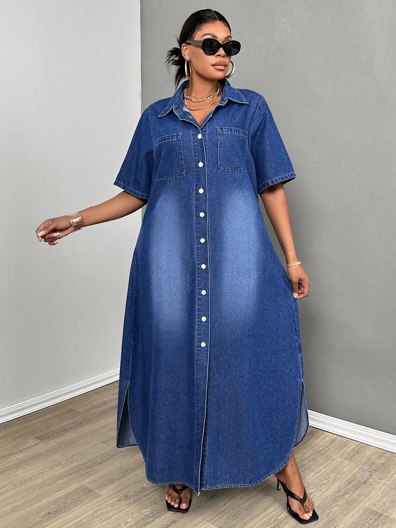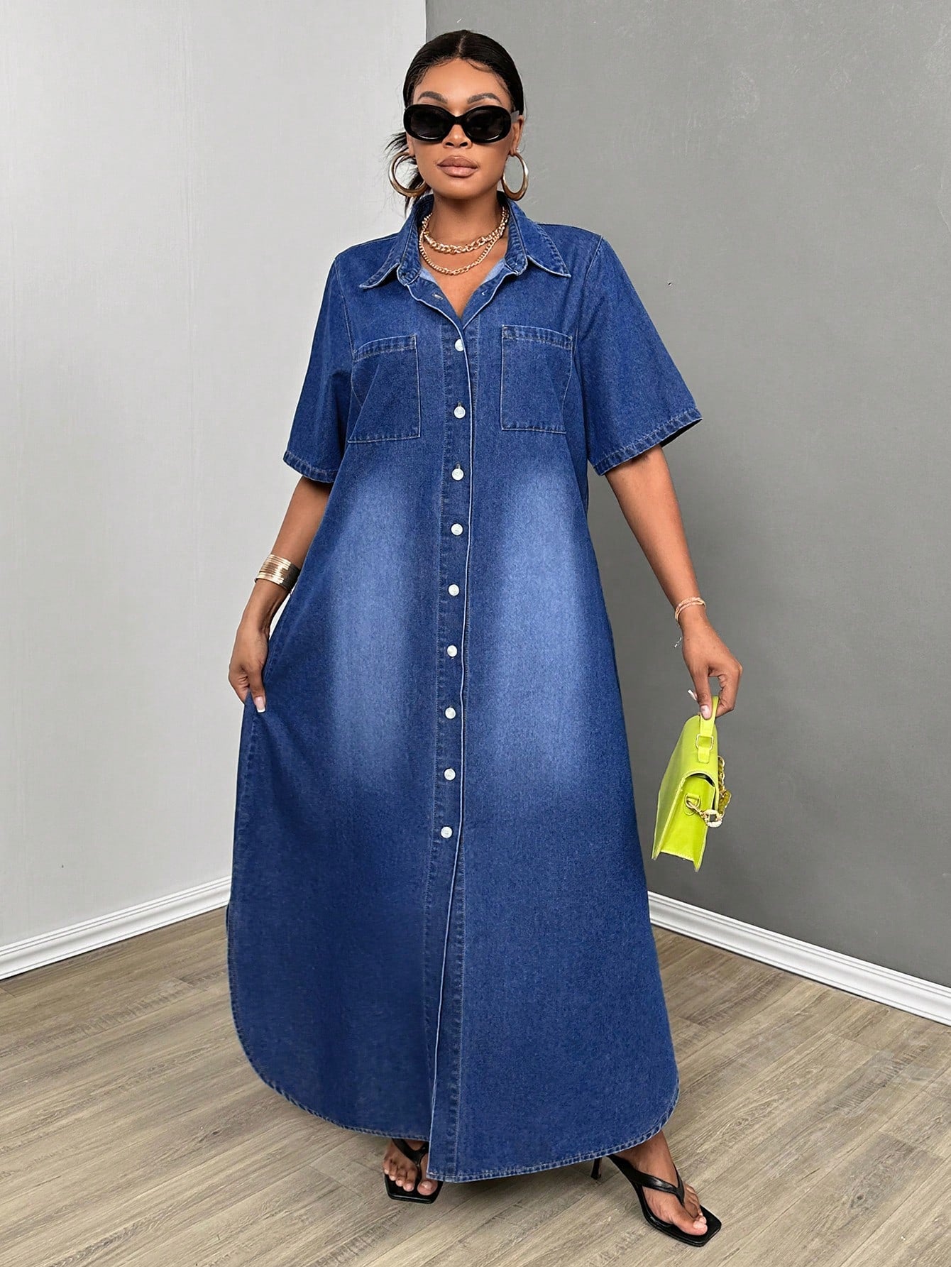 Chic & Stylish Plus Size Denim Shirt Dress - Perfect for Back to School