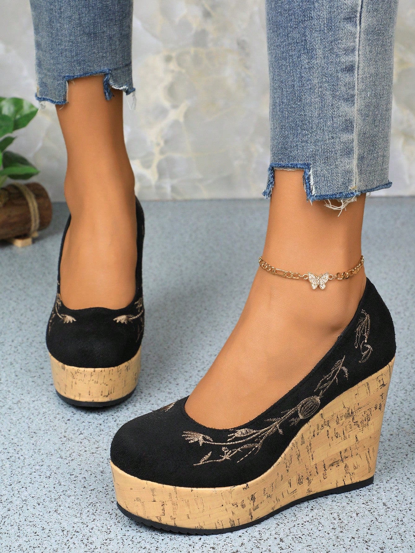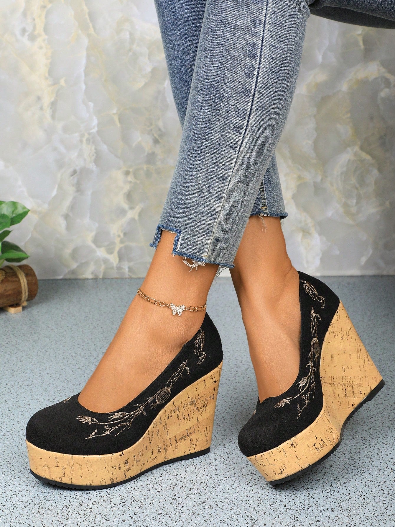 Chic Suede One-Strap Platform Wedge Pumps for Effortless Style
