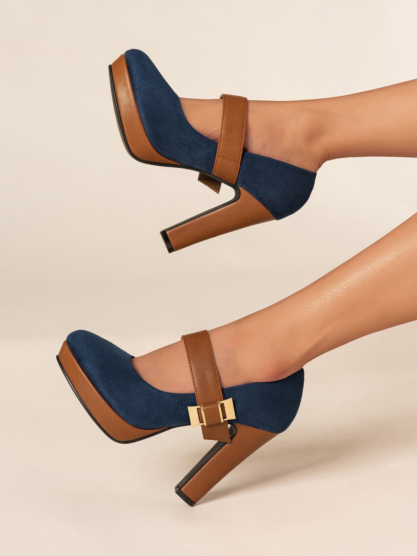 Elevate your style with these chic Mary Jane pumps! Made with suedette material, these shoes feature a chunky heel and platform for added height and comfort. Perfect for a stylish yet comfortable look, these pumps will take your outfit to the next level.