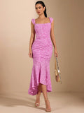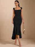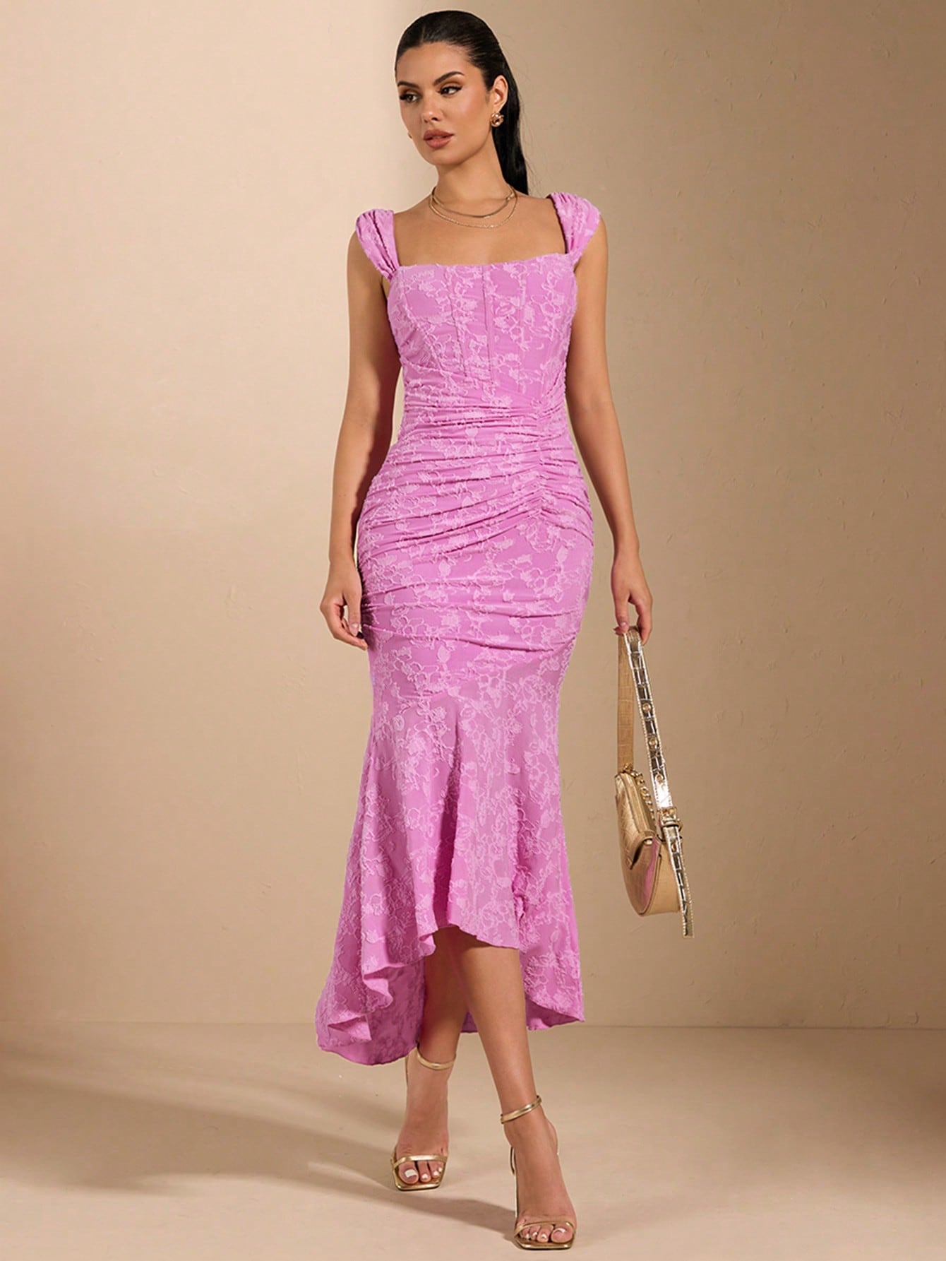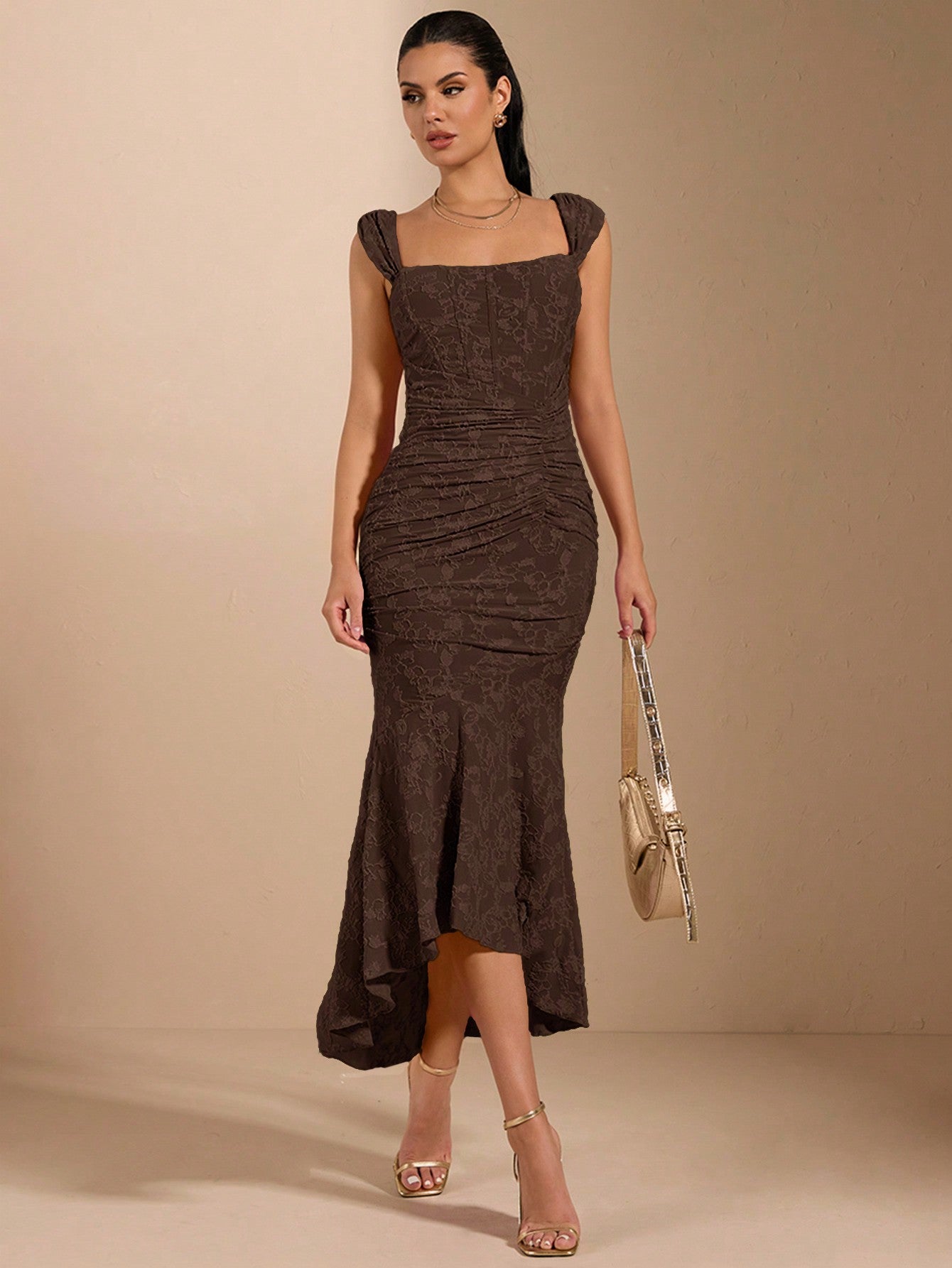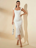 Chic Summer Bodycon Dress with Ruched Bustier Design and Ruffled Hem