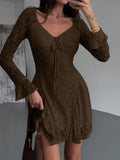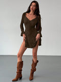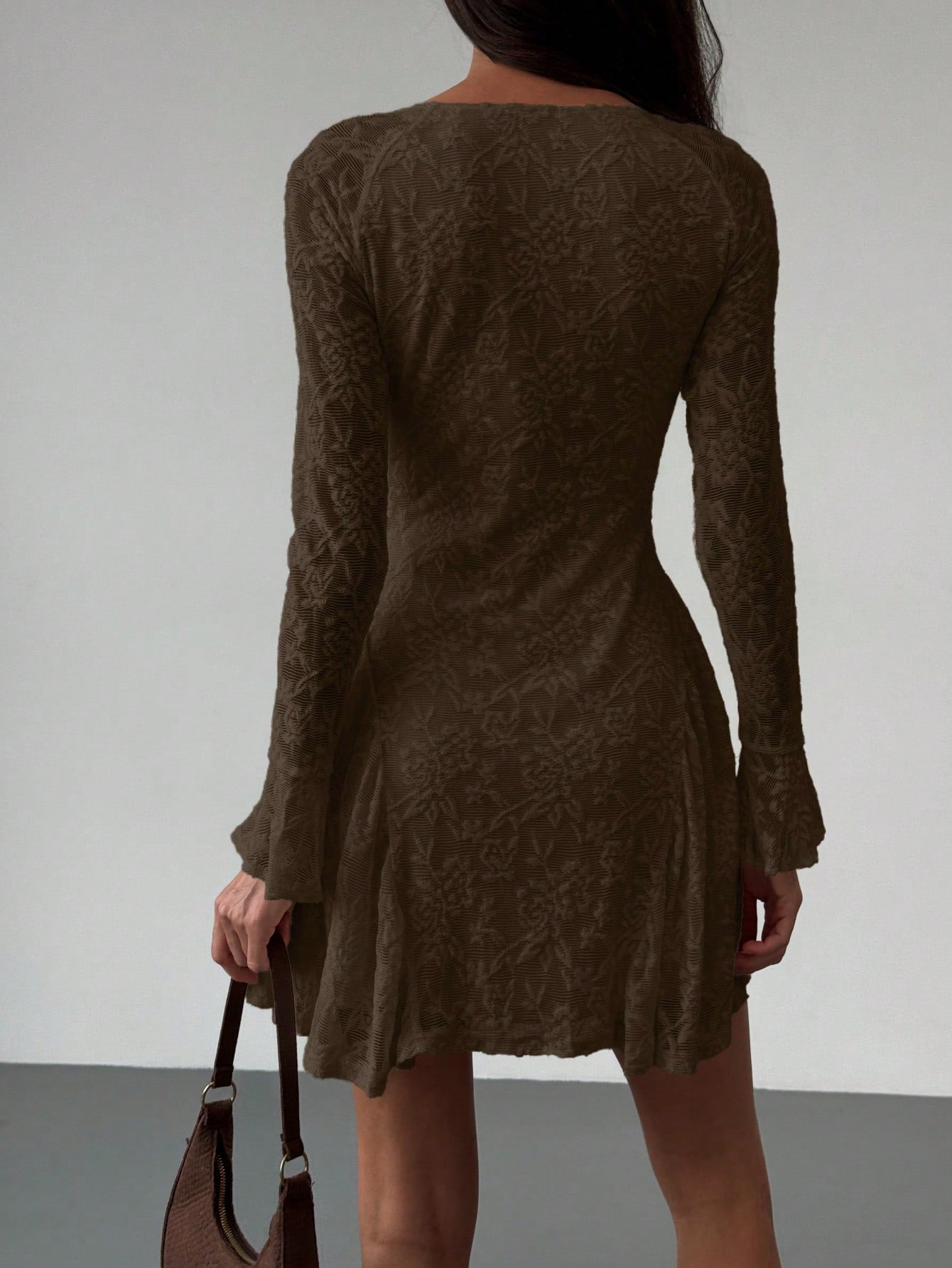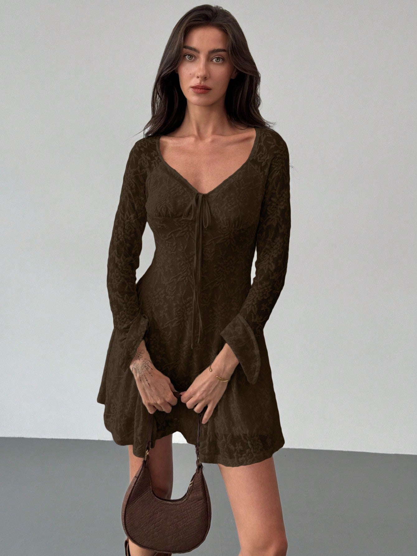 Chic Tie-Front Flared Sleeve Bodycon A-Line Dress in Textured Fabric