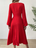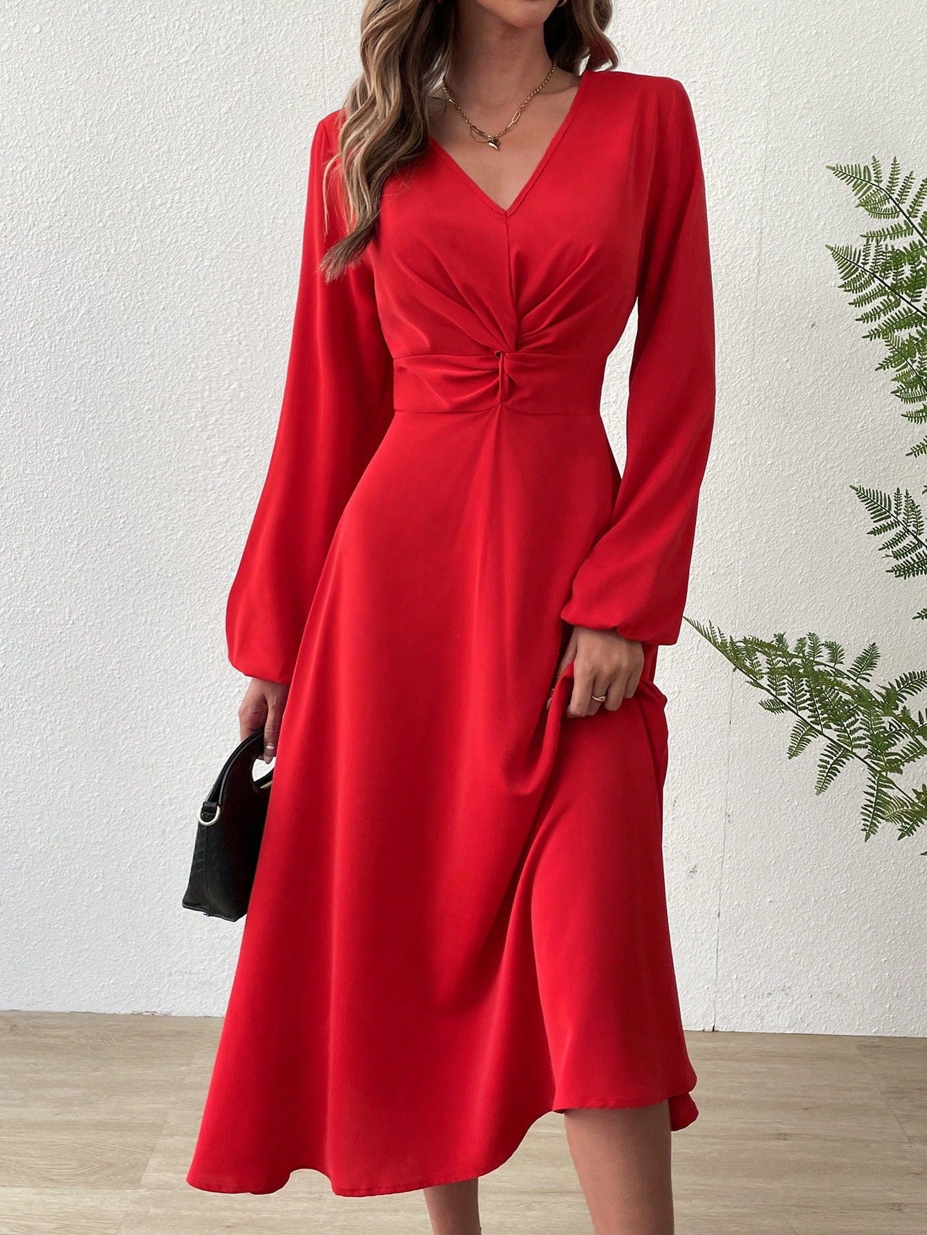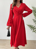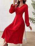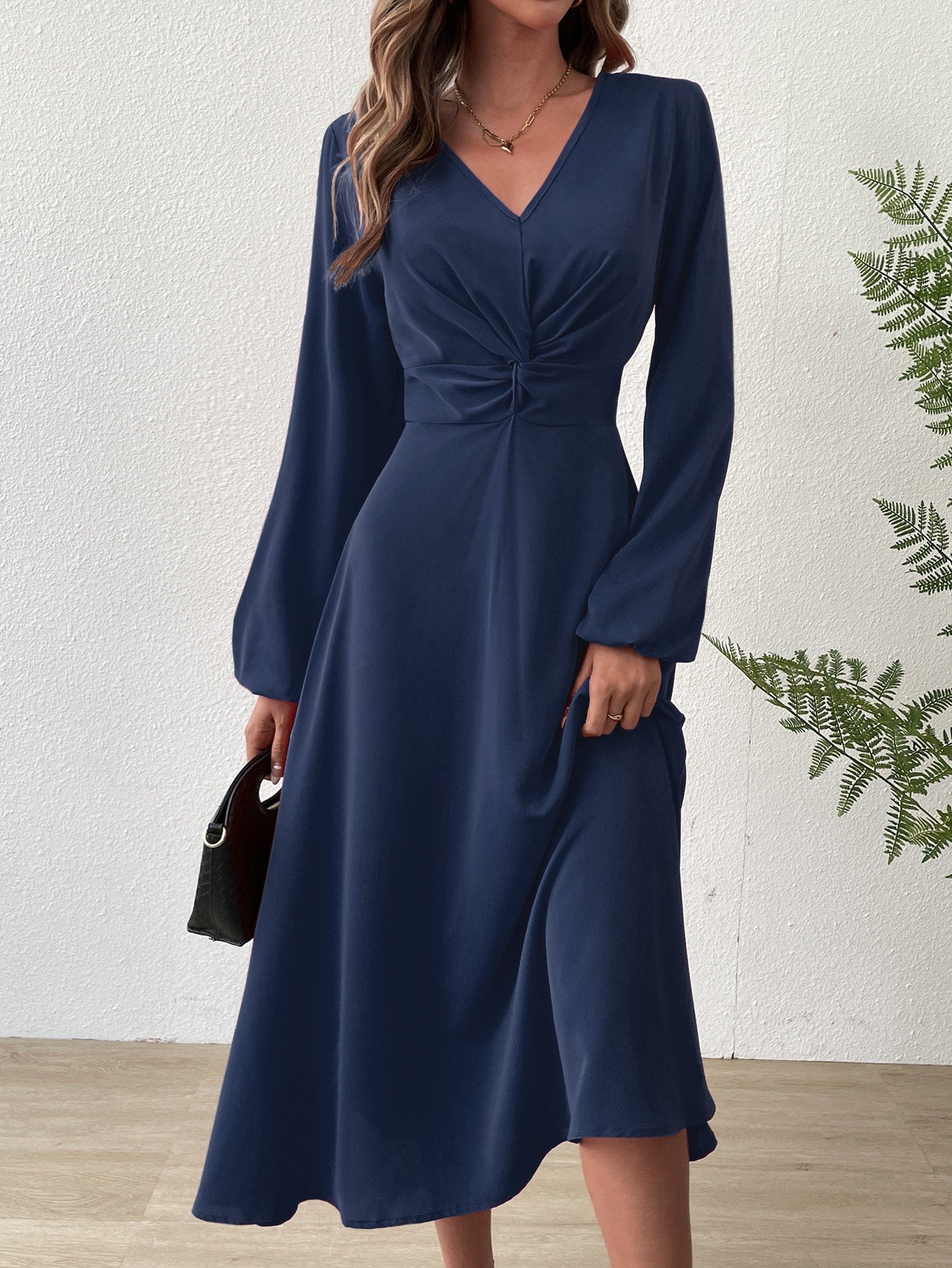 Chic Twist-Front Lantern Sleeve Dress - Effortless Elegance for Any Occasion
