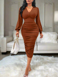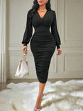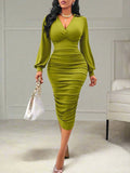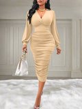 Chic V-Neck Ruched Bodycon Dress for Effortless Elegance