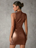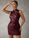 Chic & Versatile Sleeveless PU Ruched Hem Mini Dress for Every Occasion
