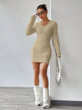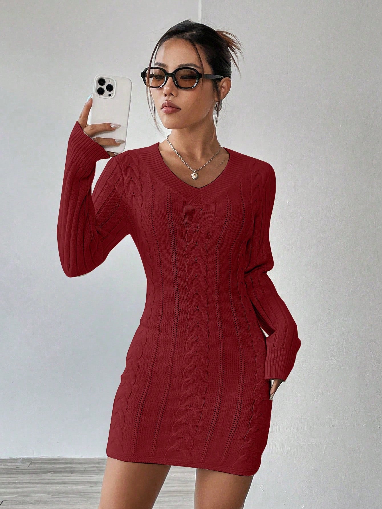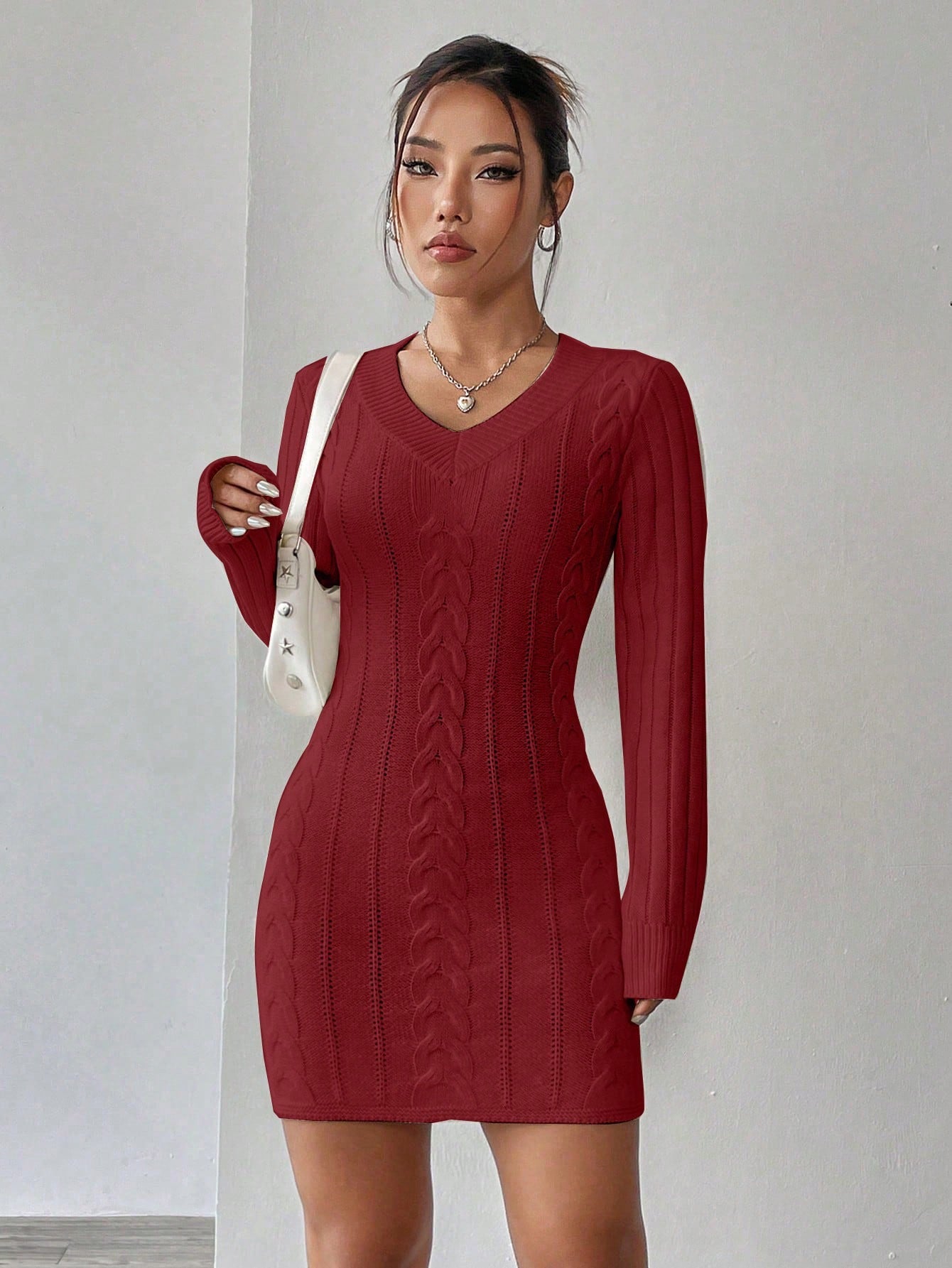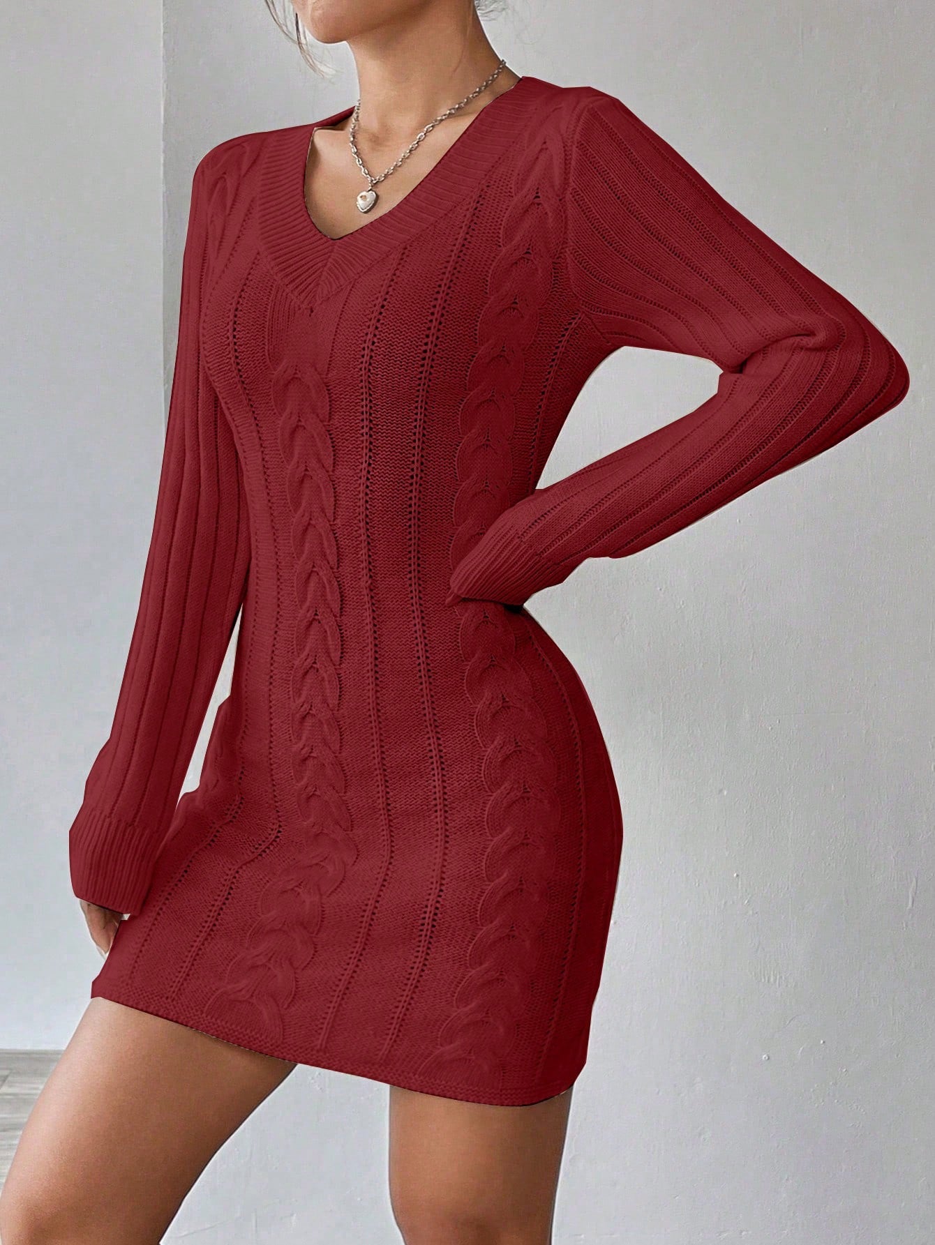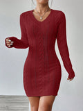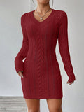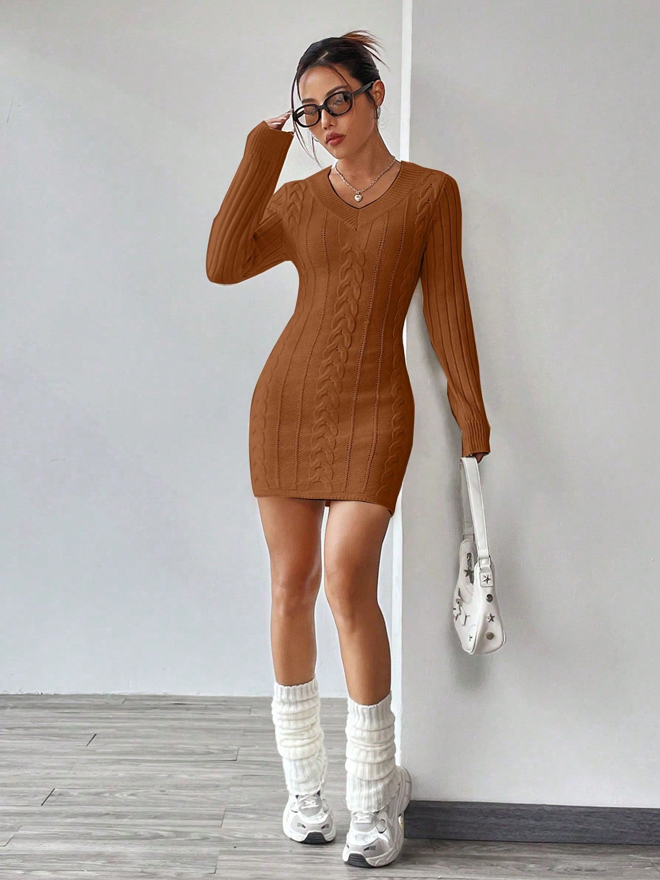 Chic Versatile V-Neck Long Sleeve Bodycon Sweater Dress for Autumn & Winter