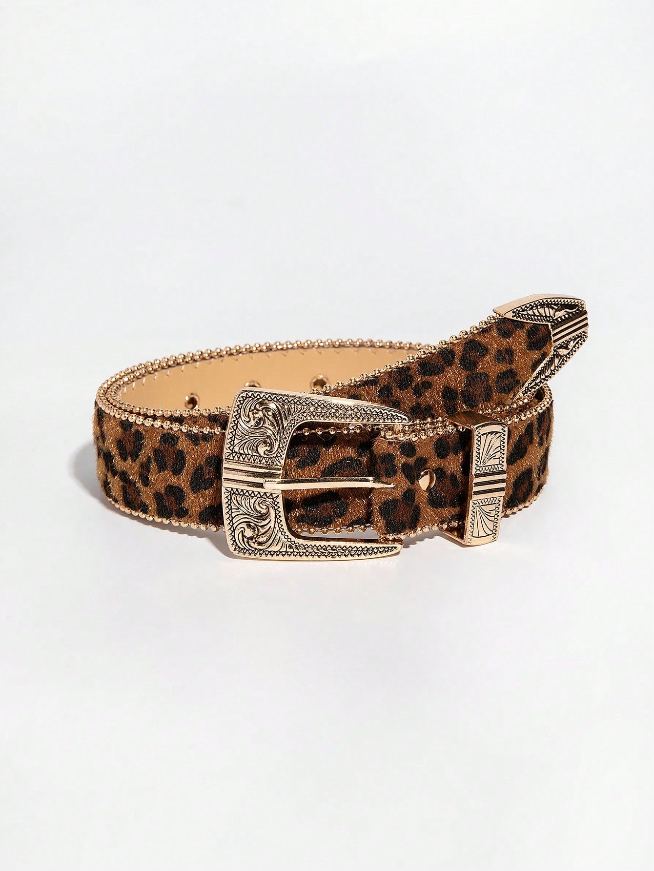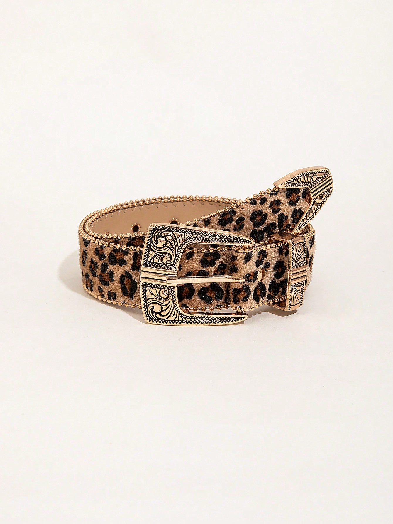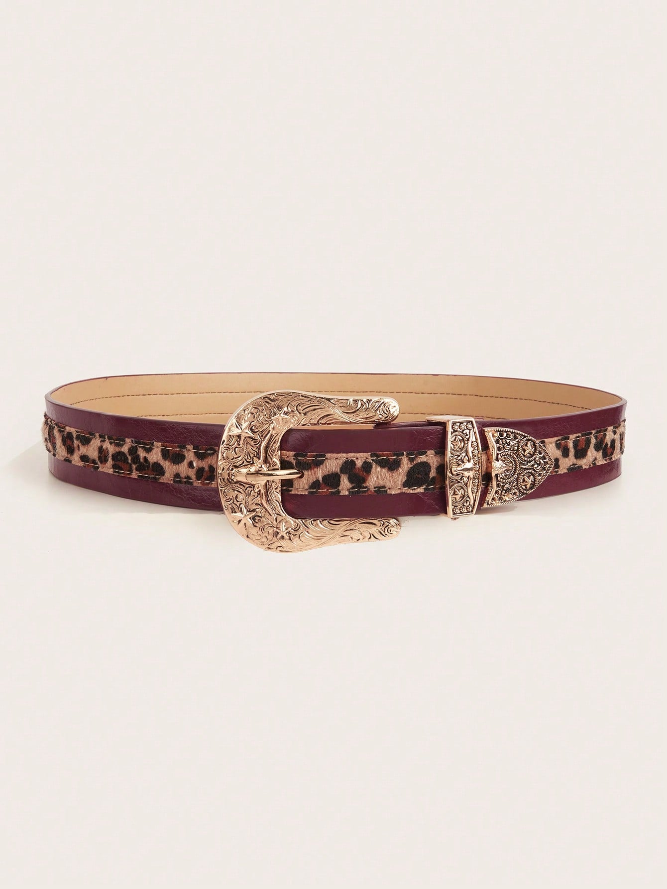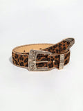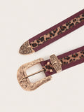 Chic Vintage Leopard Print PU Leather Waist Belt with Metal Buckle for Women