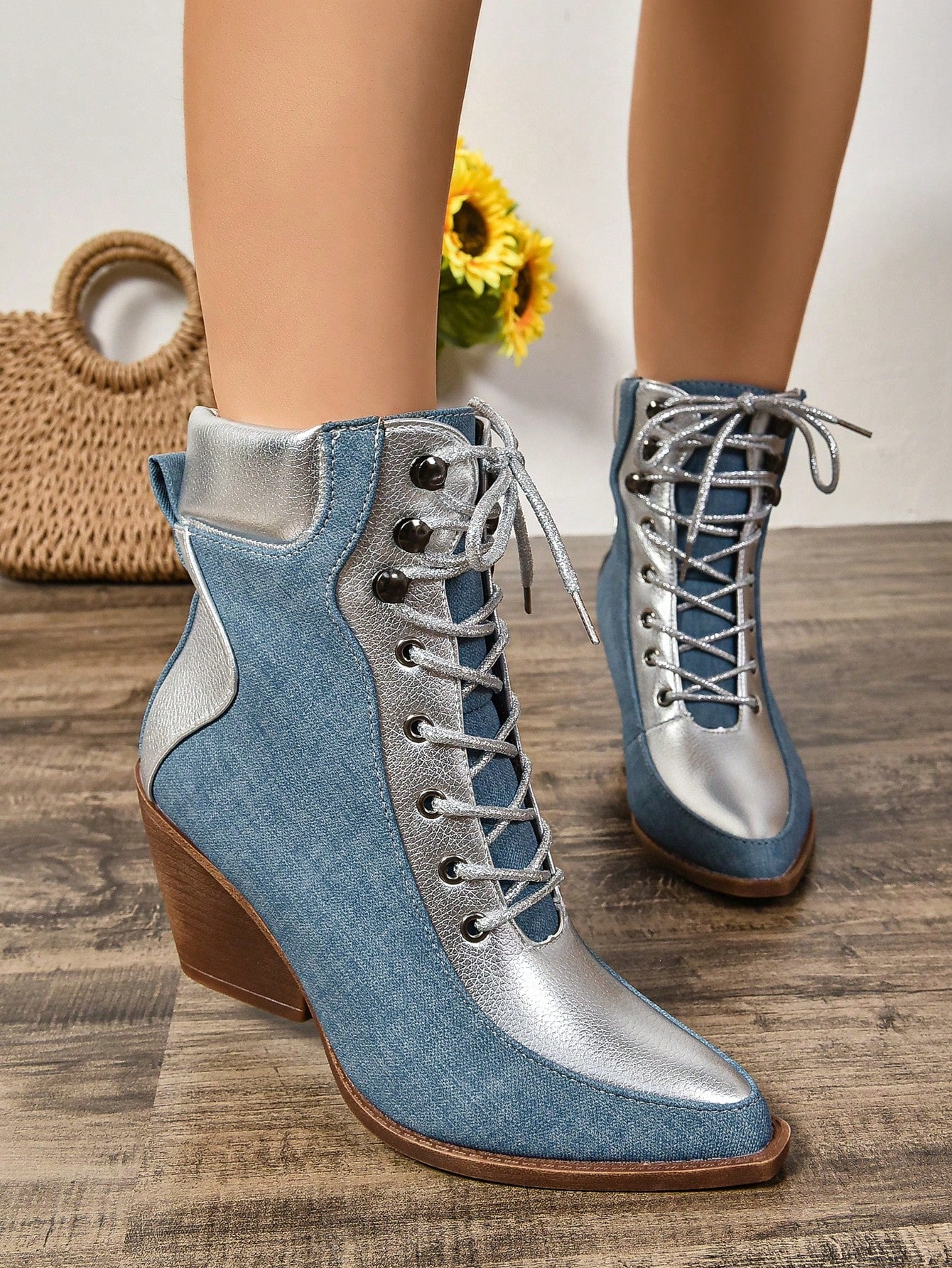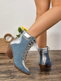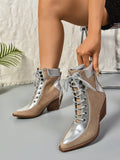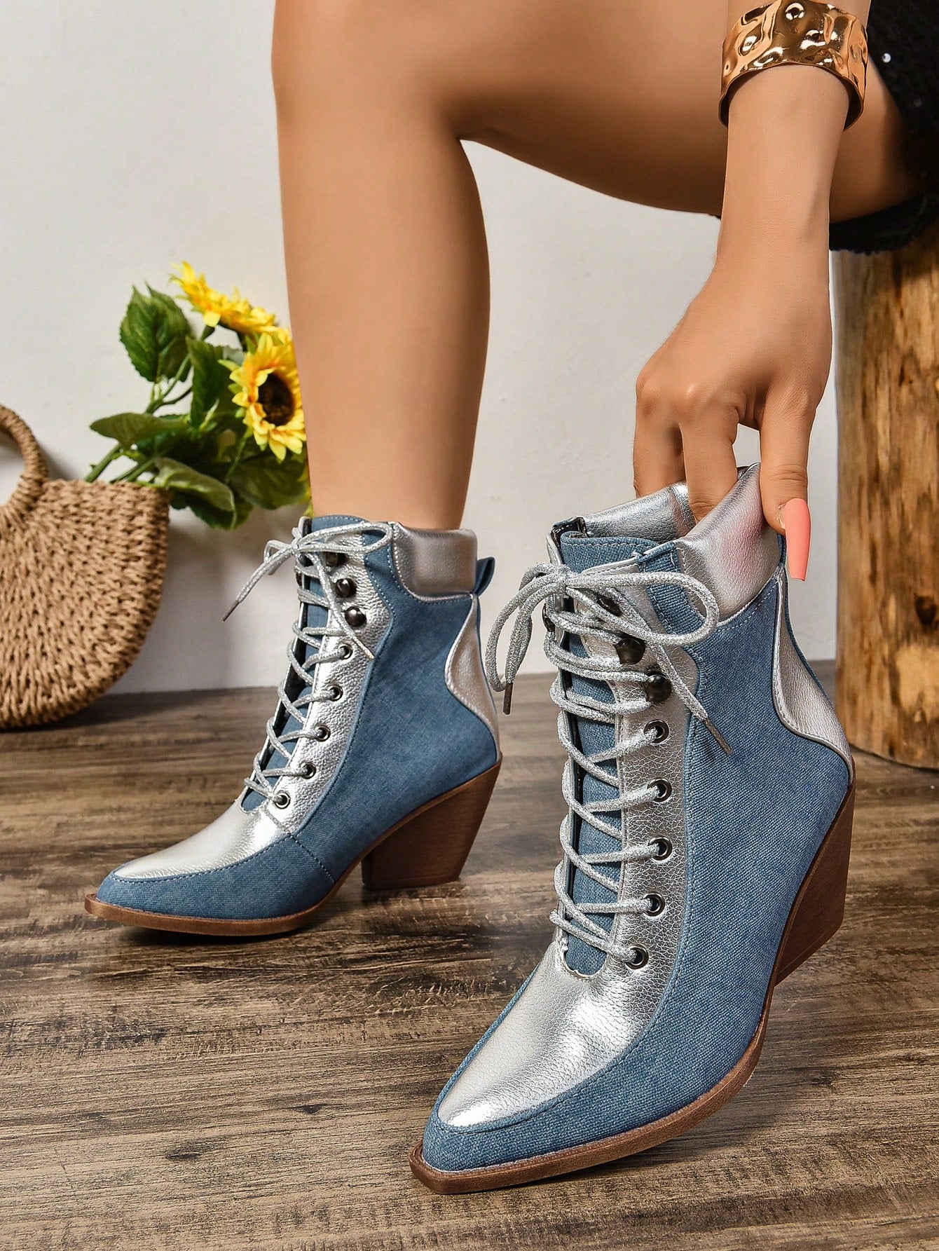 Chic Winter Cross-Strap High Heel Ankle Boots: Colorblock Chunky Heel Dress Boots
