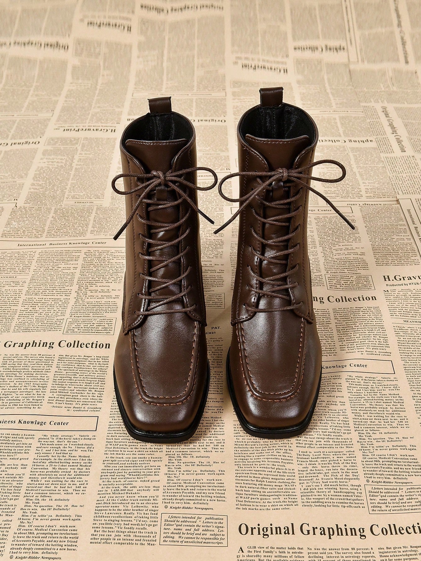 Chic Women's Pointed Toe Lace-Up Mid-Calf Boots for Effortless Style