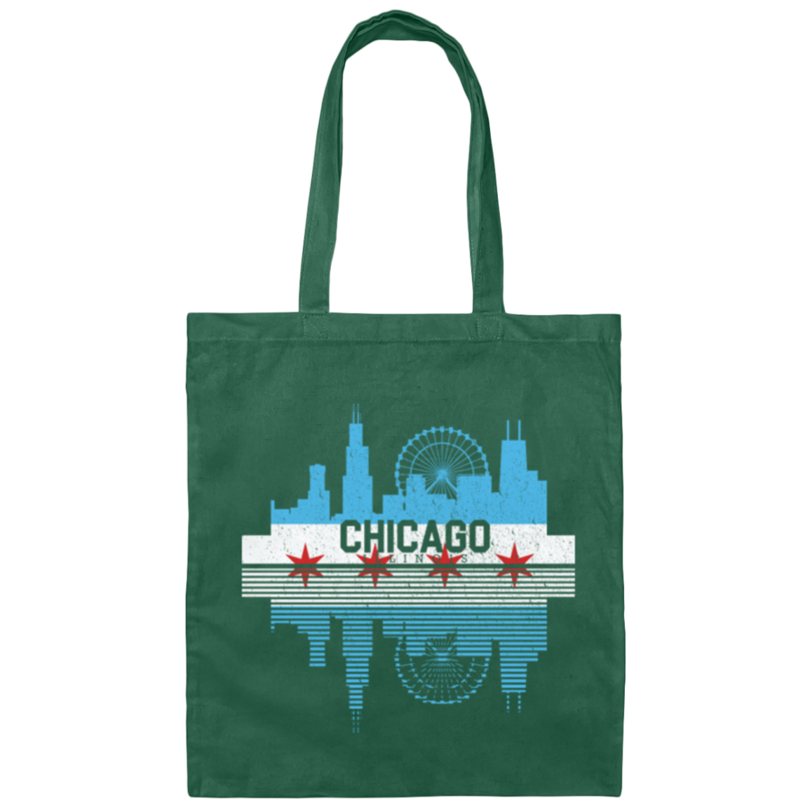 Chicago Skyline Shirt Silhouette IL City Flag Gift Canvas Tote Bag