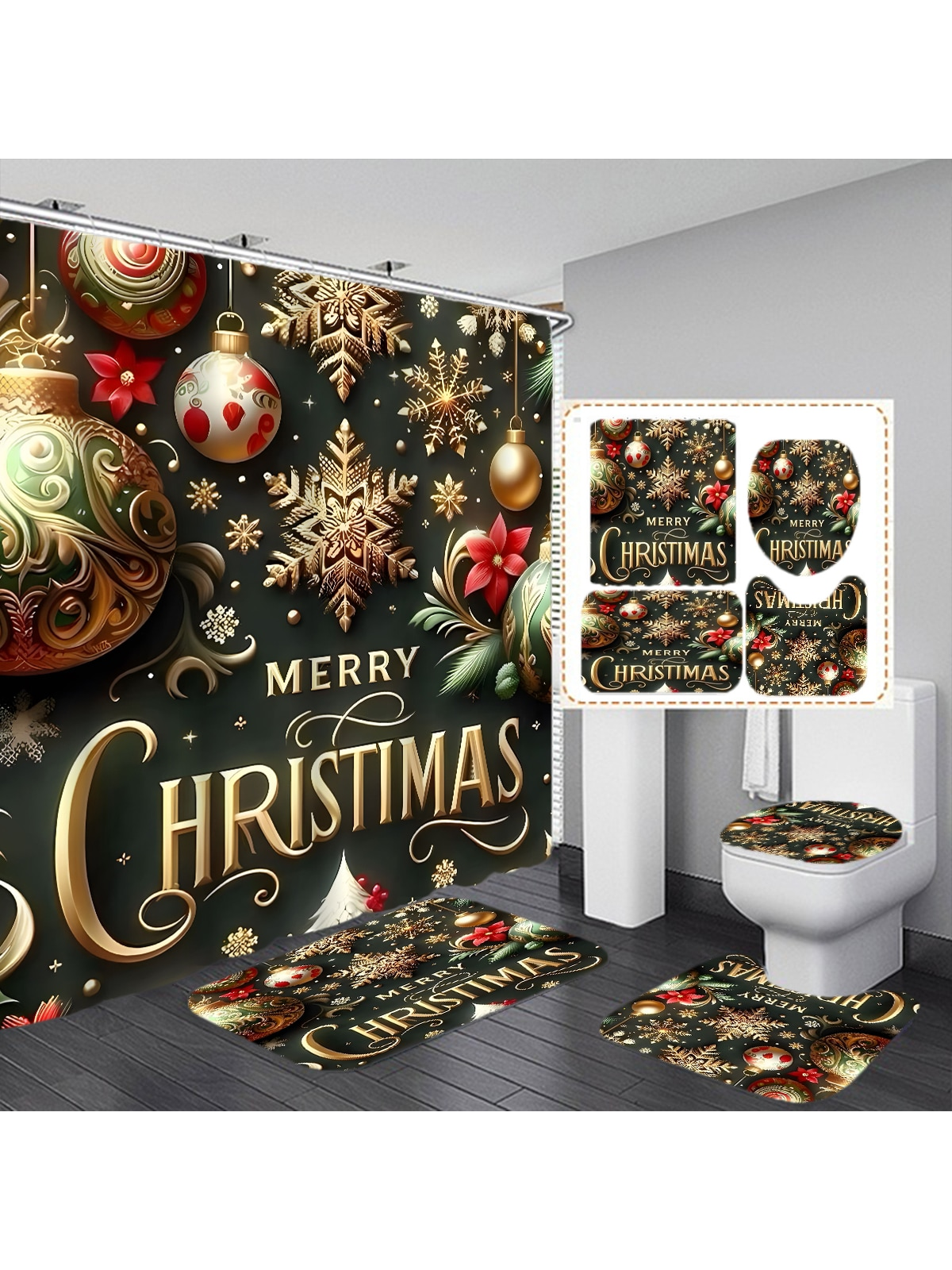 Christmas Delight: Festive Shower Curtain Set for Holiday Cheer and Daily Use