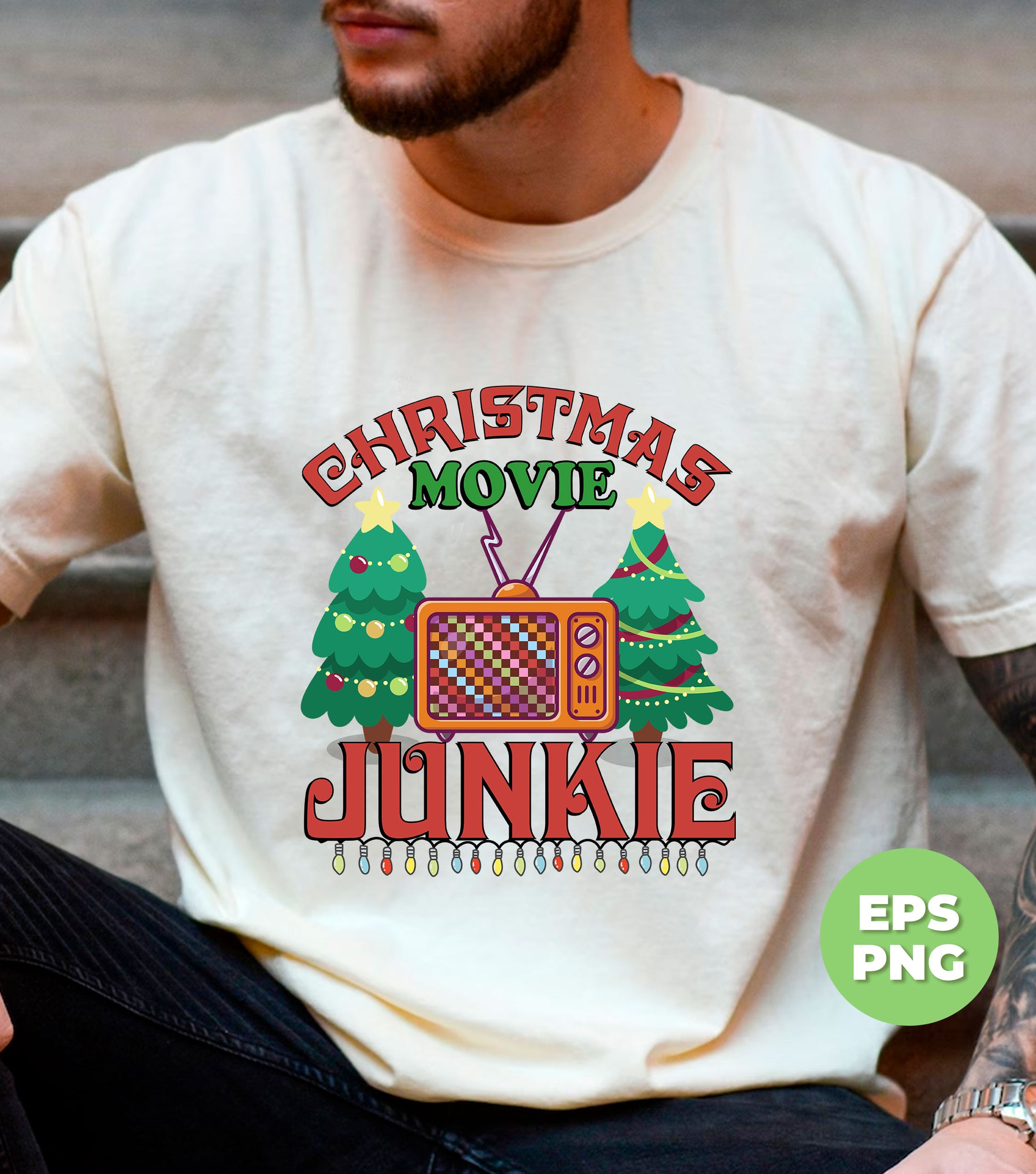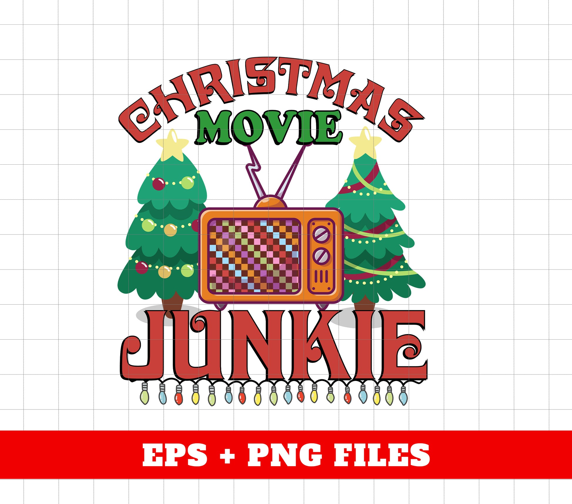 Christmas Movie Junkie, Christmas Tree, Retro Christmas, Xmas Gift, Christmas Junkie, Digital Files, Png Sublimation