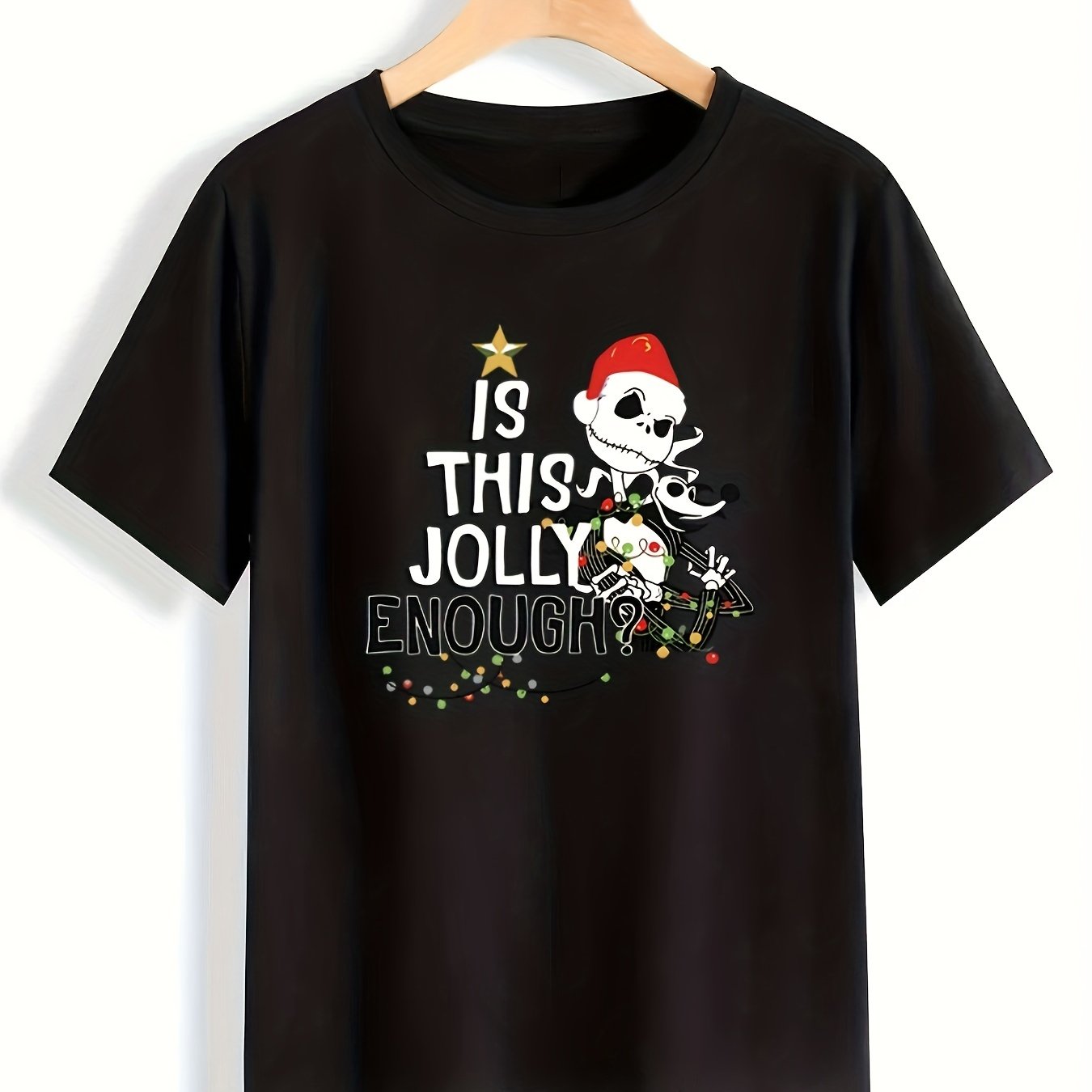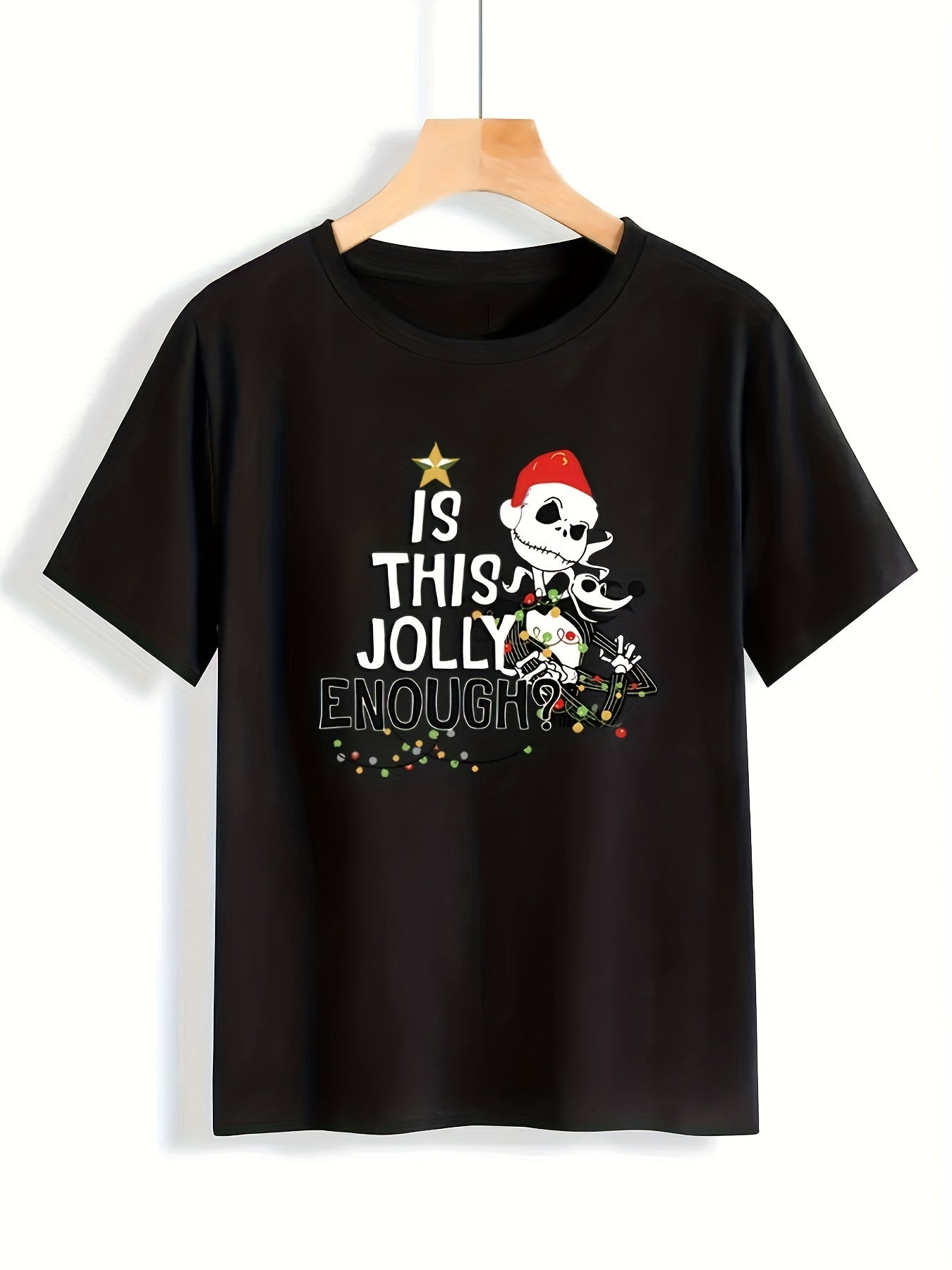 This Christmas Skeleton T-Shirt is sure to add some festive fun to your wardrobe. Crafted from 100% cotton, it's designed with a classic fit, short sleeves, and a ribbed crew neckline, making it comfortable and stylish. With a festive skeleton graphic, this t-shirt is the perfect way to get into the holiday spirit.
