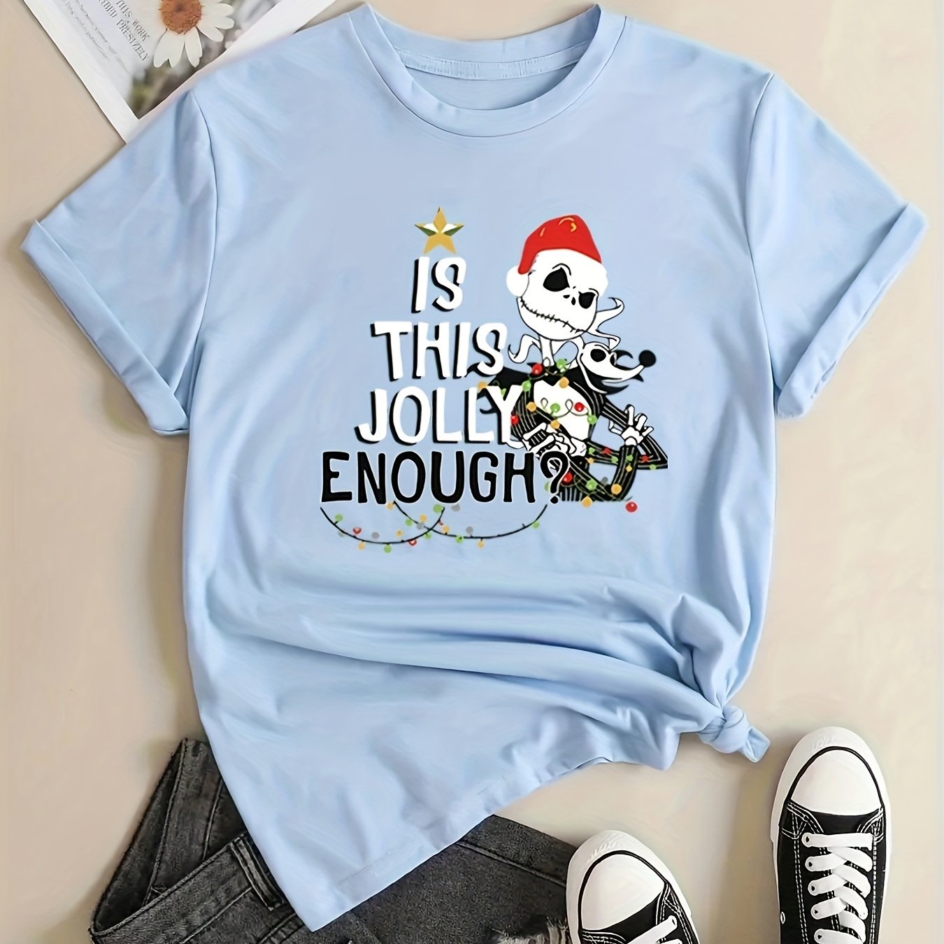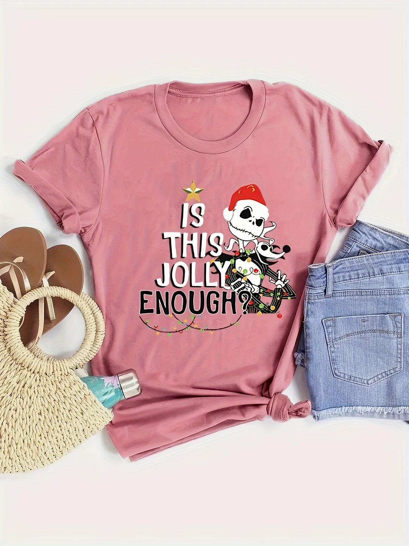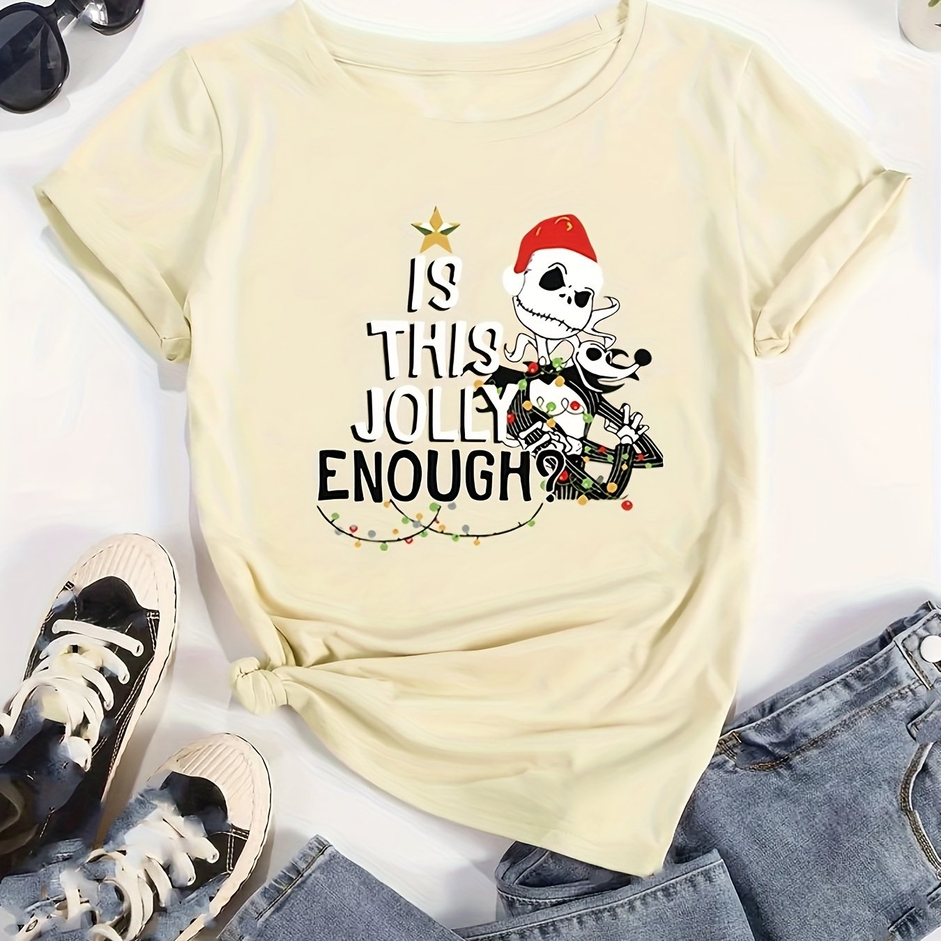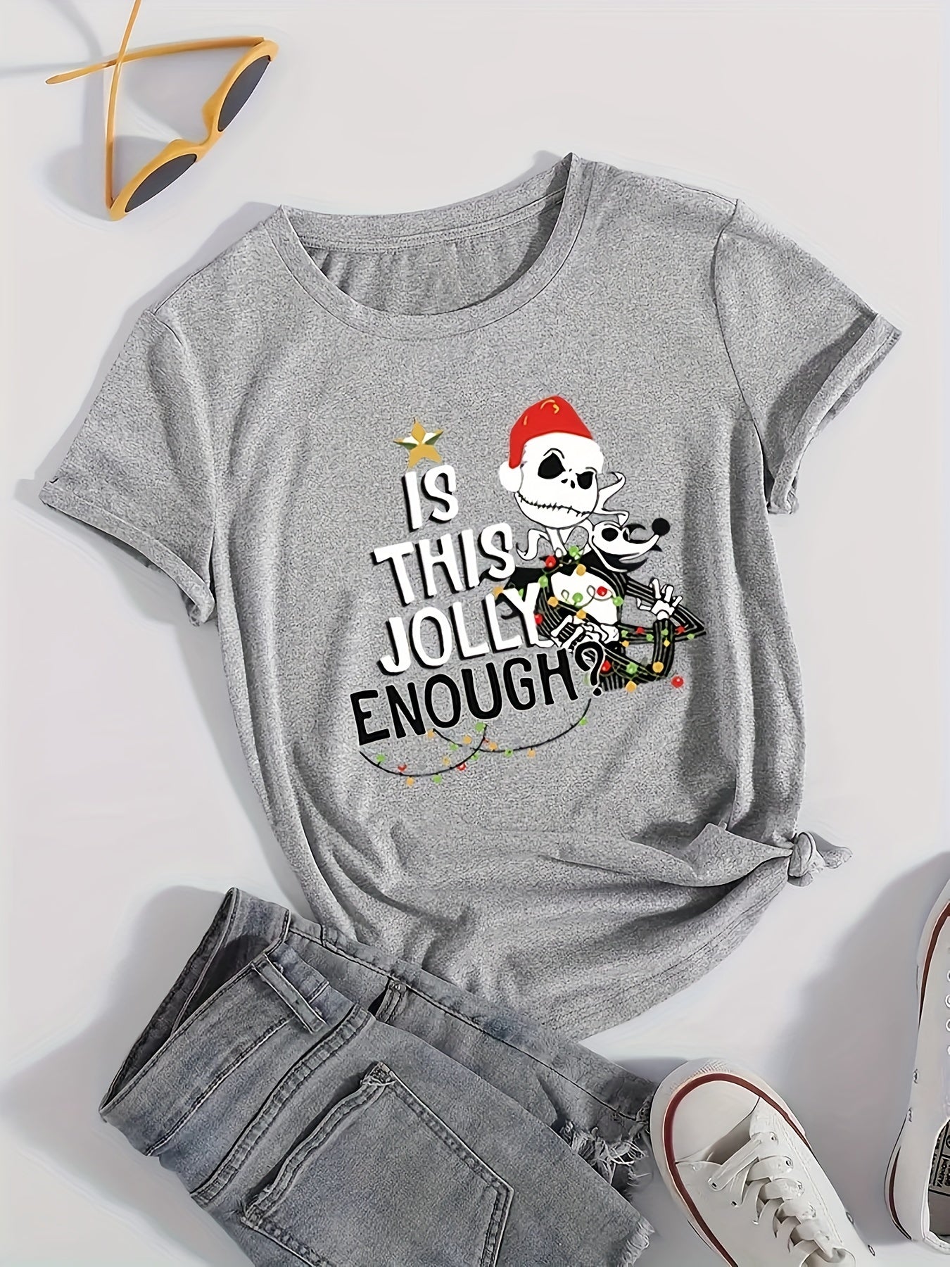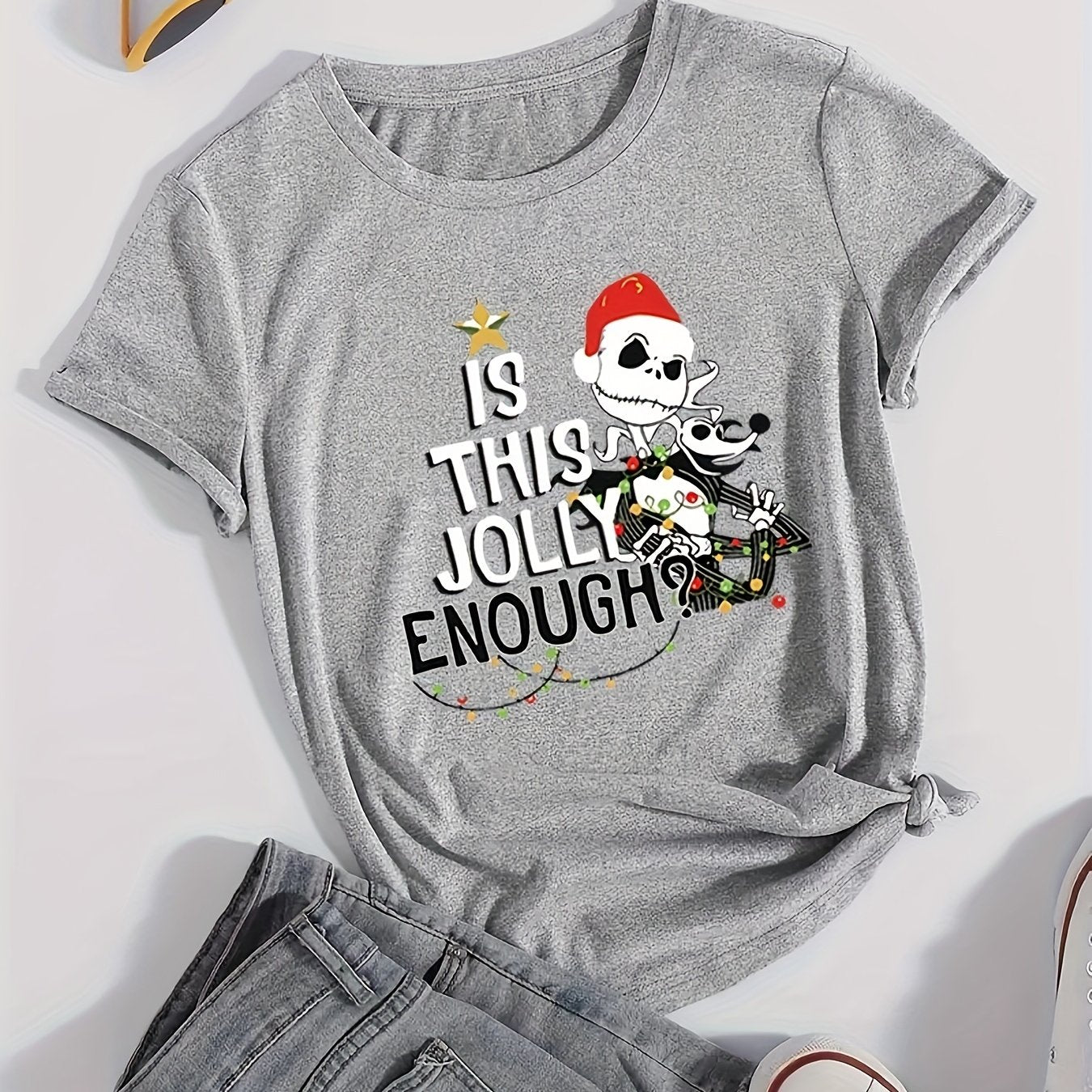 Christmas Skeleton: Festive and Stylish Short Sleeve T-Shirt for Women
