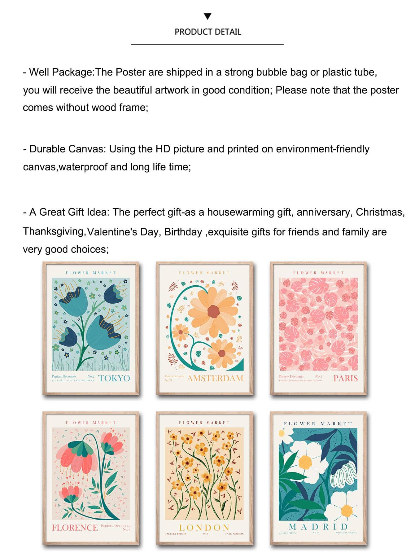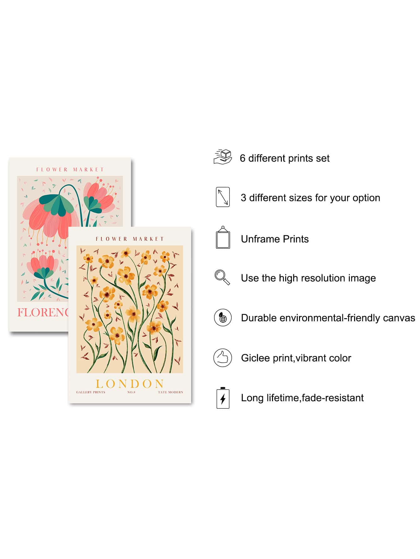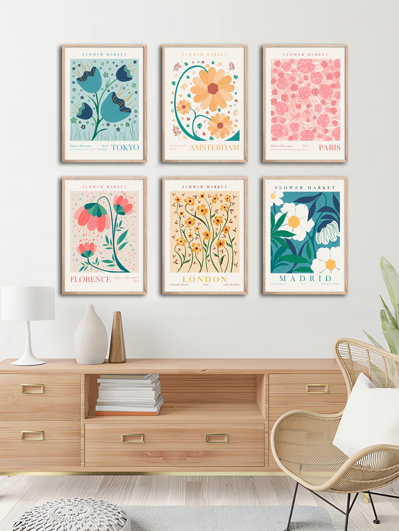 Discover the beauty of city and country botanical scenes with our 6-piece canvas print set. Each print features hand-painted plant illustrations from London, Madrid, Paris, and Tokyo. Perfect for adding a touch of nature to your home decor.