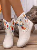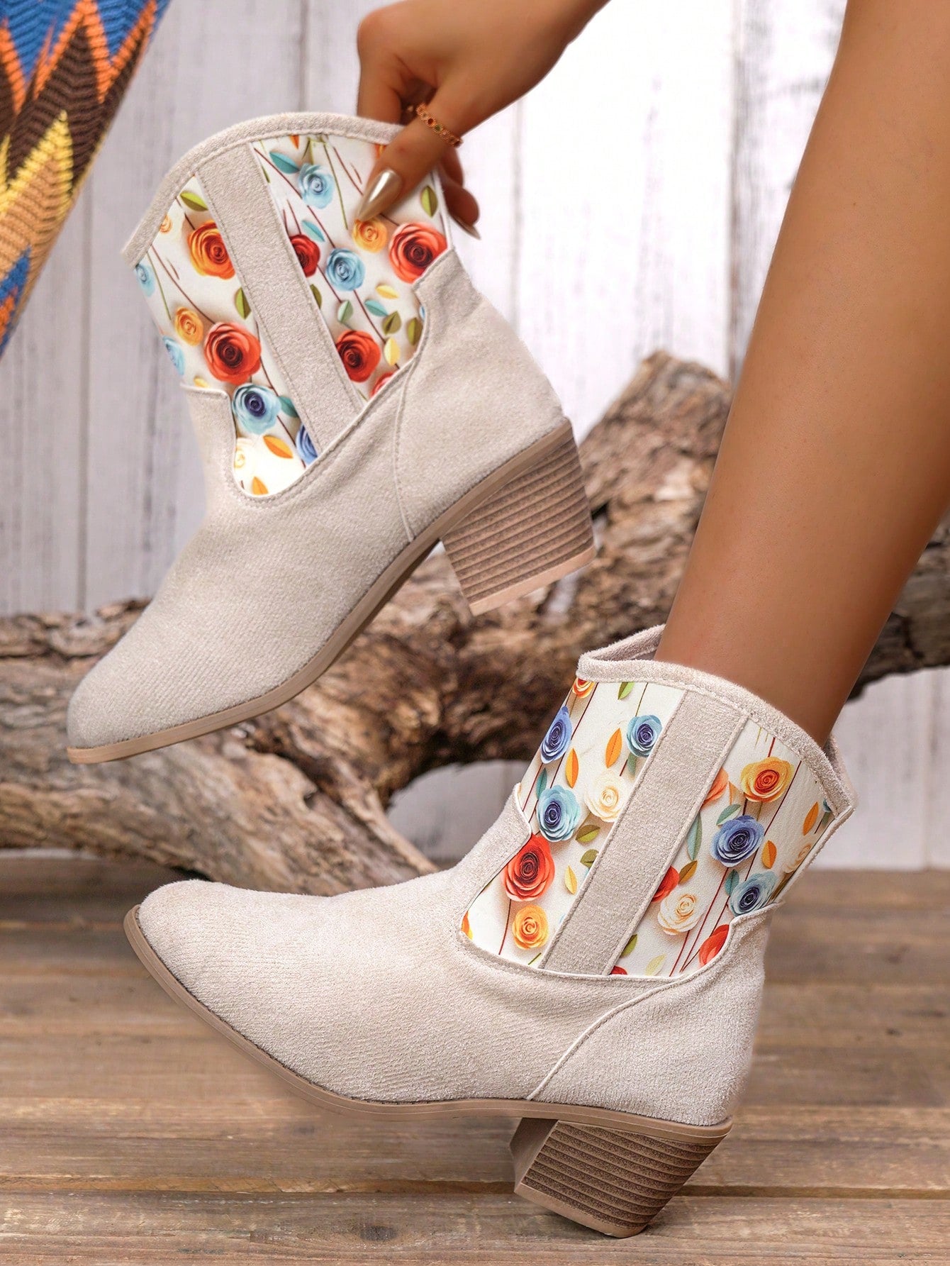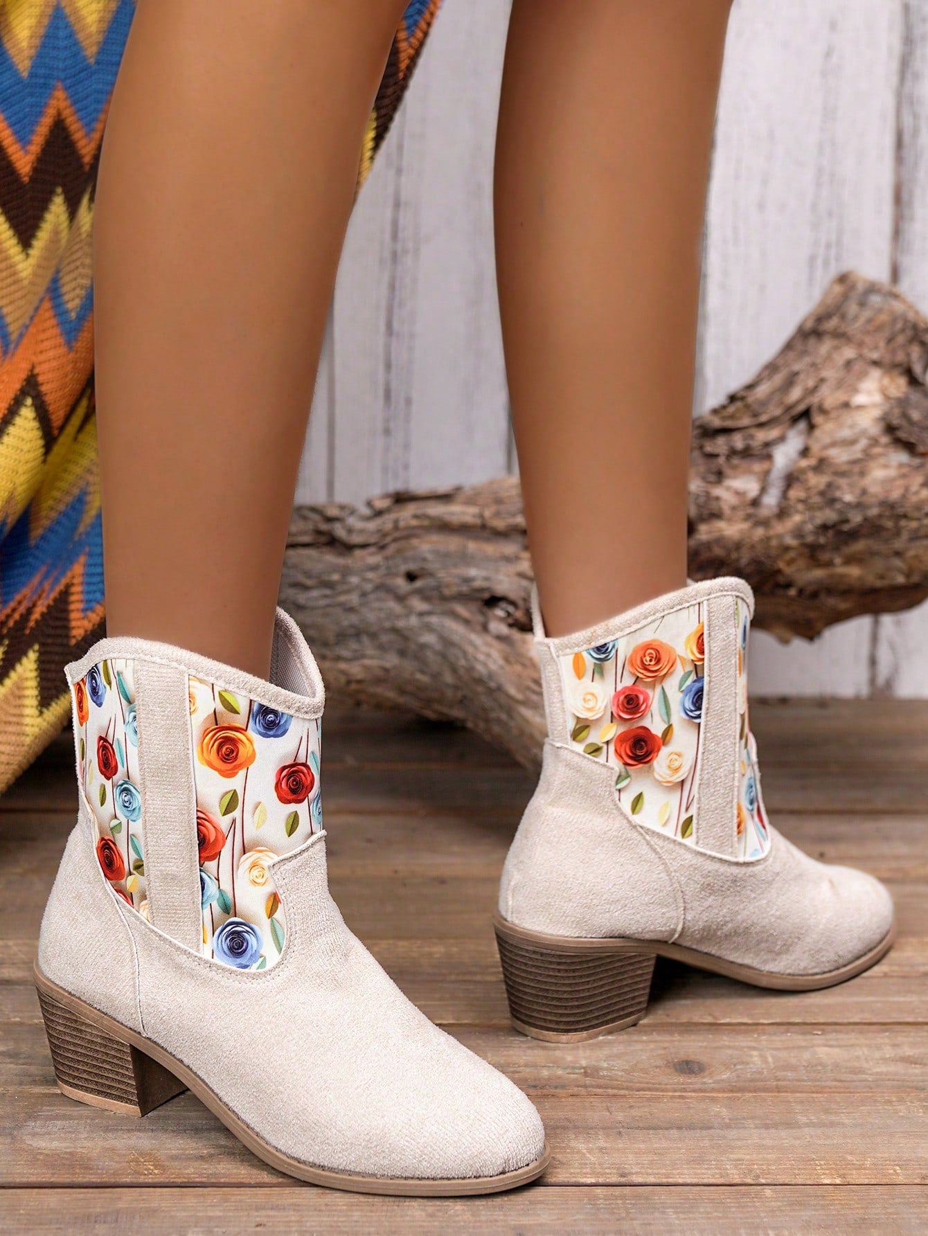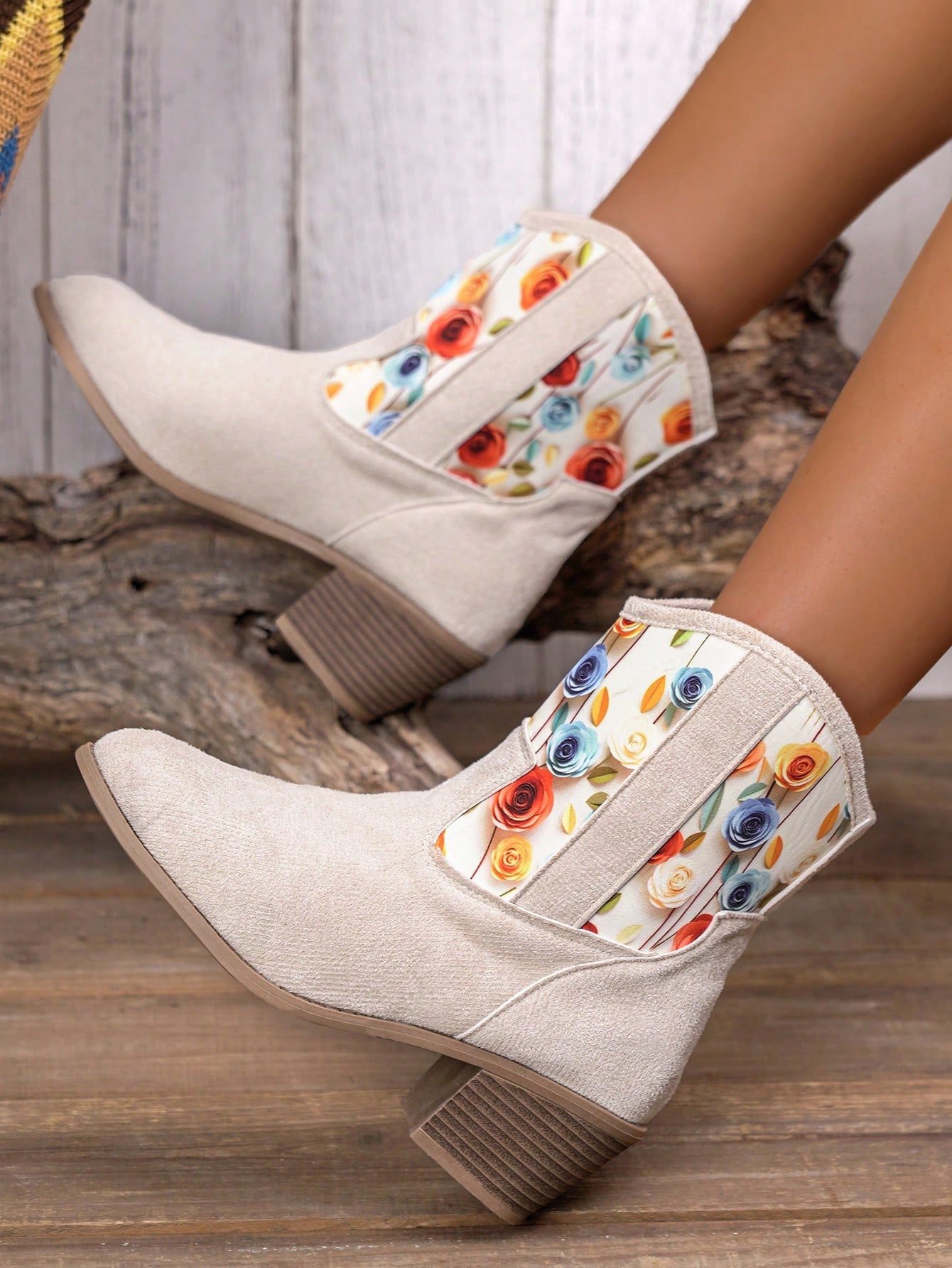 Color Blocked Chunky Heel Short Boots for a Stylish Halloween Party Look