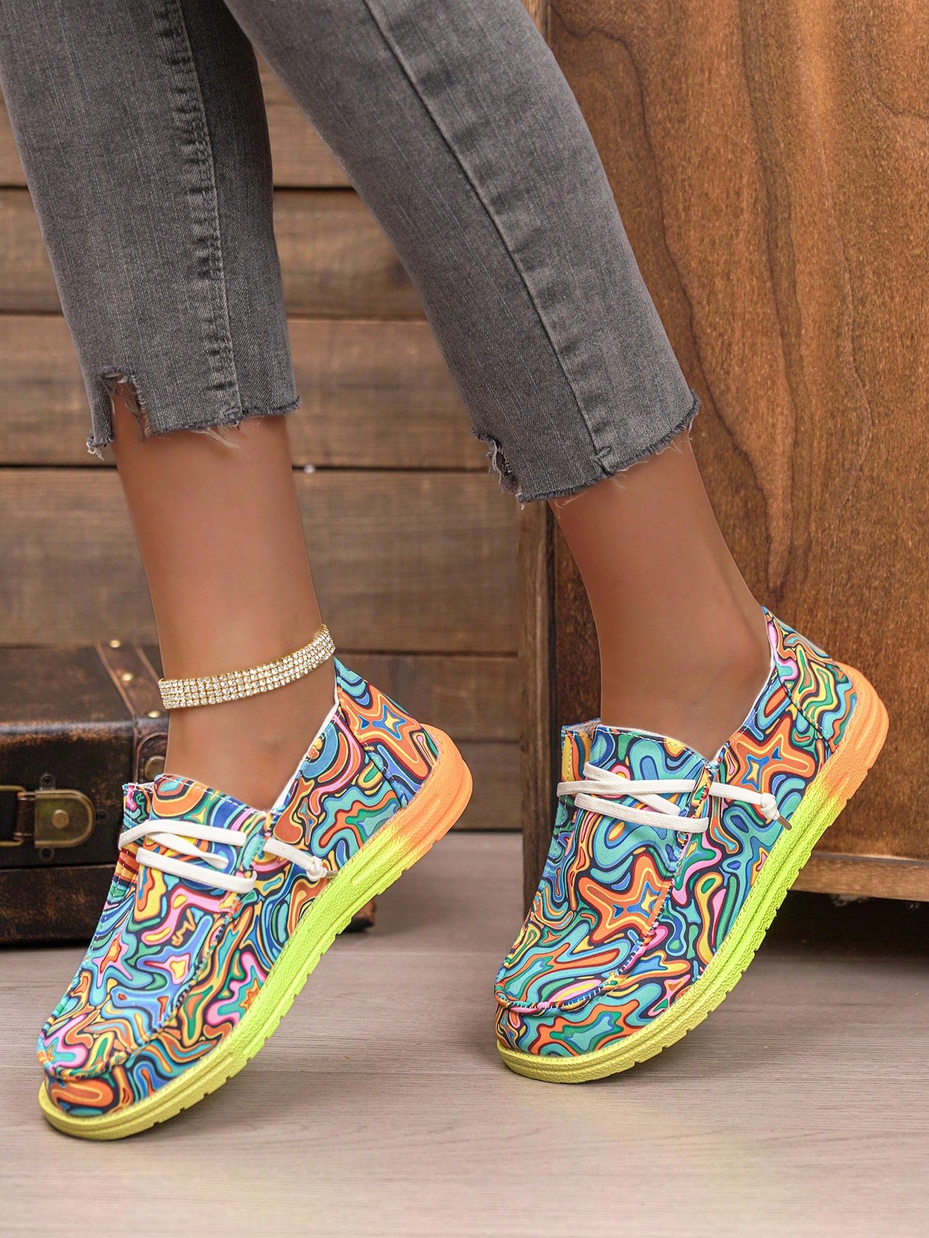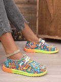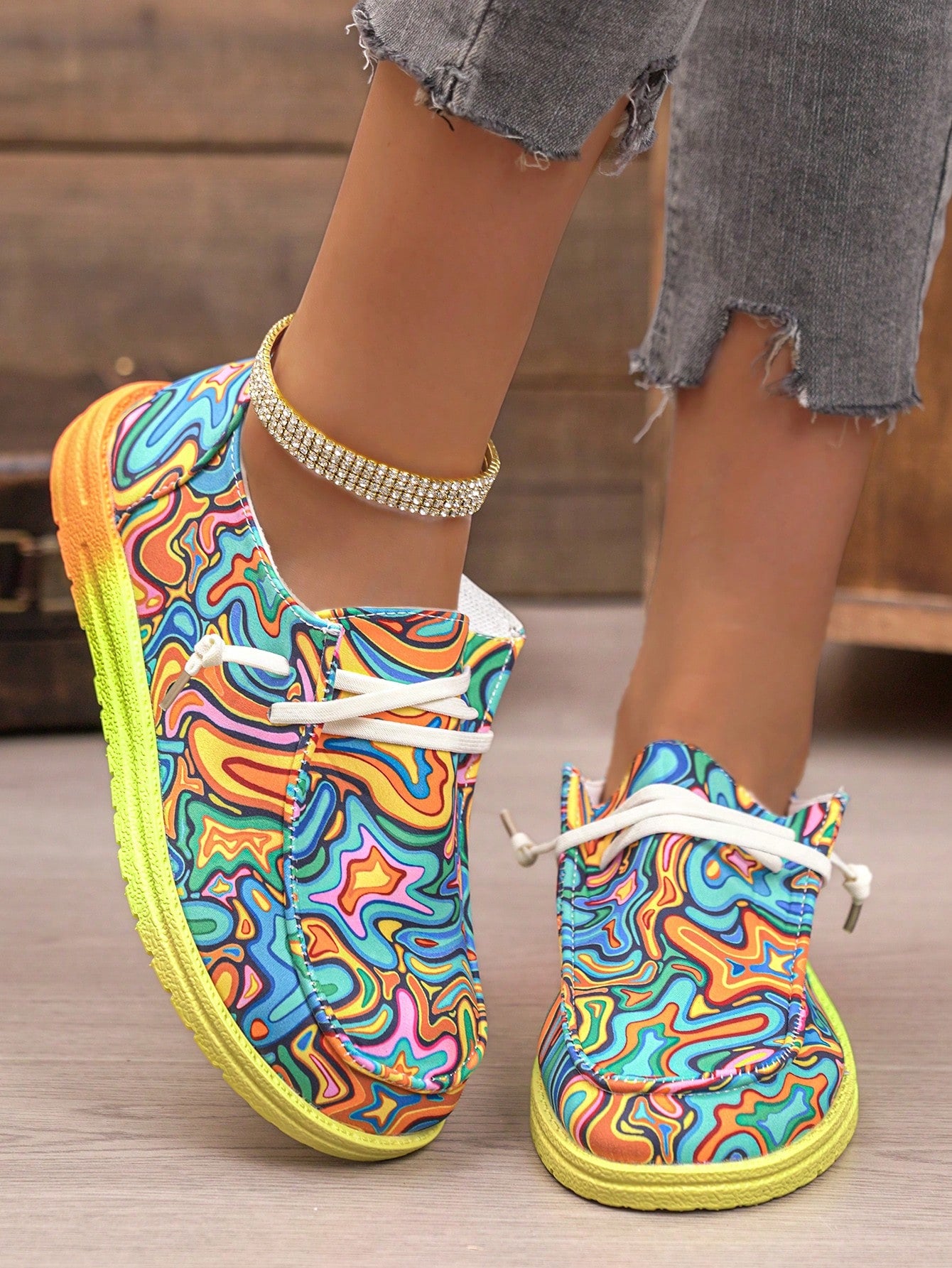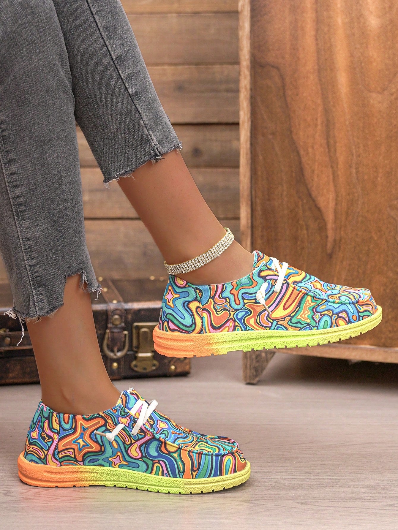 Colorful Comfort: Women's Rainbow Lace-Up Flat Casual Shoes for Halloween Parties