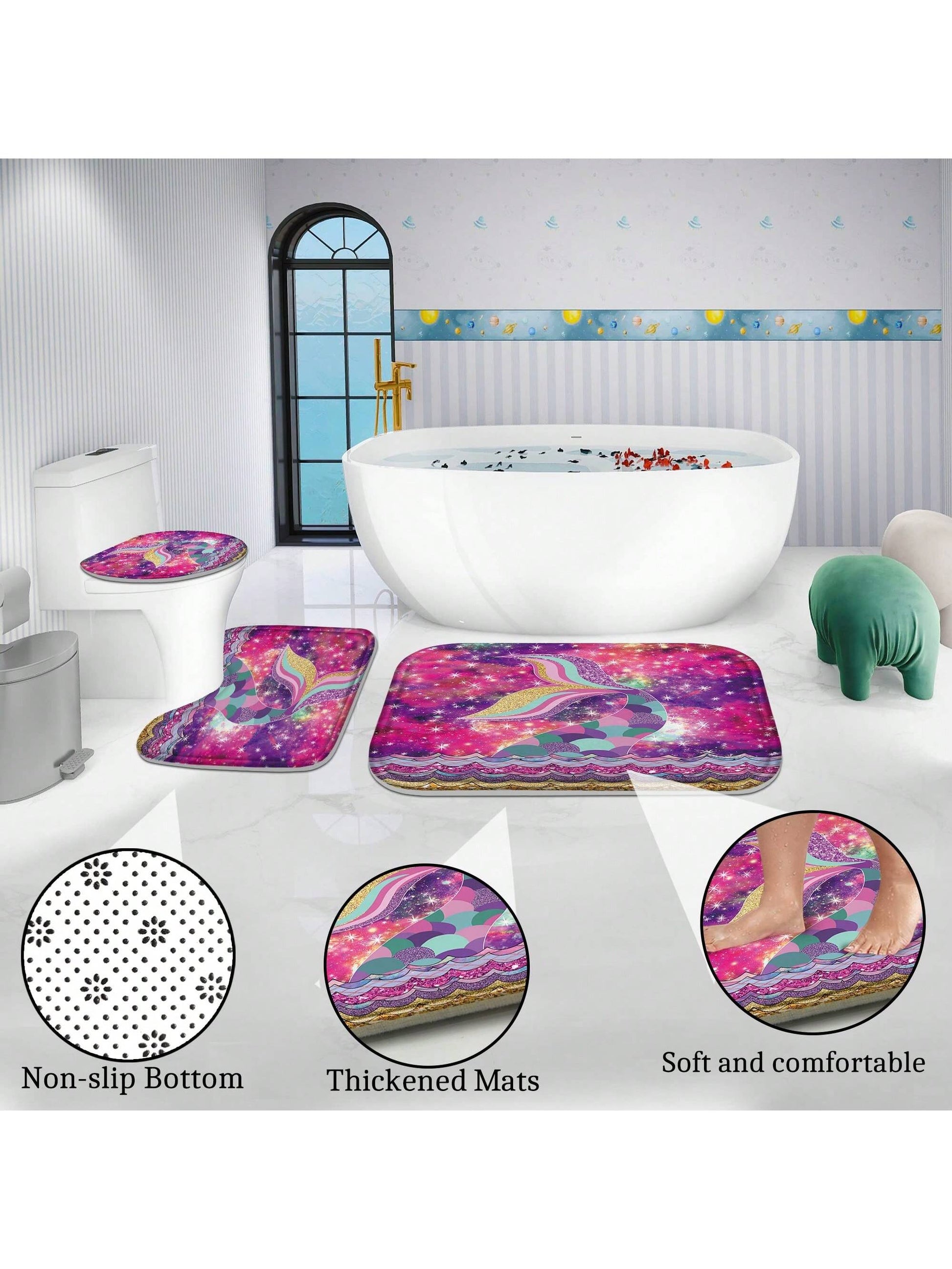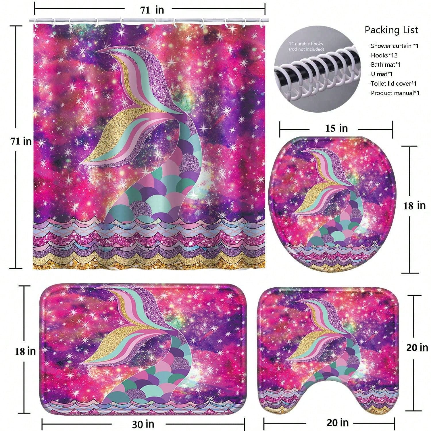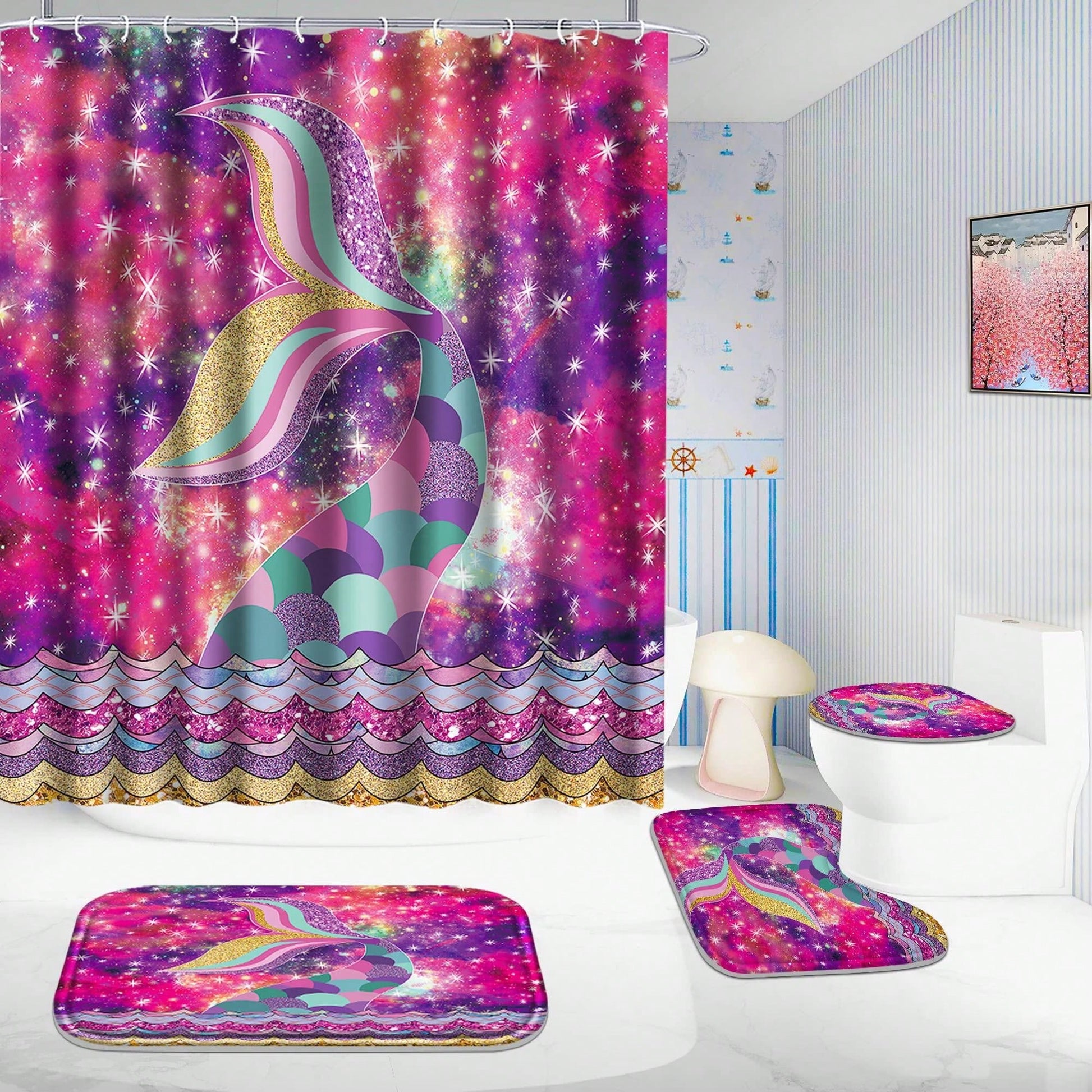Colorful Fish Scale Tail Bathroom Accessory Set: Shower Curtain, Rugs, and More!