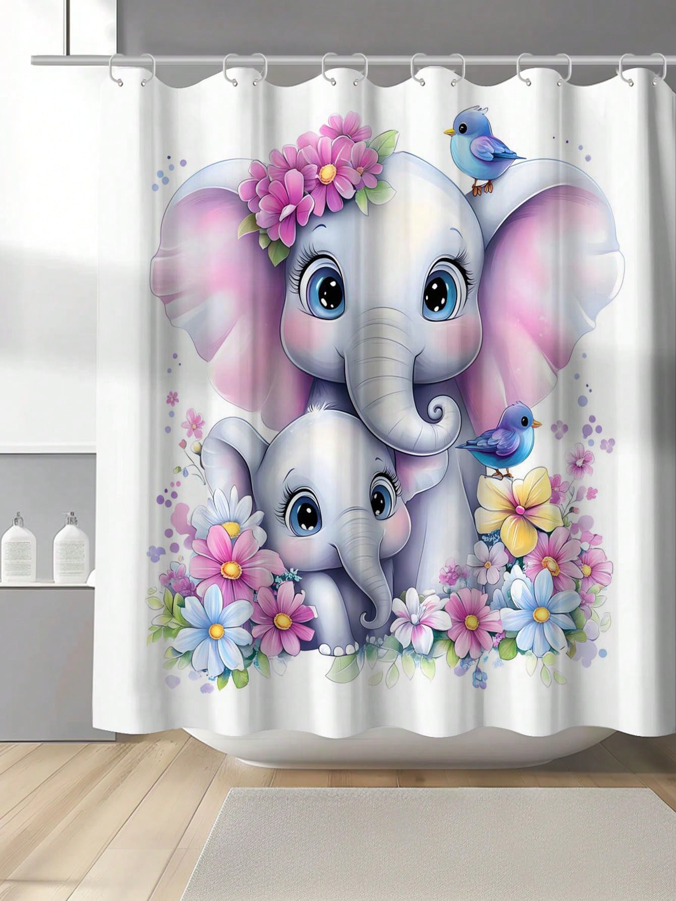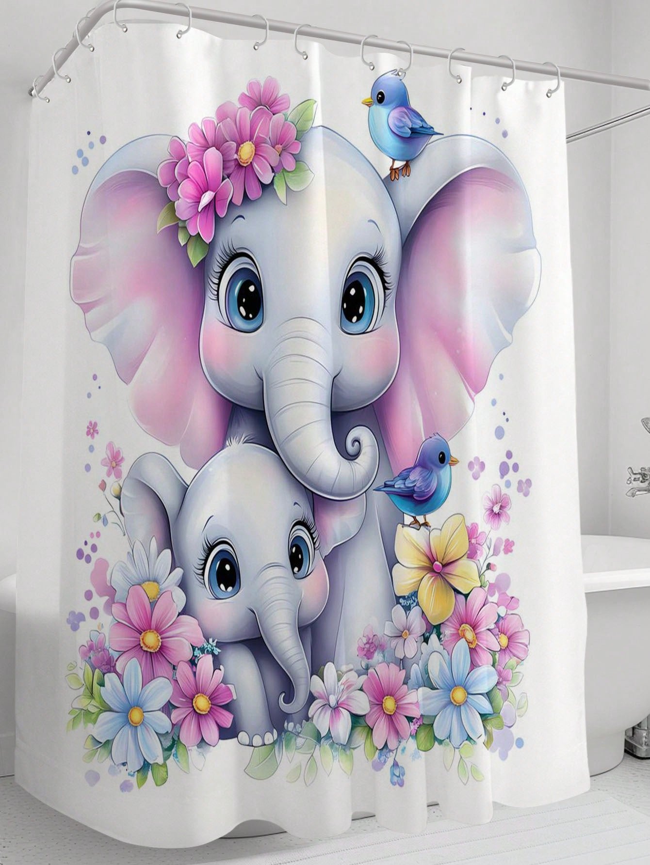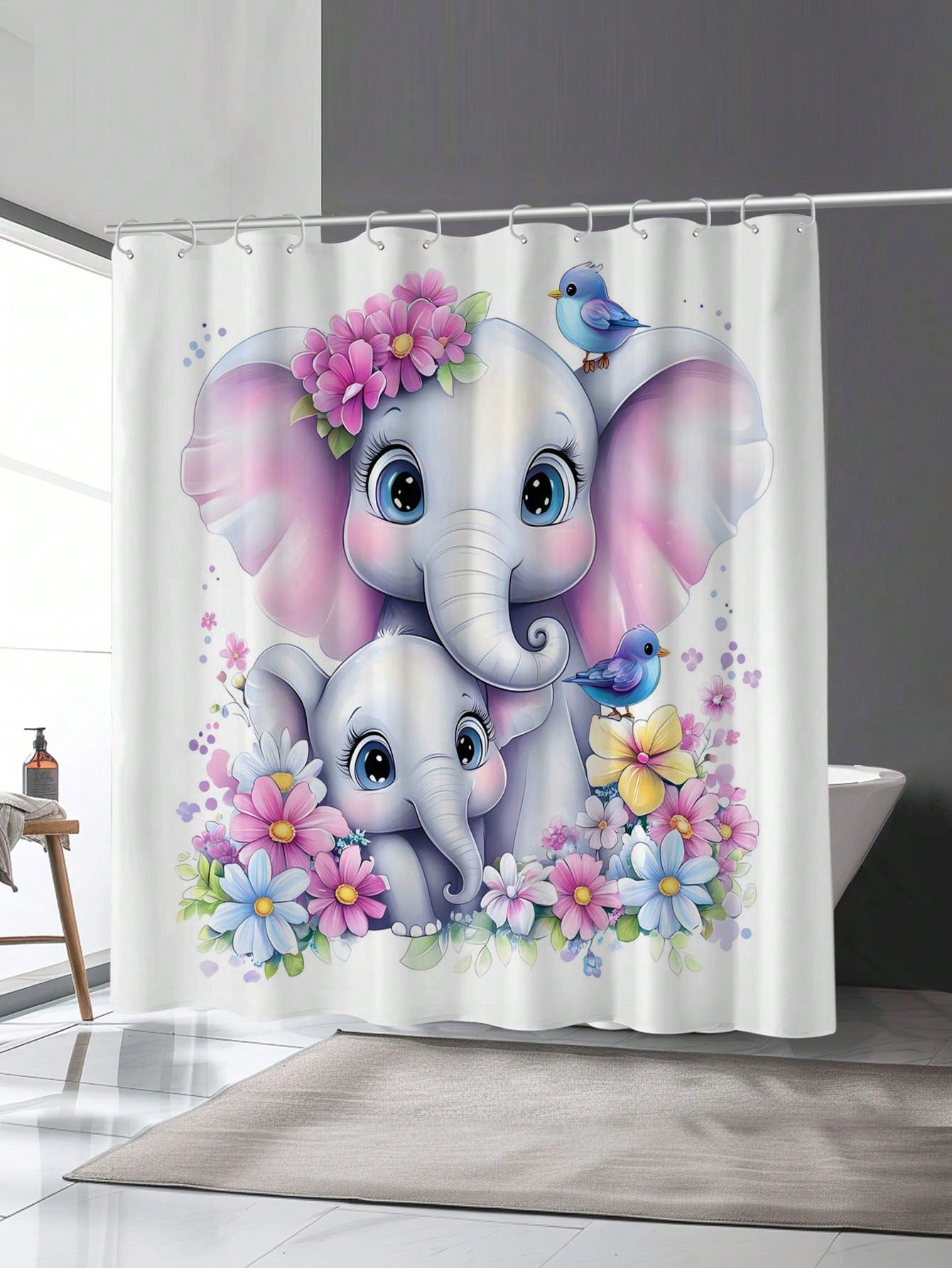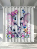 Colorful Floral Elephant Waterproof Shower Curtain - Stylish & Mildew-Resistant Bathroom Accessory with Hooks