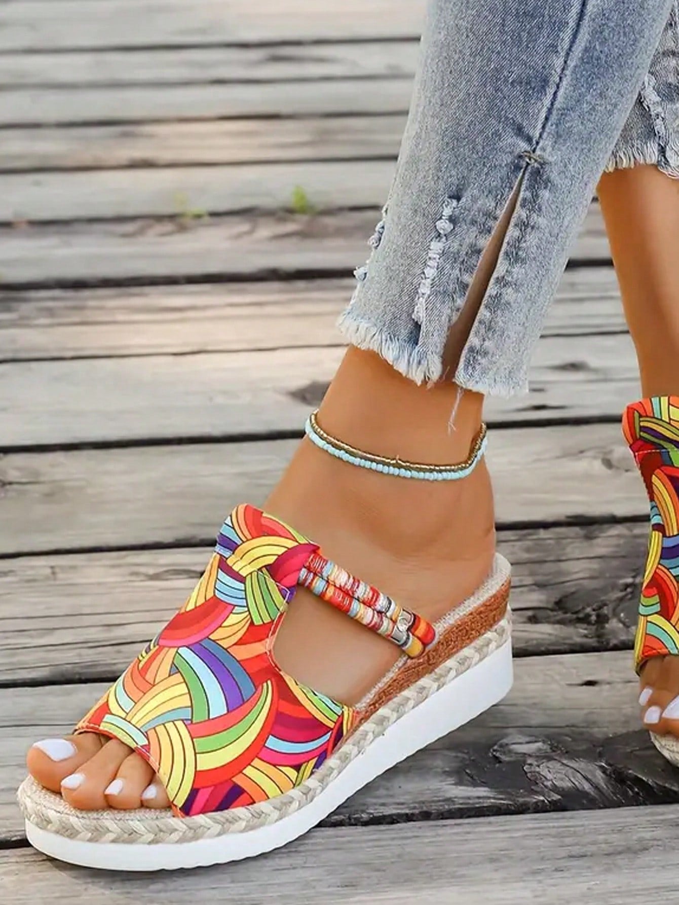 Colorful Woven Platform Wedge Sandals: Summer Comfort with Style