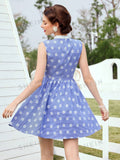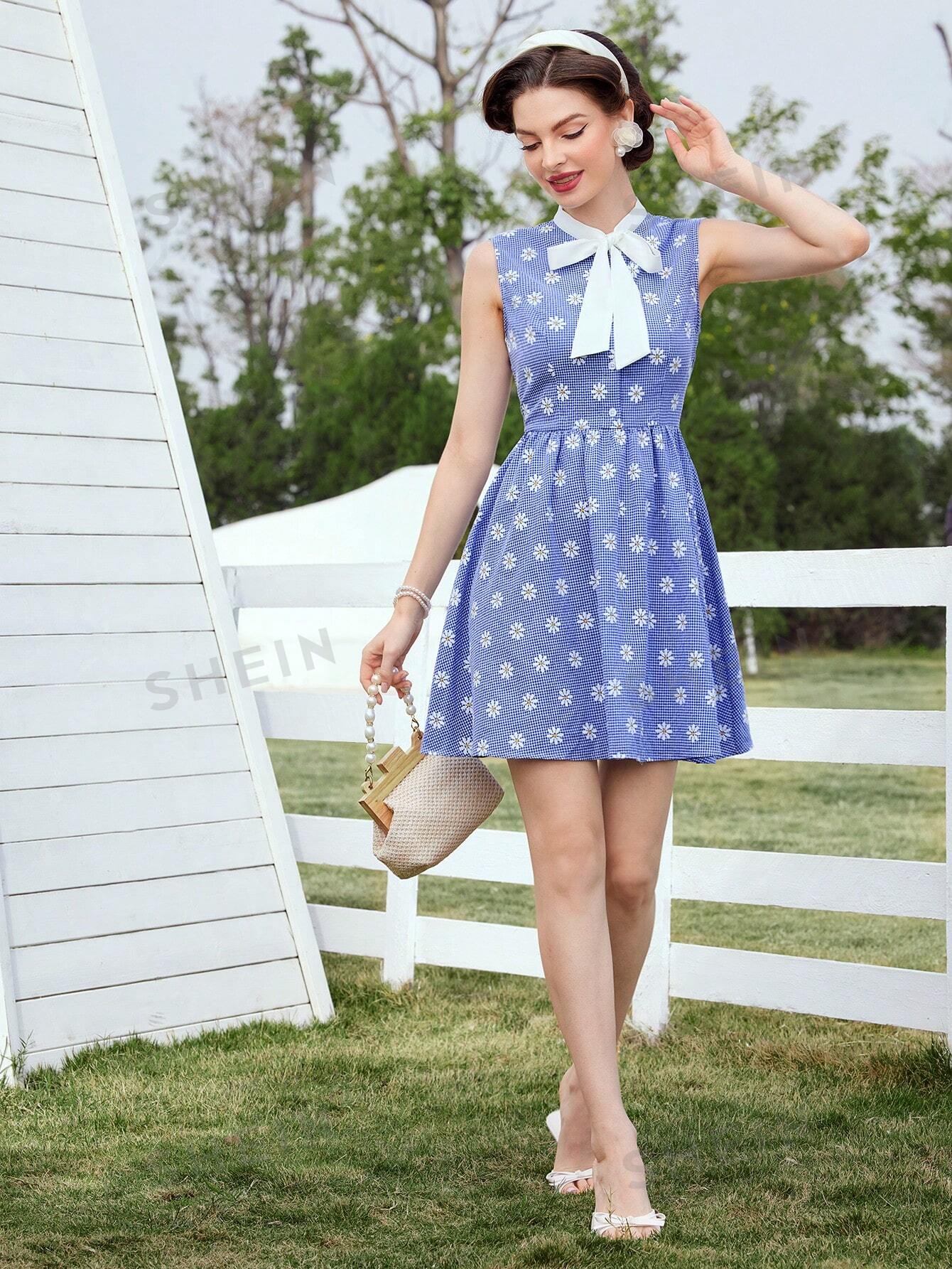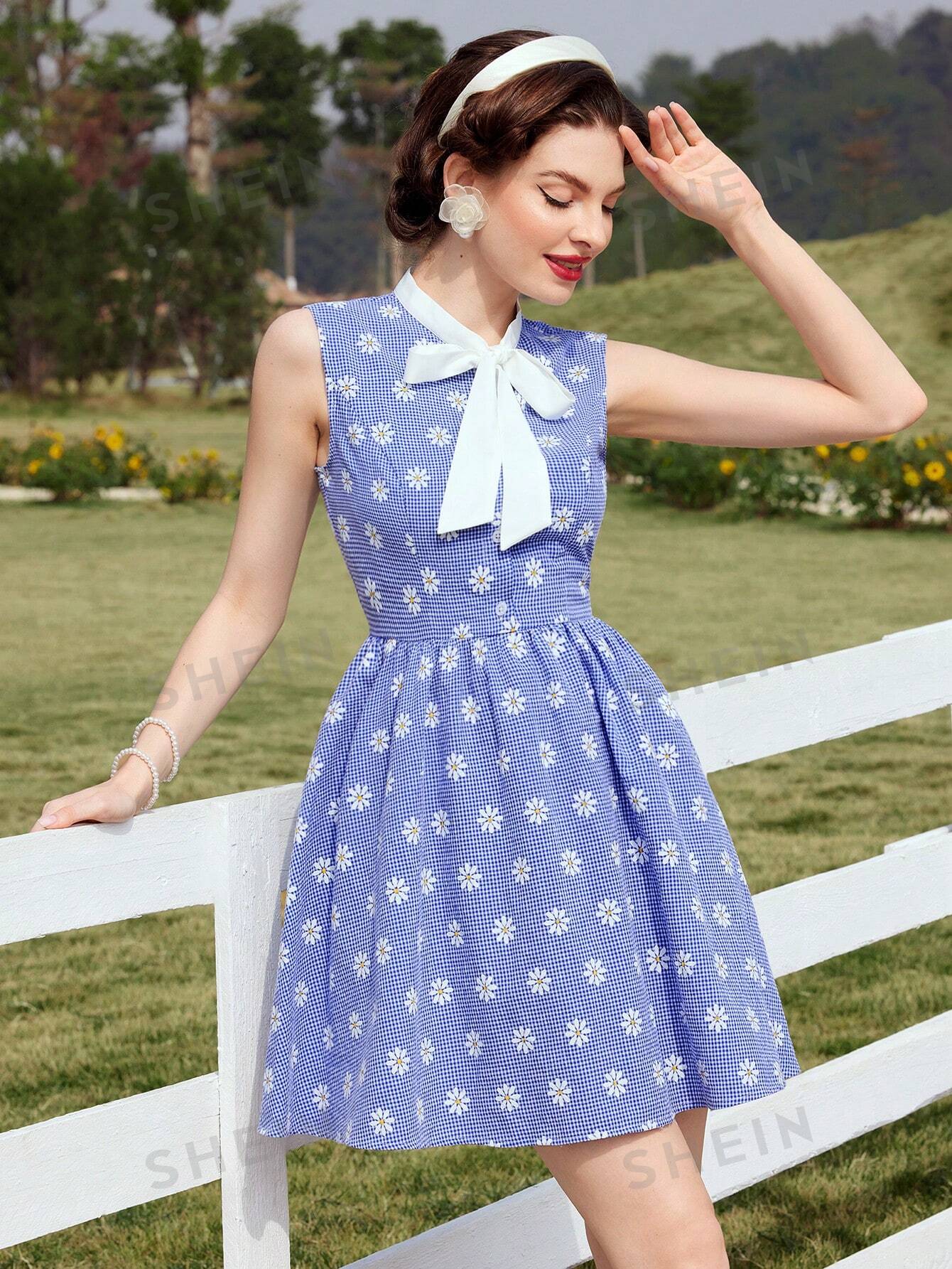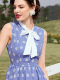 Country Charm Vintage Sleeveless Dress with Daisy Floral Pattern
