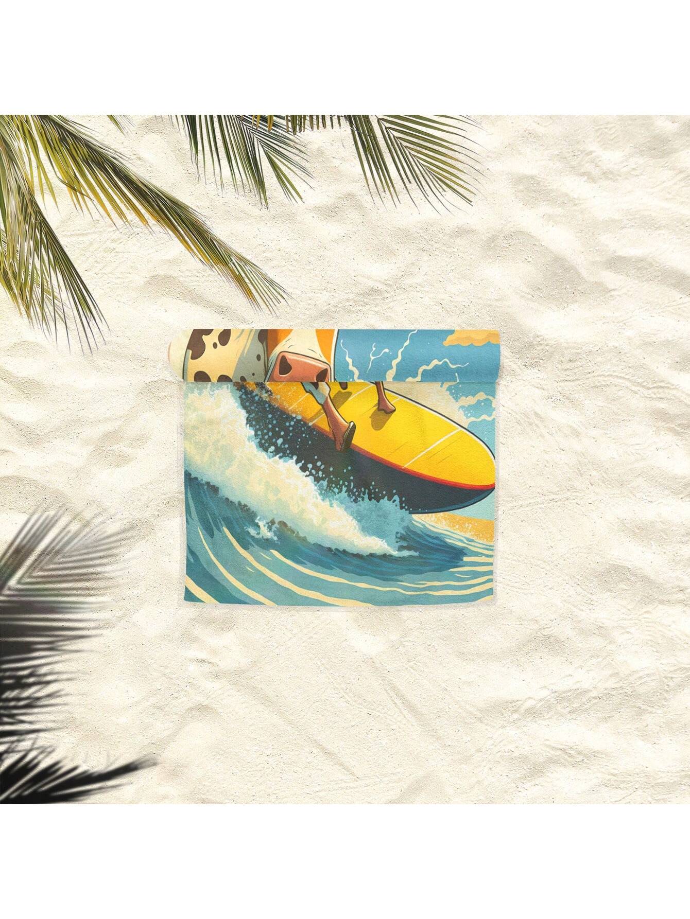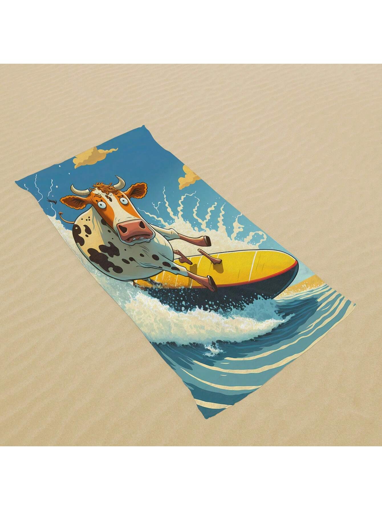 Cow Surfing Fun: Cartoon Style Microfiber Beach Towel for Men and Women