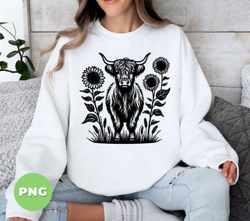 Cow With Sunflower, Cow Silhouette, Sunflowers Silhouette, Digital Files, Png Sublimation