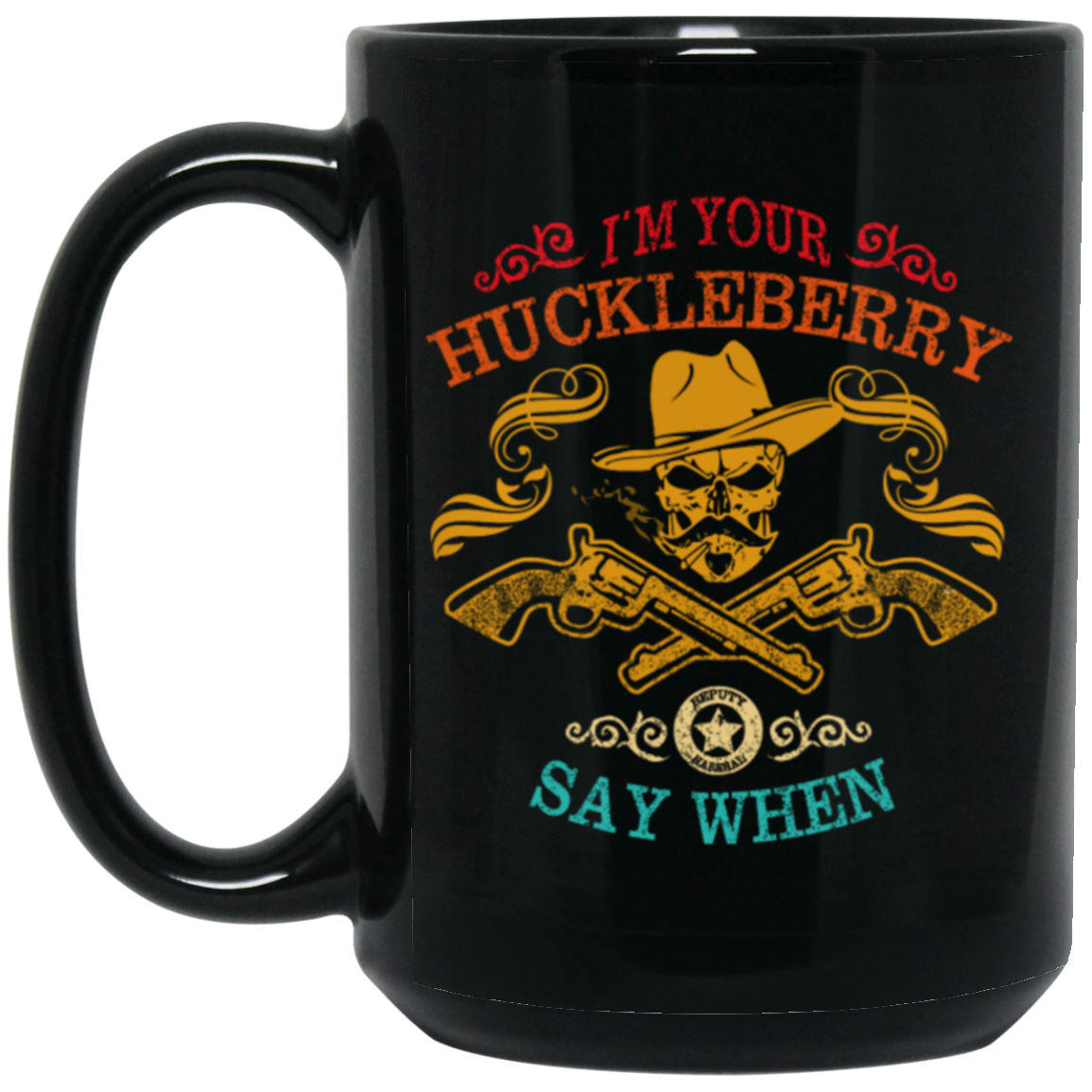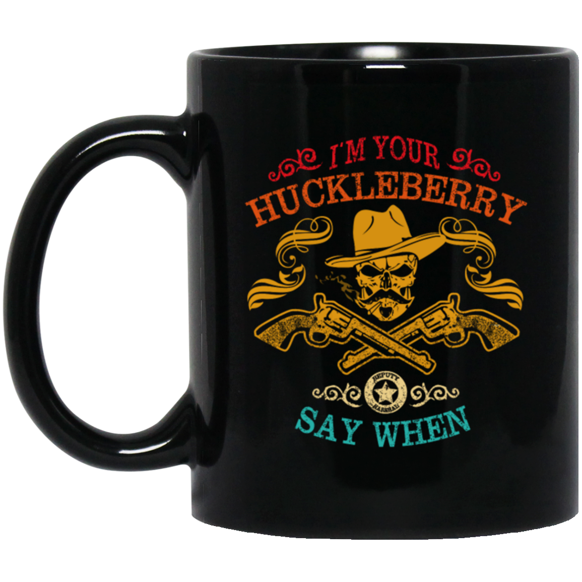 Cowboy Birthday Gift, I'm Your Huckleberry, Say When Funny, Cowboy Vintage Style Black Mug