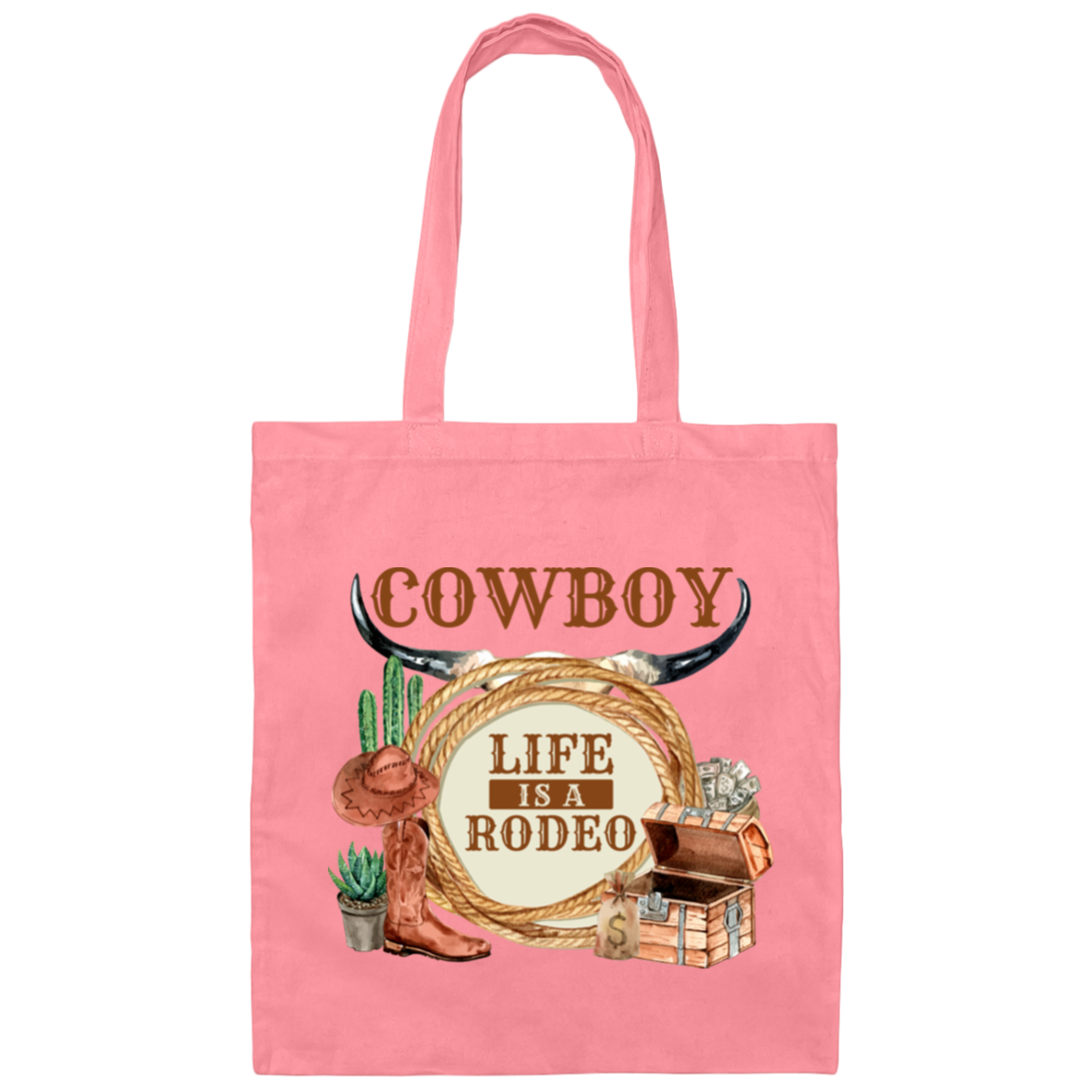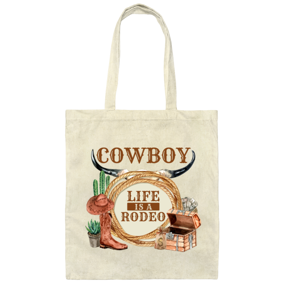 Cowboy Design, Retro Life Is A Rodeo, Love Cowboy Life Canvas Tote Bag