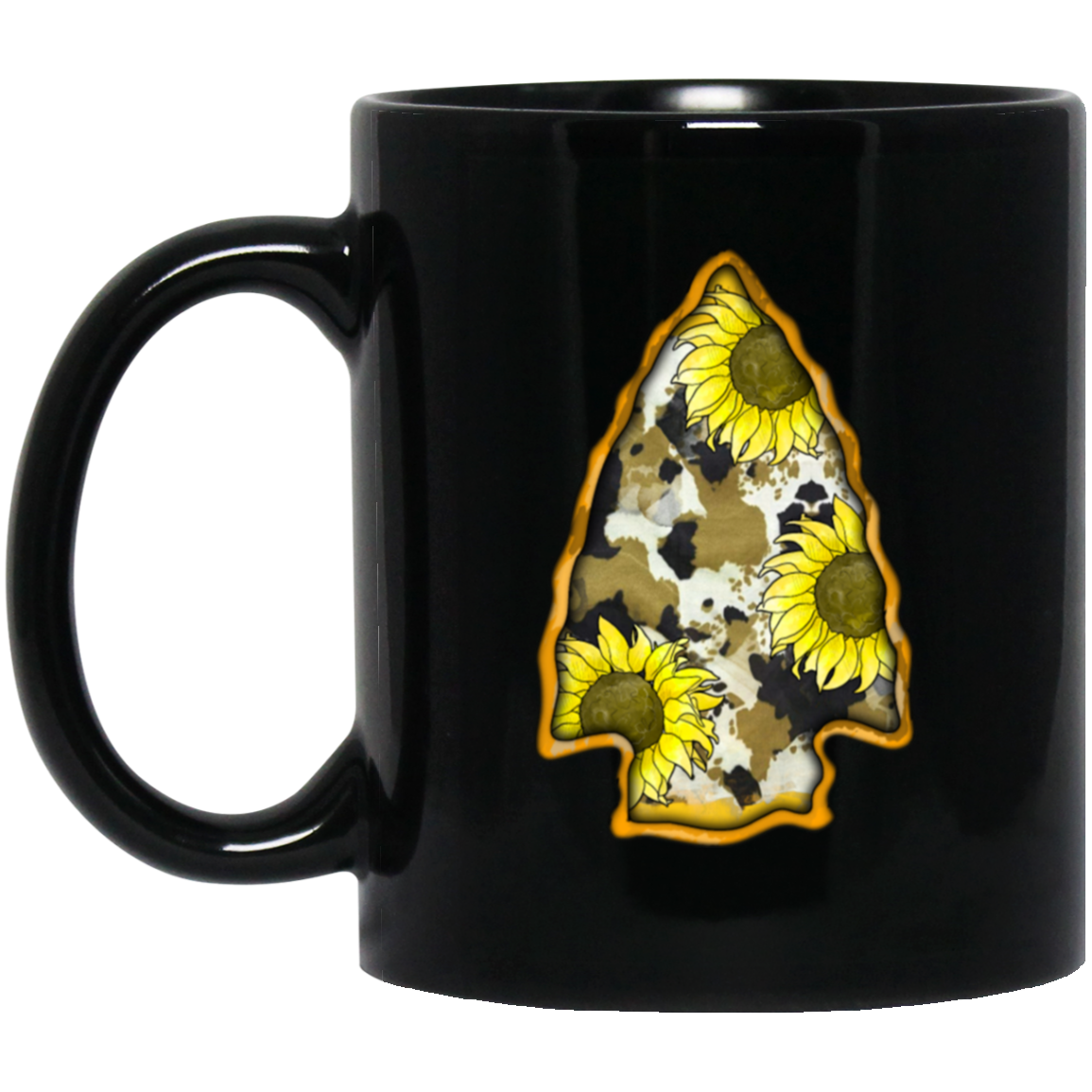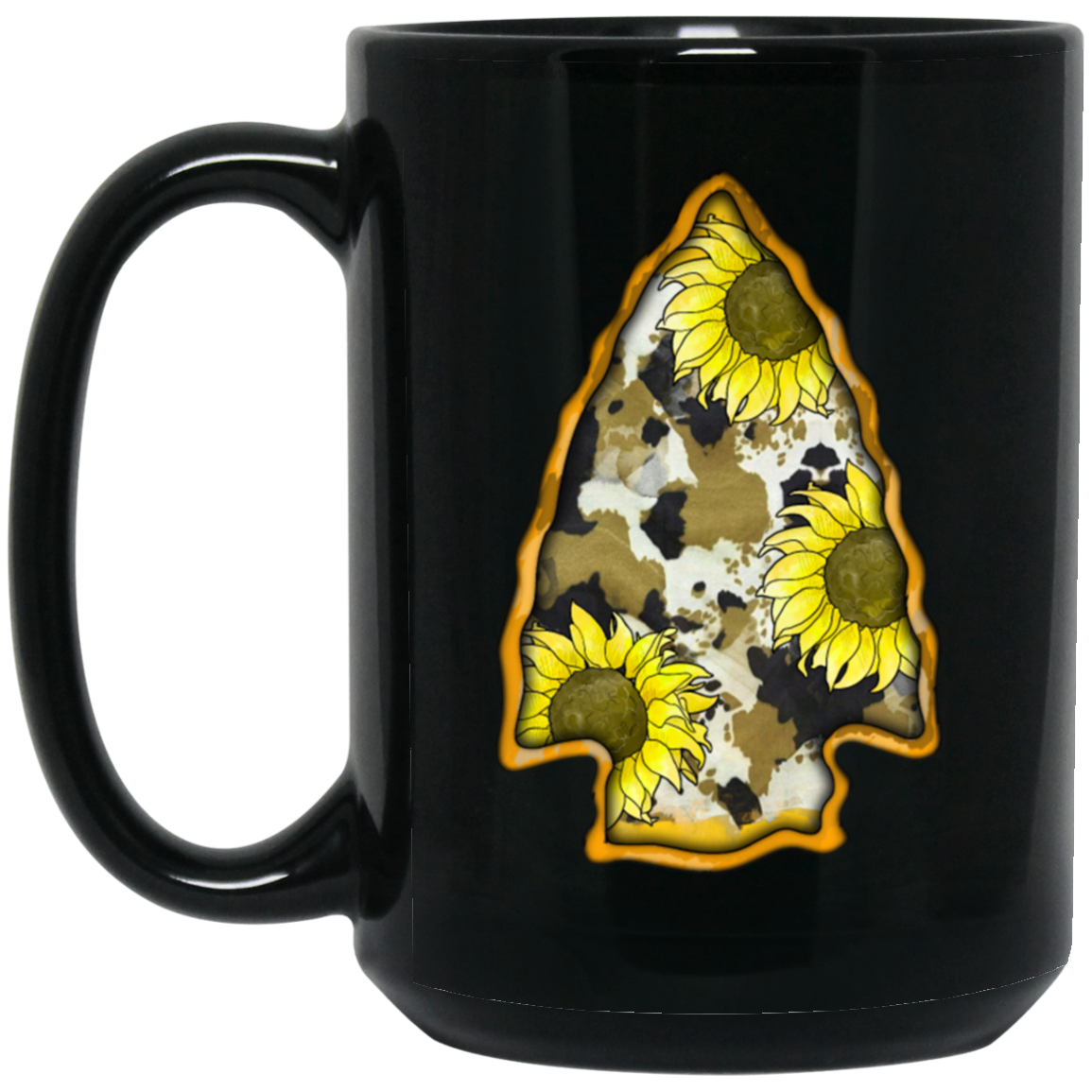 Cowhide And Sunflower Arrowhead, Love To Go Hunting, Love Hunter Black Mug