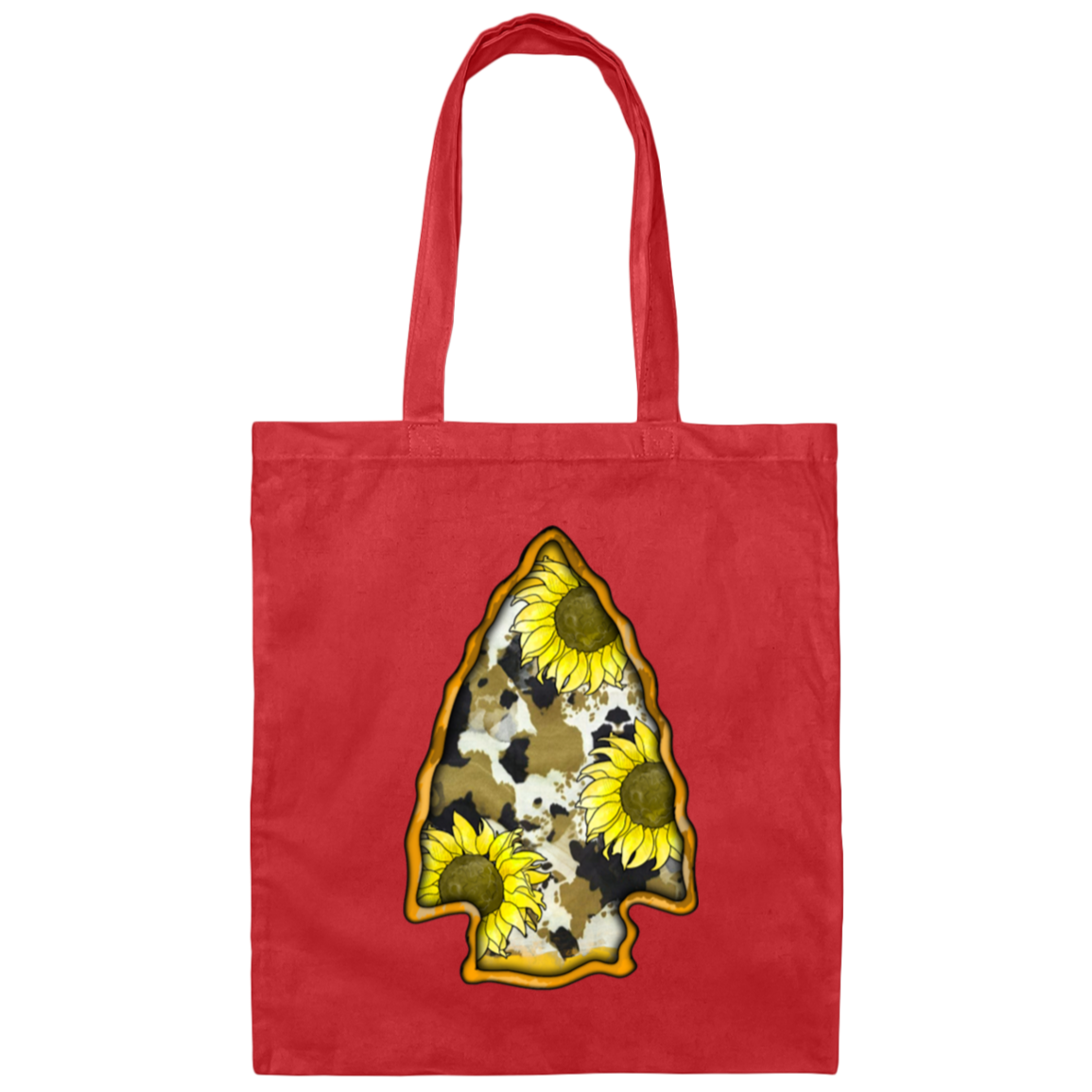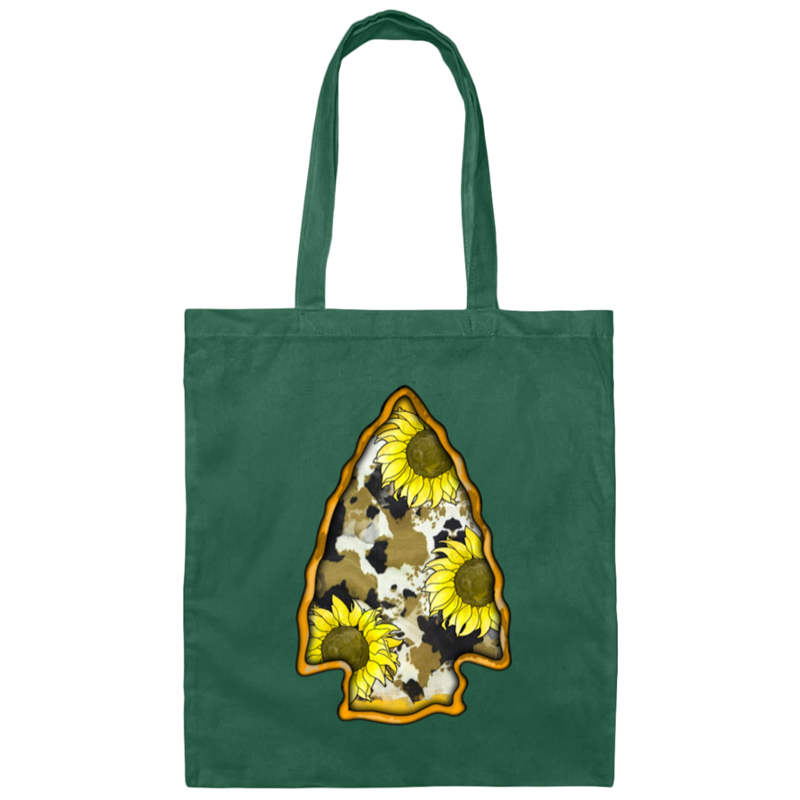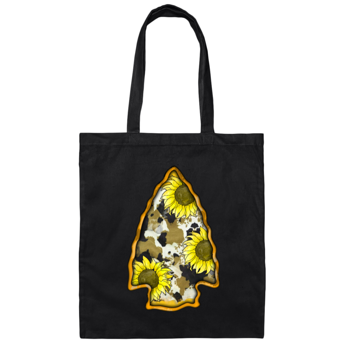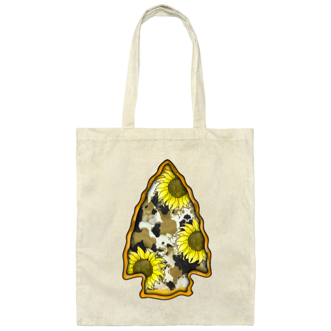 Cowhide And Sunflower Arrowhead, Love To Go Hunting, Love Hunter Canvas Tote Bag