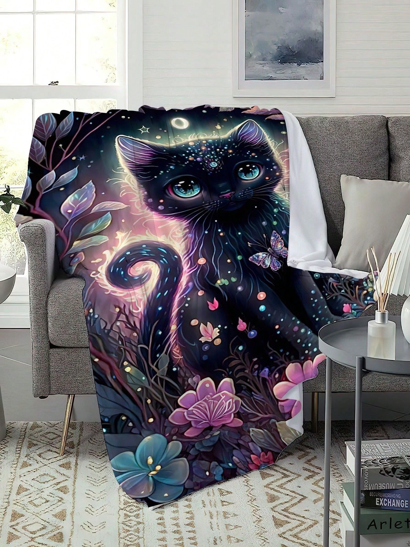Cozy and Cute: Cat Printed Flannel Blanket for Your Living Room or Bedroom