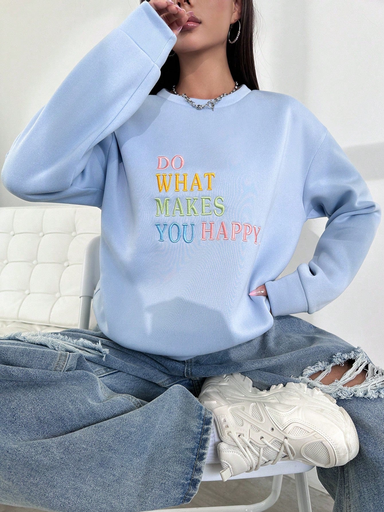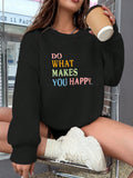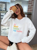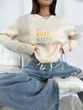 Cozy and Cute: Slogan Embroidery Drop Shoulder Sweatshirt
