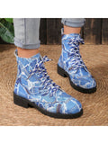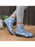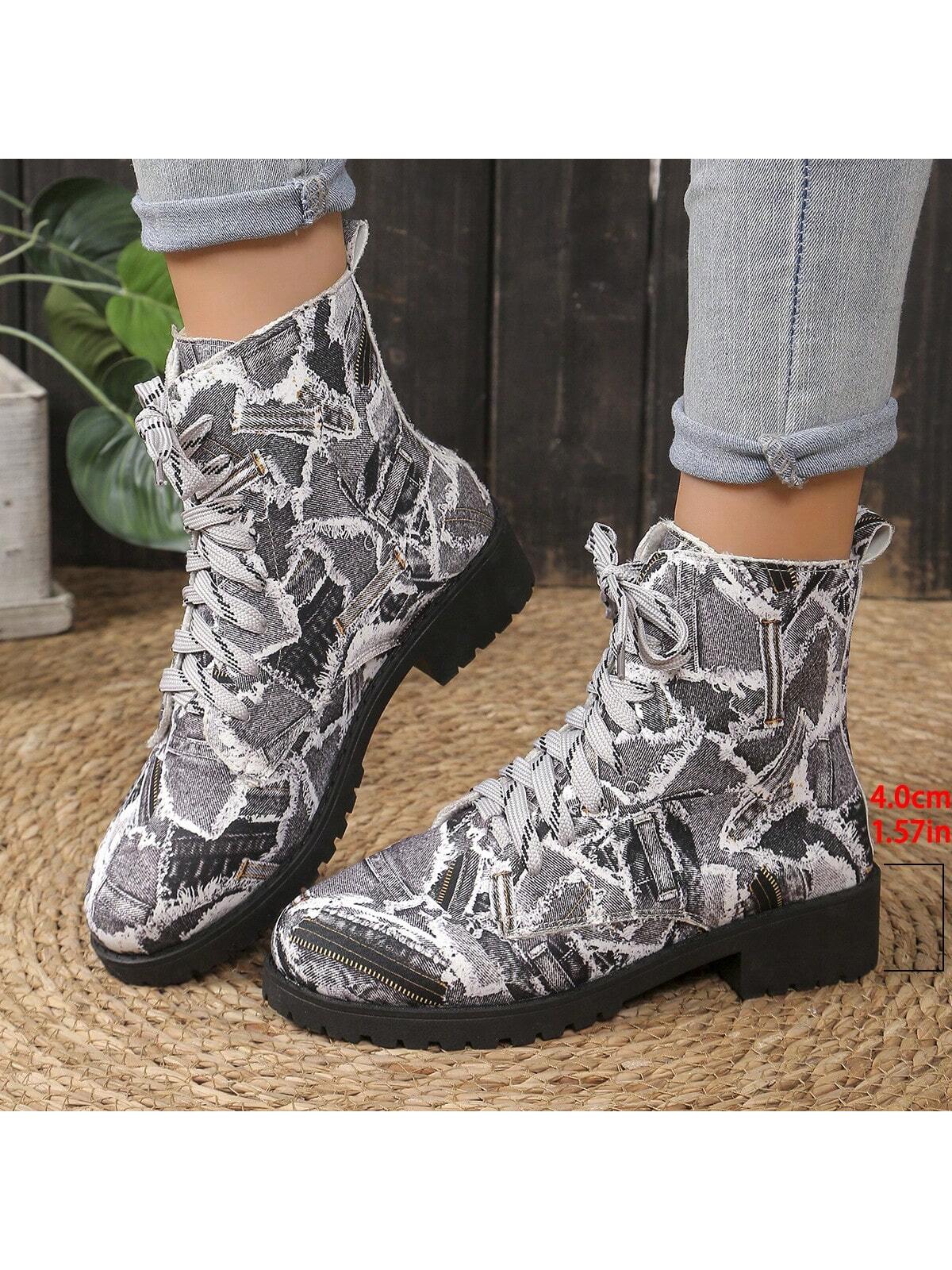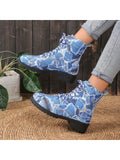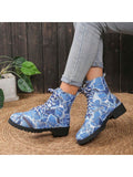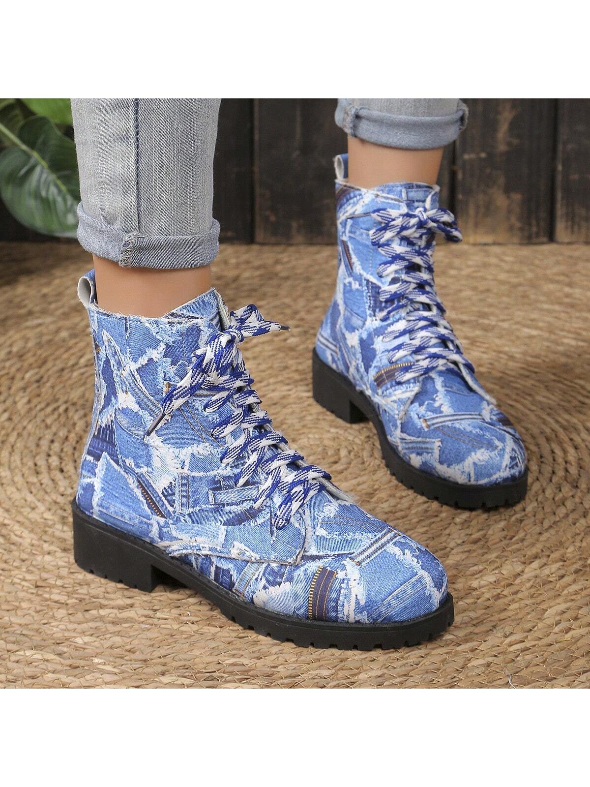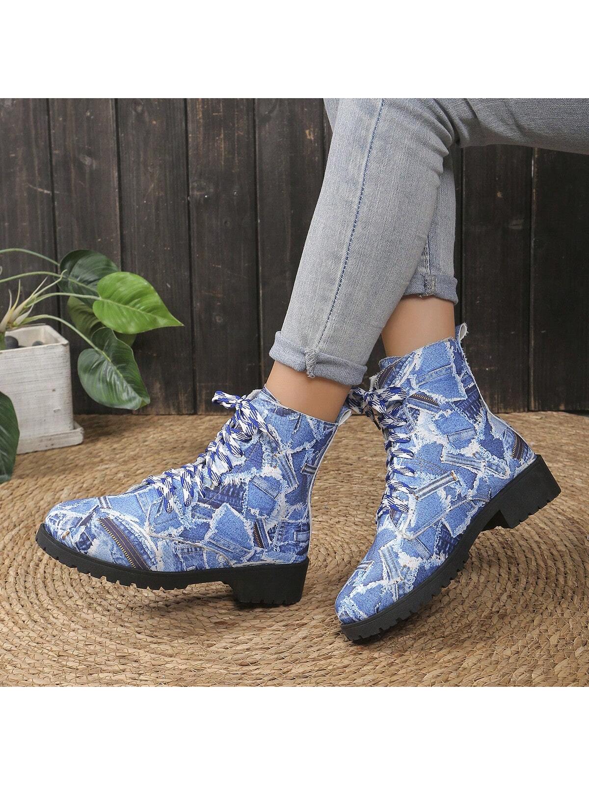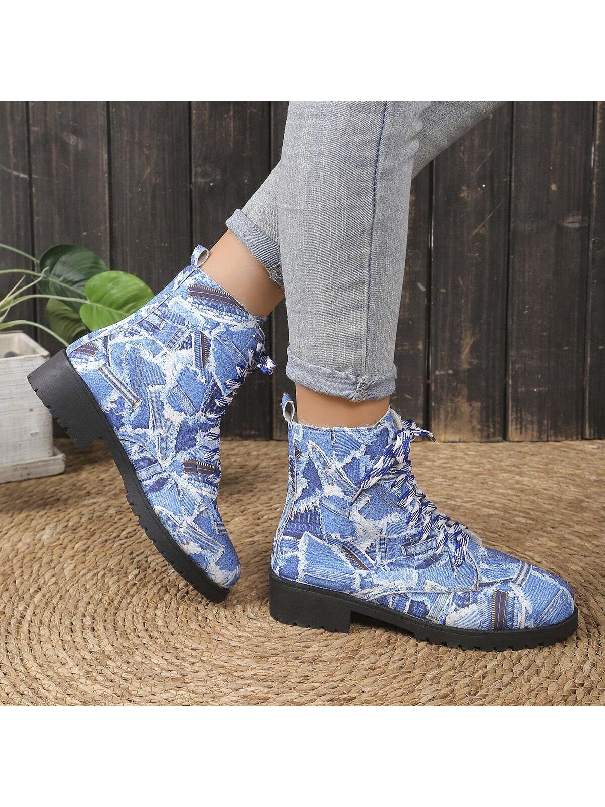 Cozy and Stylish: Navy Blue Chunky Ankle Boots for Outdoor Casual Wear