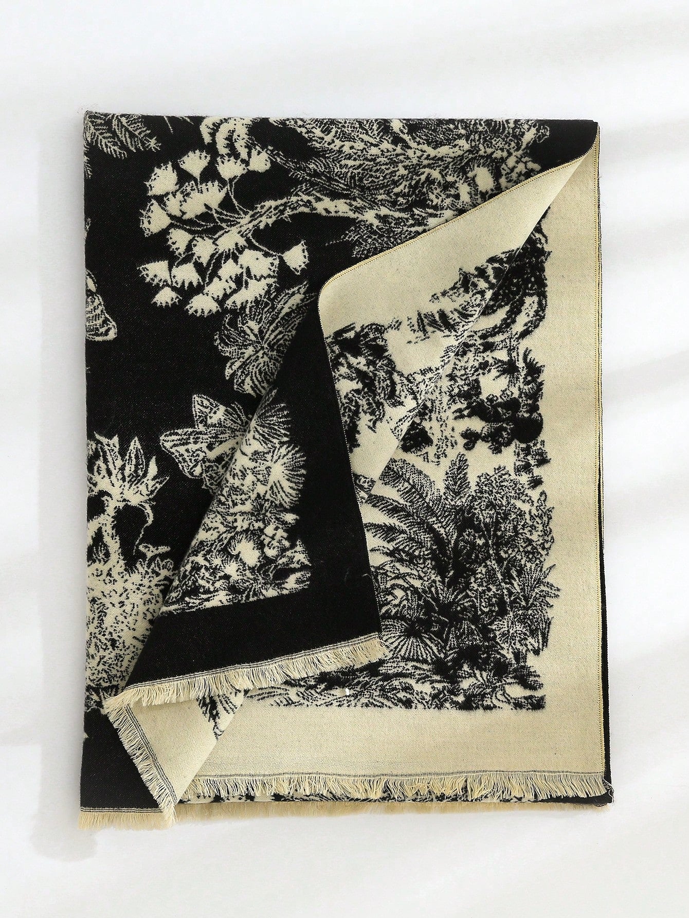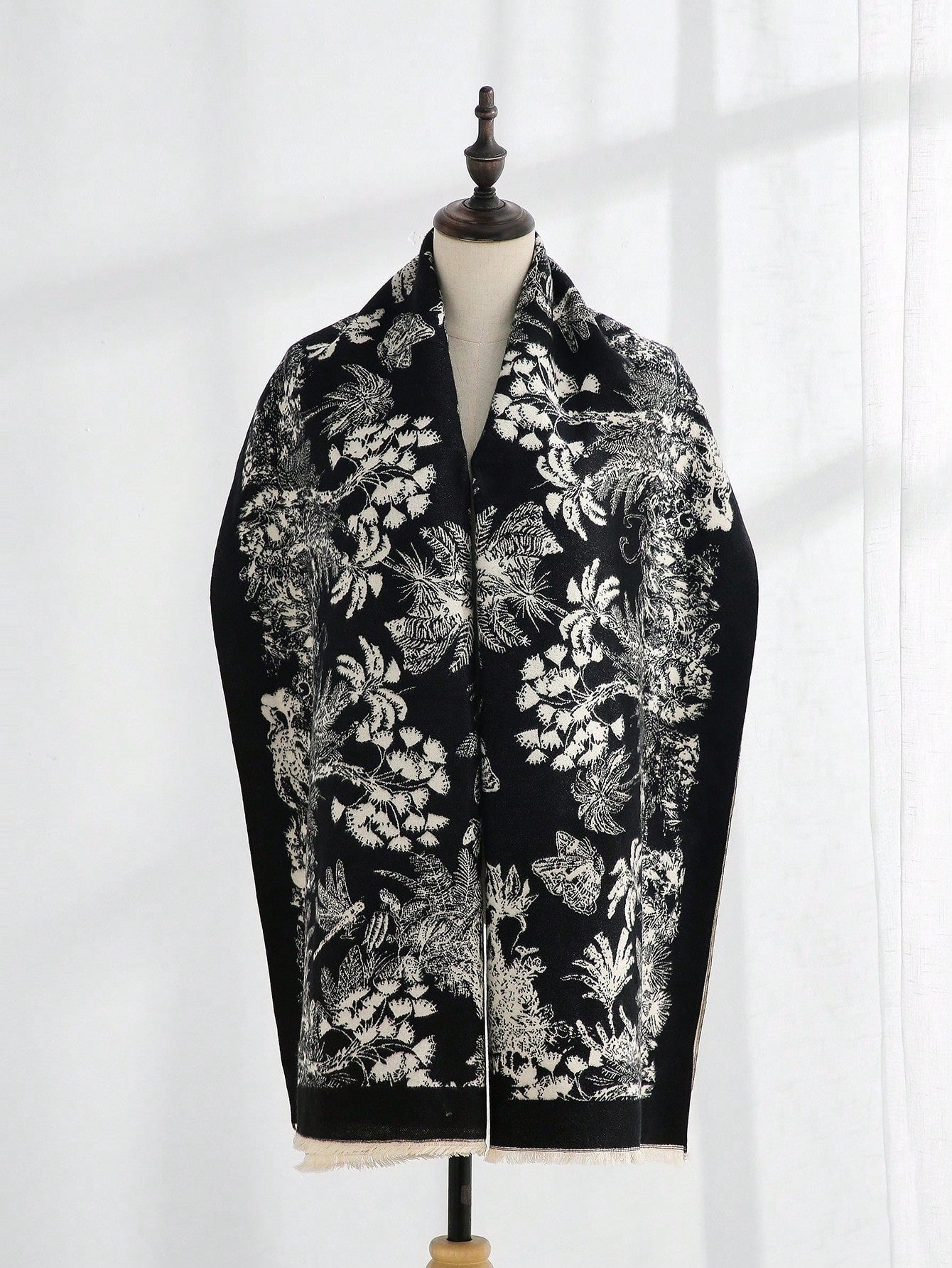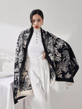 Cozy Black Floral Retro Tasseled Blanket Scarf: Perfect for Everyday Use