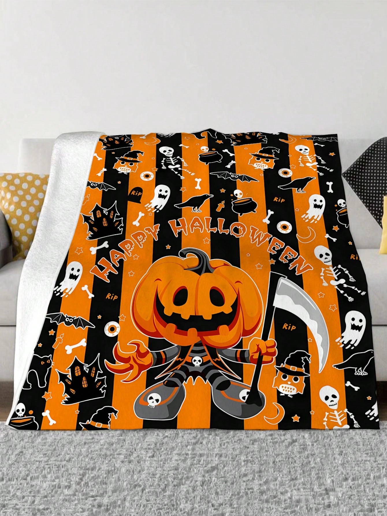 Cozy Cartoon Pumpkin Flannel Blanket: The Perfect Autumn Home Decor and Halloween Gift